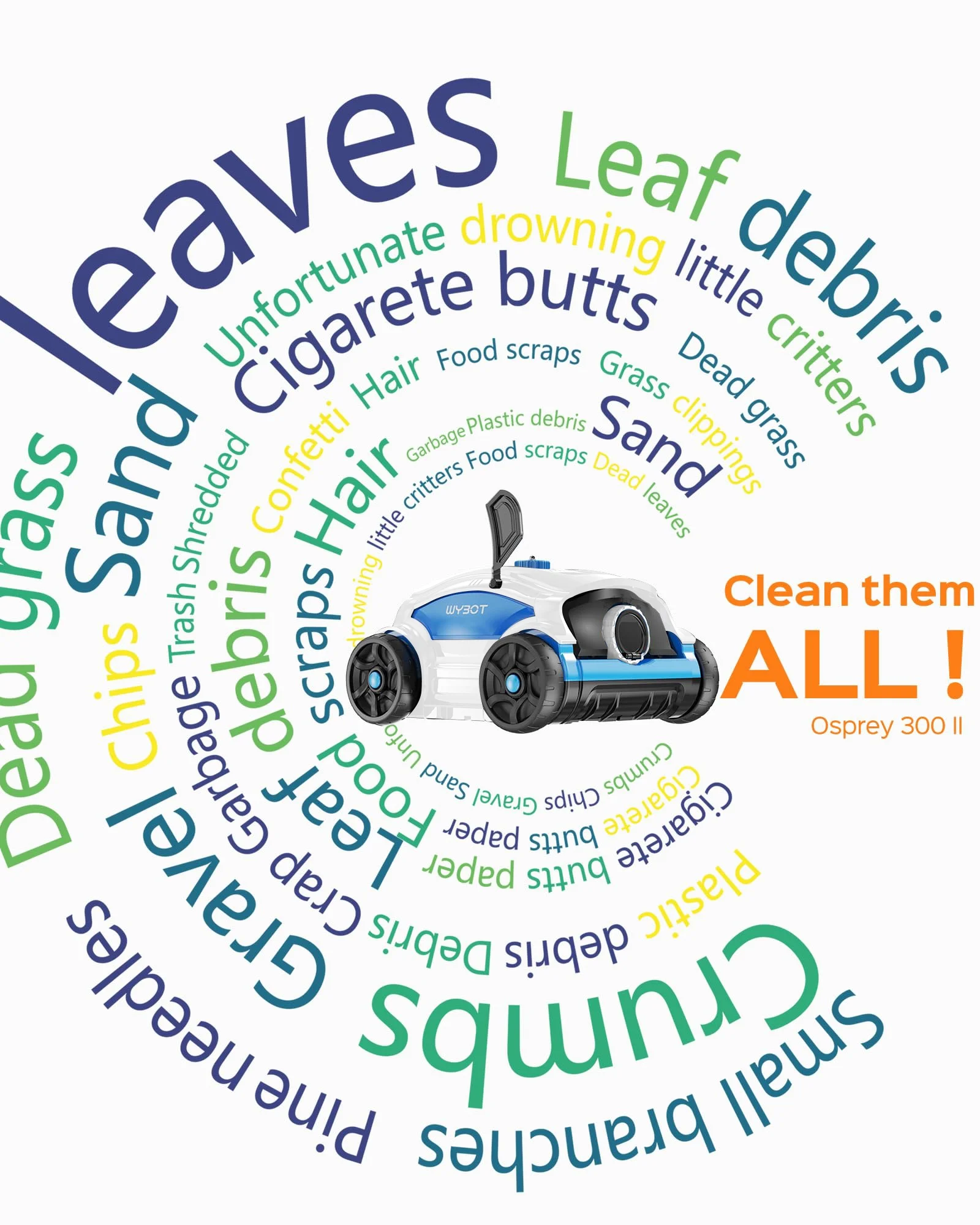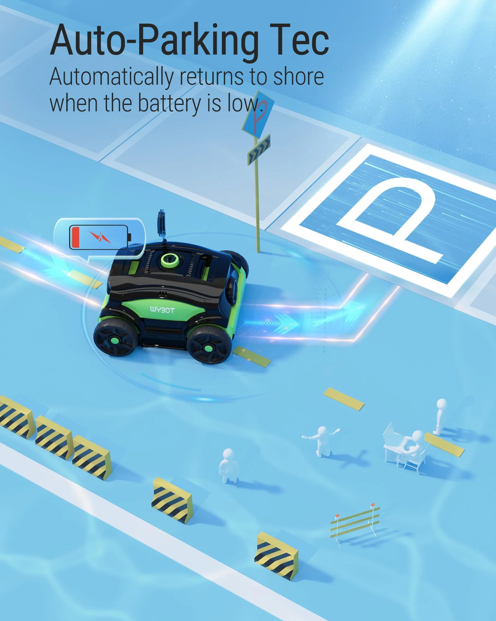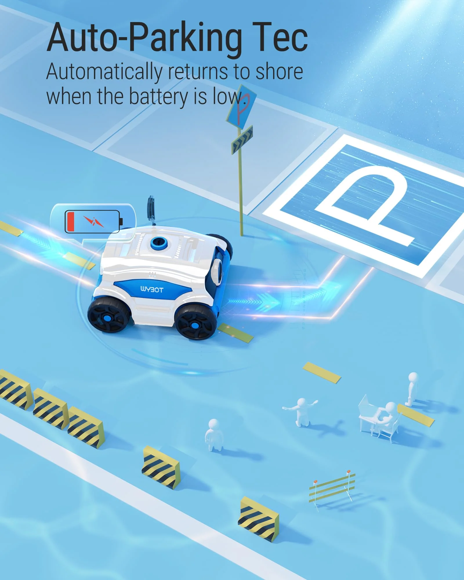 Wybot Robotic Pool Cleaner, Cordless Pool Vacuum Robot with 45W Boosted Power, 130Mins Superior Endurance for Above/Inground Pools Up to 1300 Sq.ft (Black and Blue)