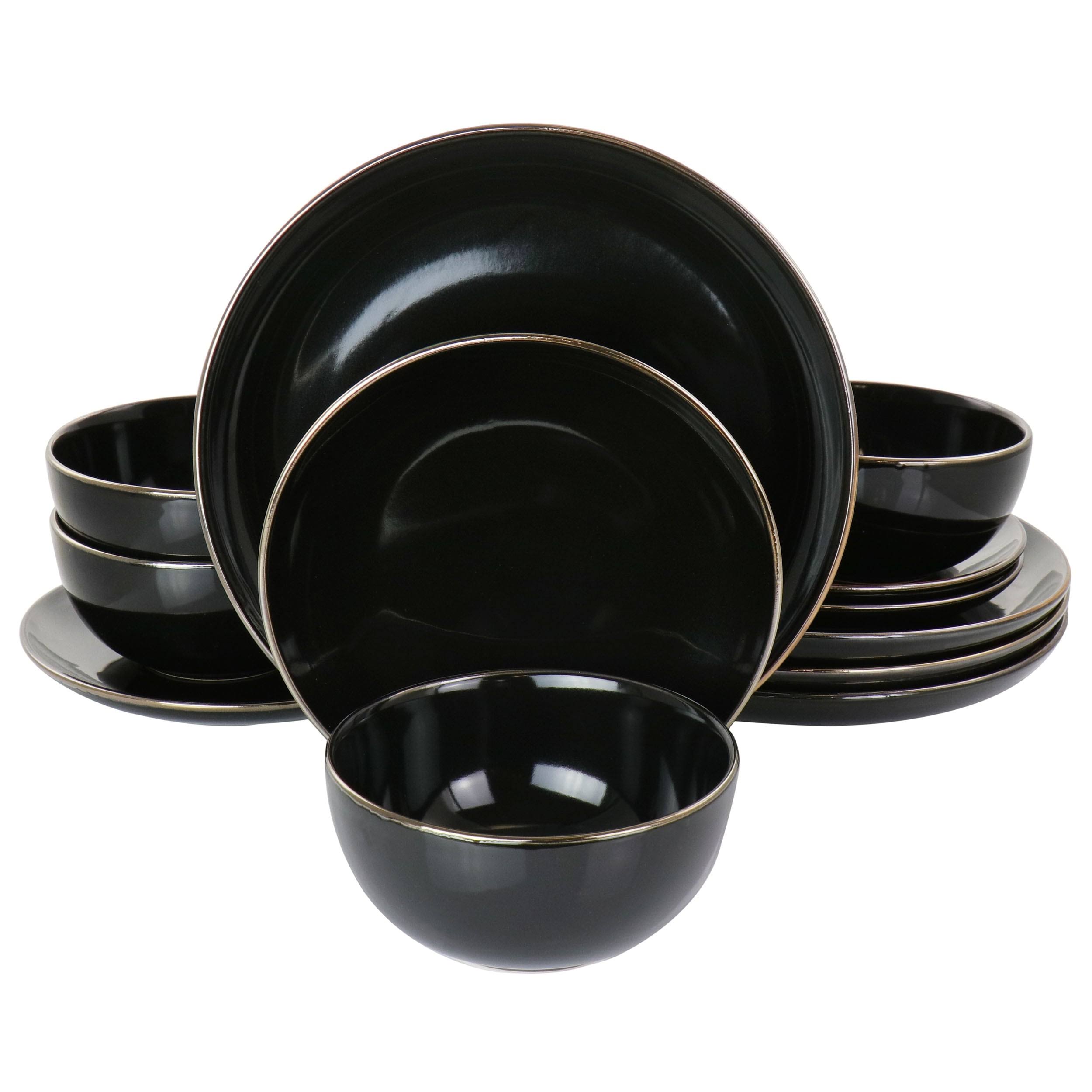 Gibson Home Rockaway Gold 12 Piece Dinnerware Set - Black - Stoneware - Megean