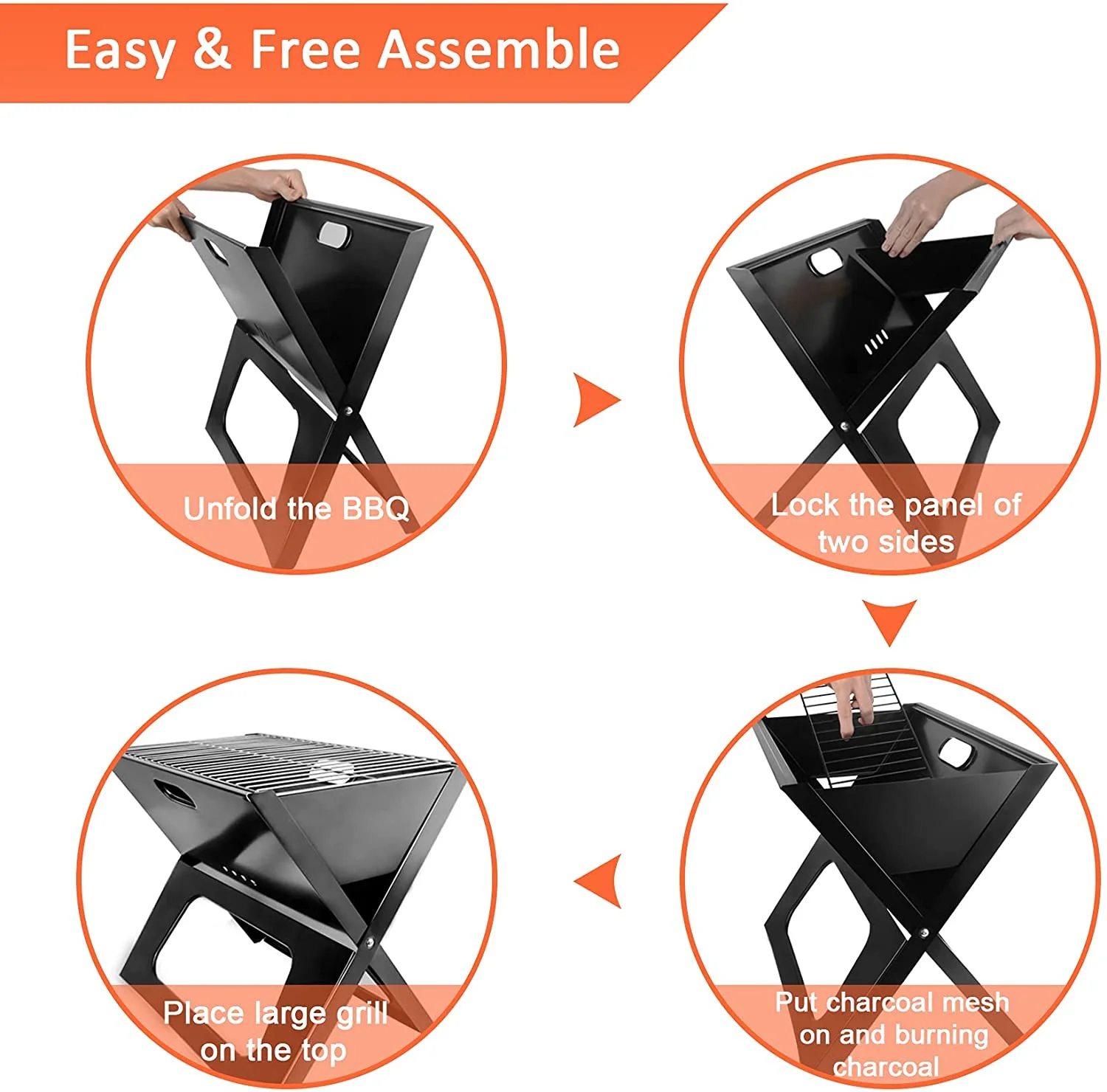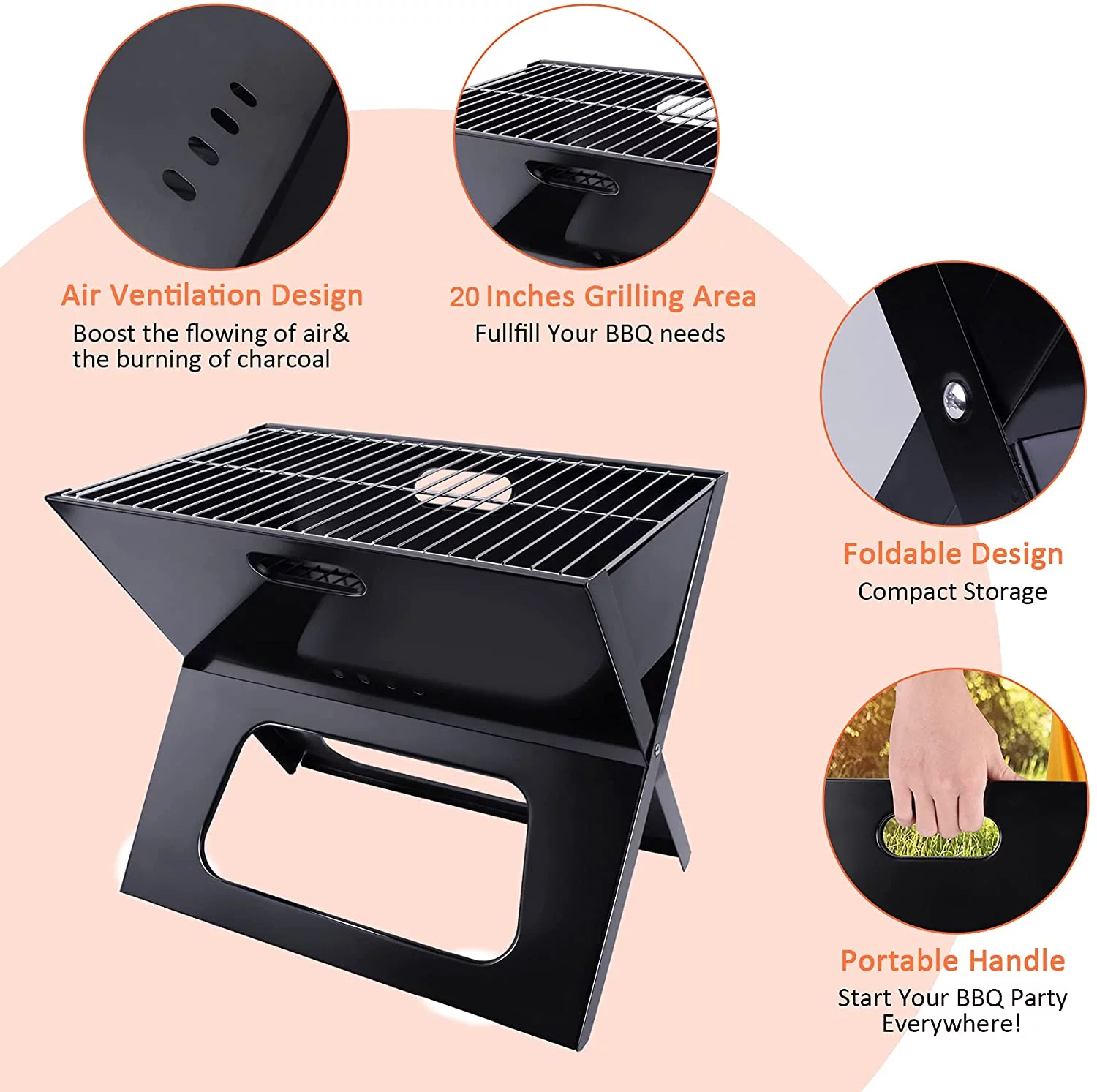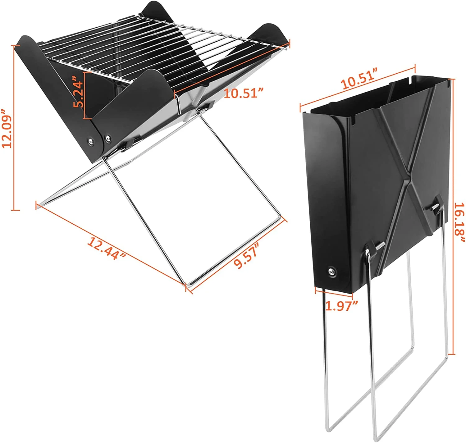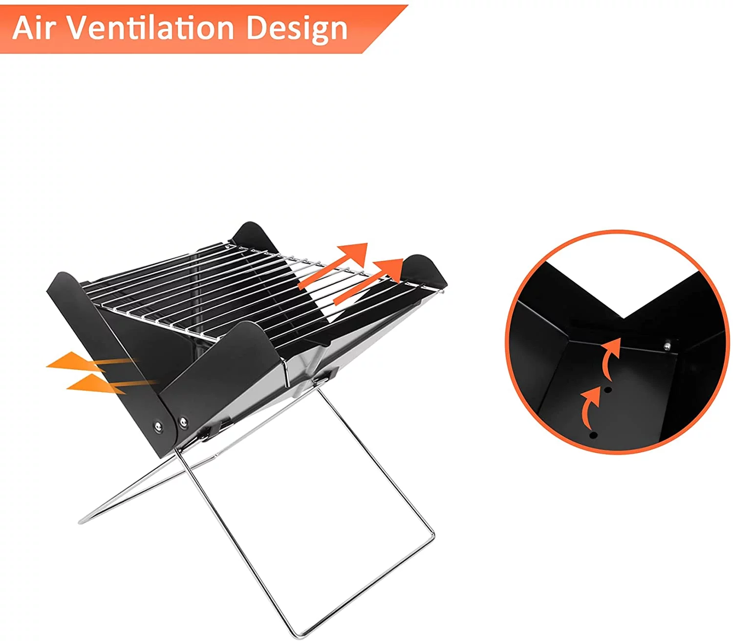 YSSOA Charcoal BBQ Grill 3.5mm Cooking Bars Instant Foldable & Easy Portability for Outdoor Barbecues Camping - Black