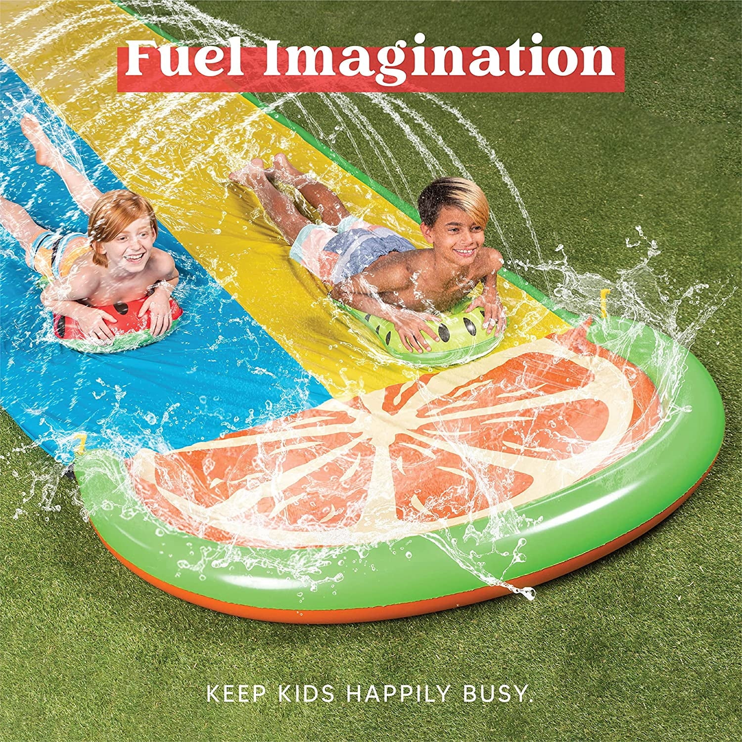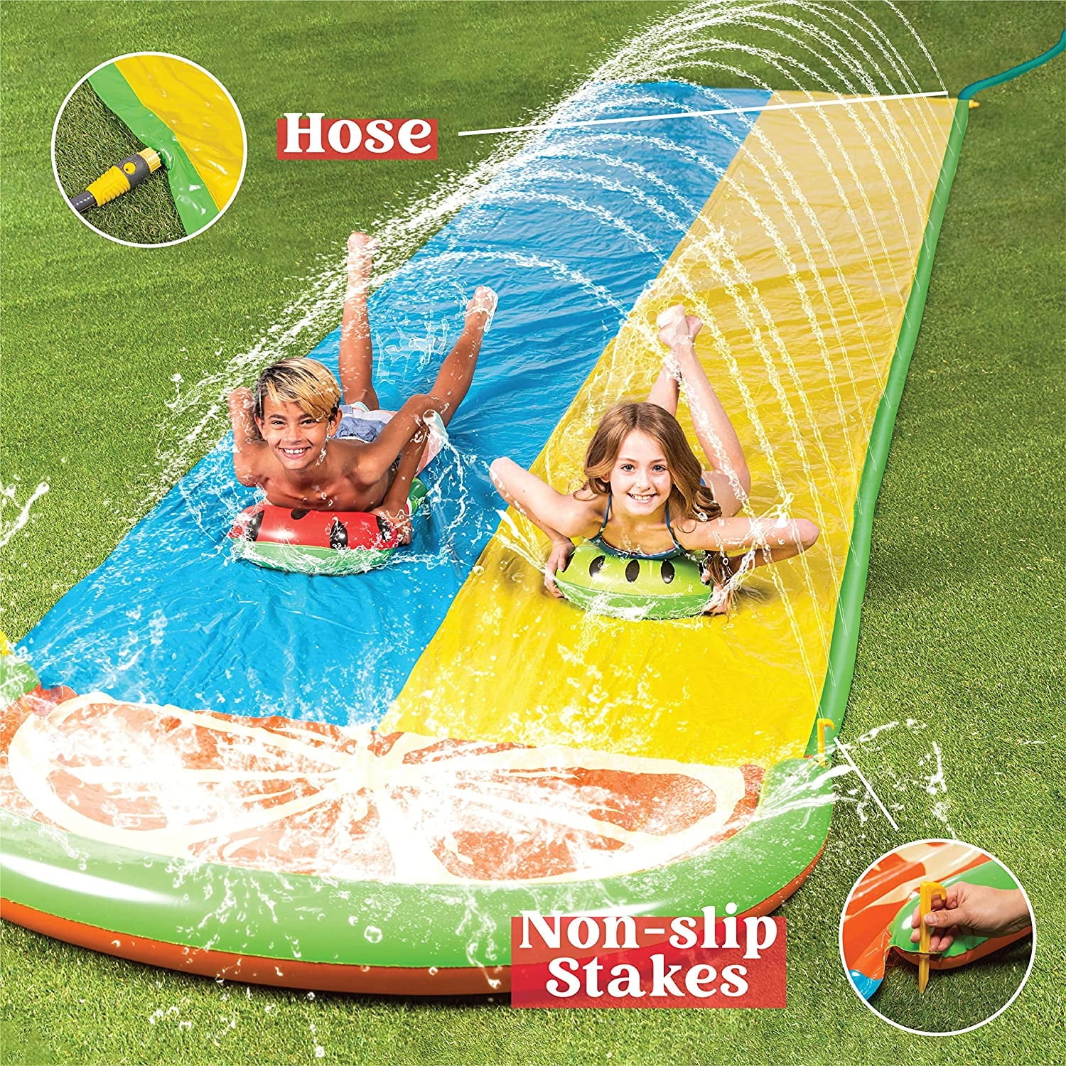 Terra 20ft Unique Slip and Slide 2 Person Deluxe Water Slides with 2 Boogie Boards Outdoor Waterslide 2 Sliding Racing Lanes with Sprinklers Summer Toy For teens 20ft x 62in, Passion Orange