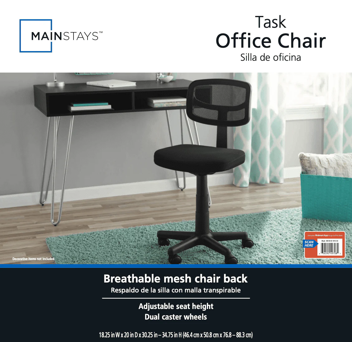 Mainstays Mesh Task Chair with Plush Padded Seat, Multiple Colors