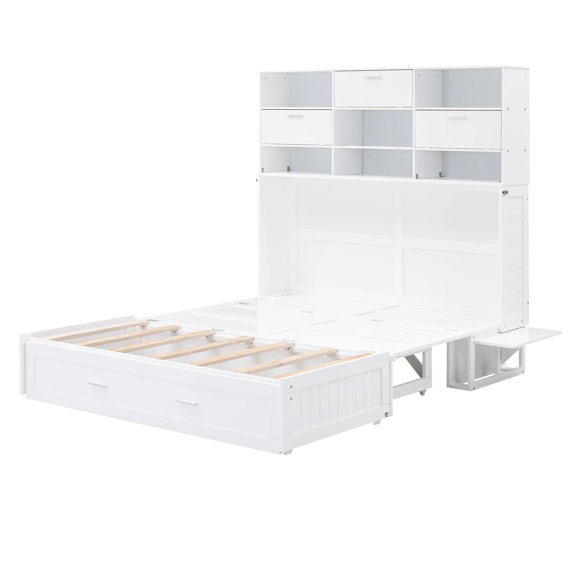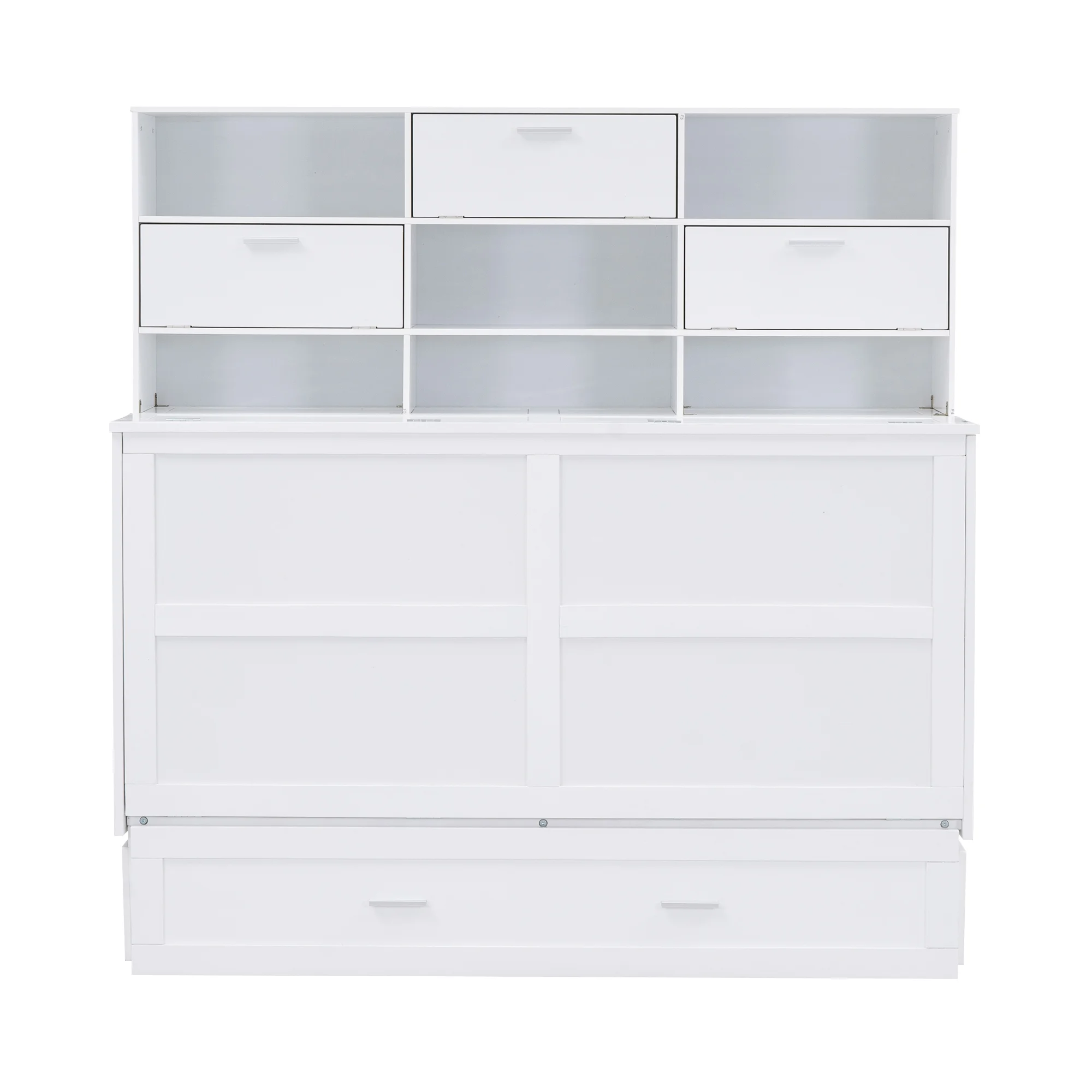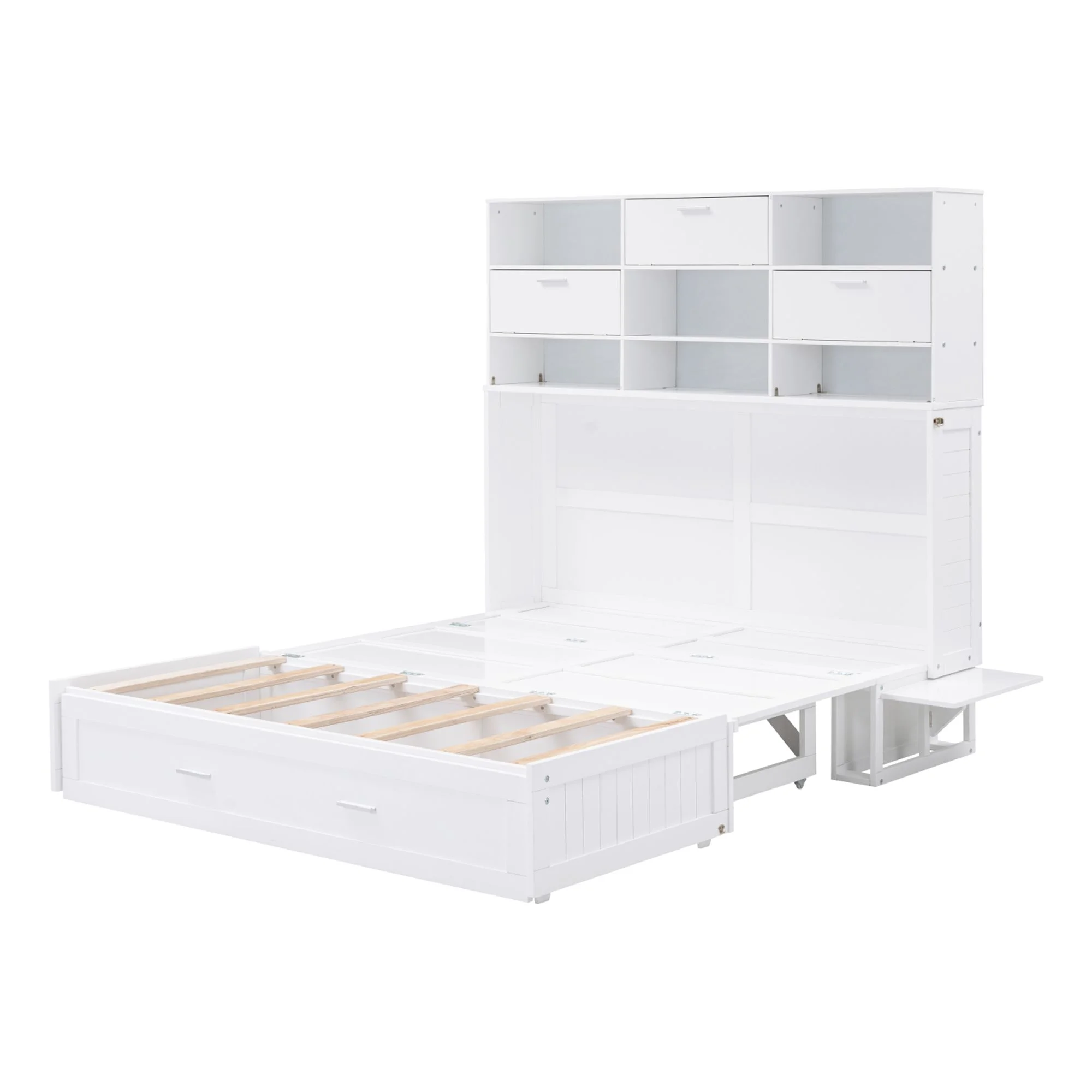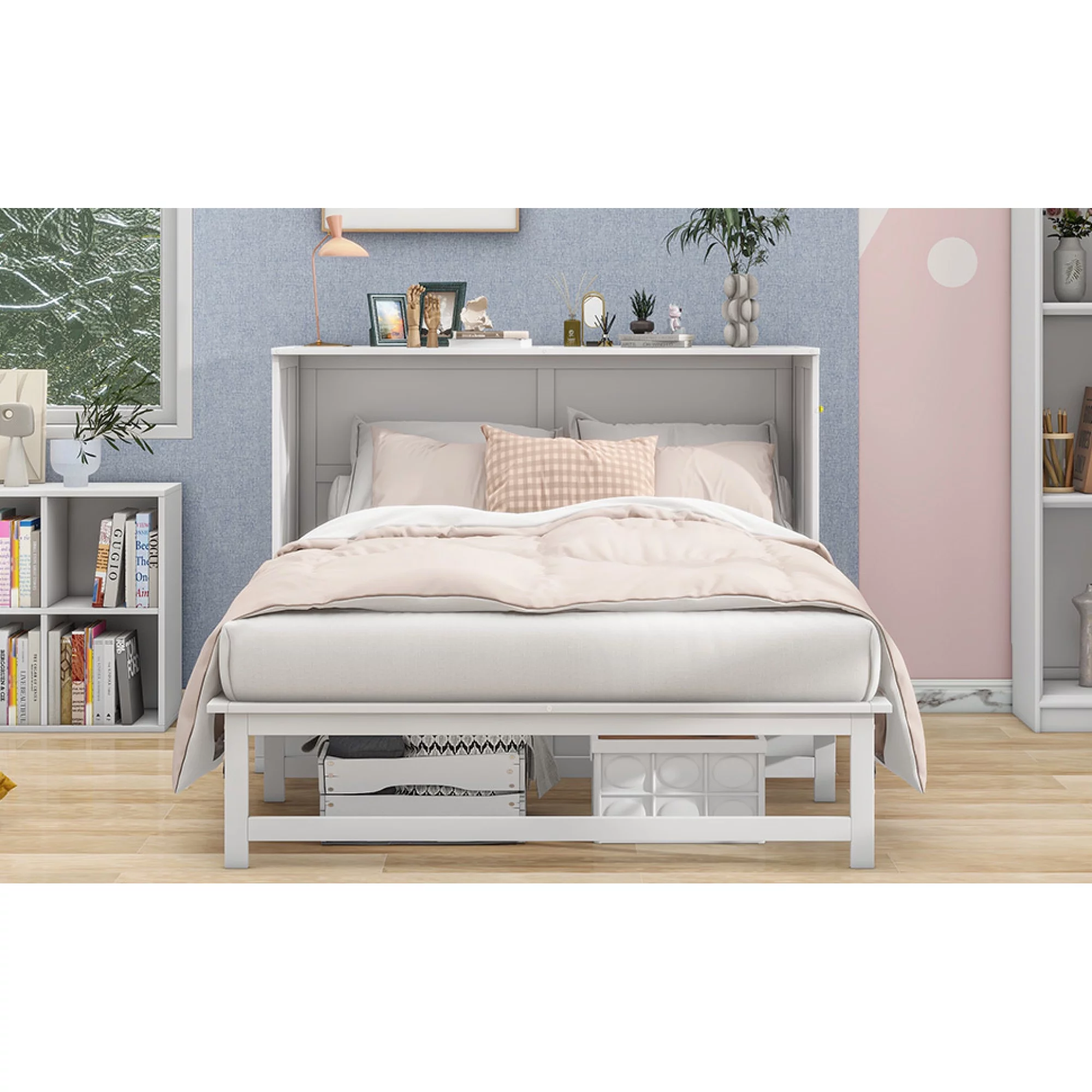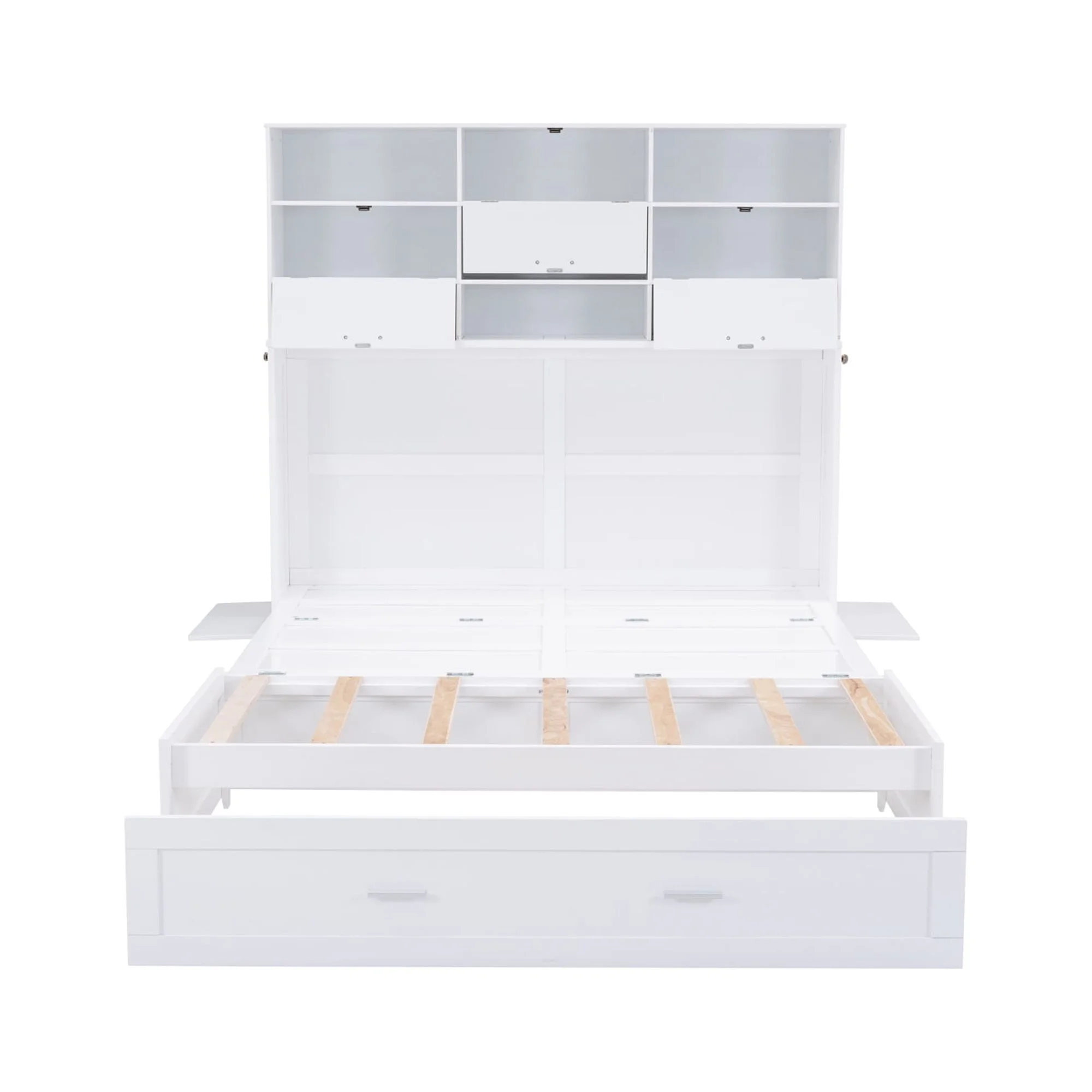 Queen Size Murphy Bed with Built-In Charging Station and a Shelf, White