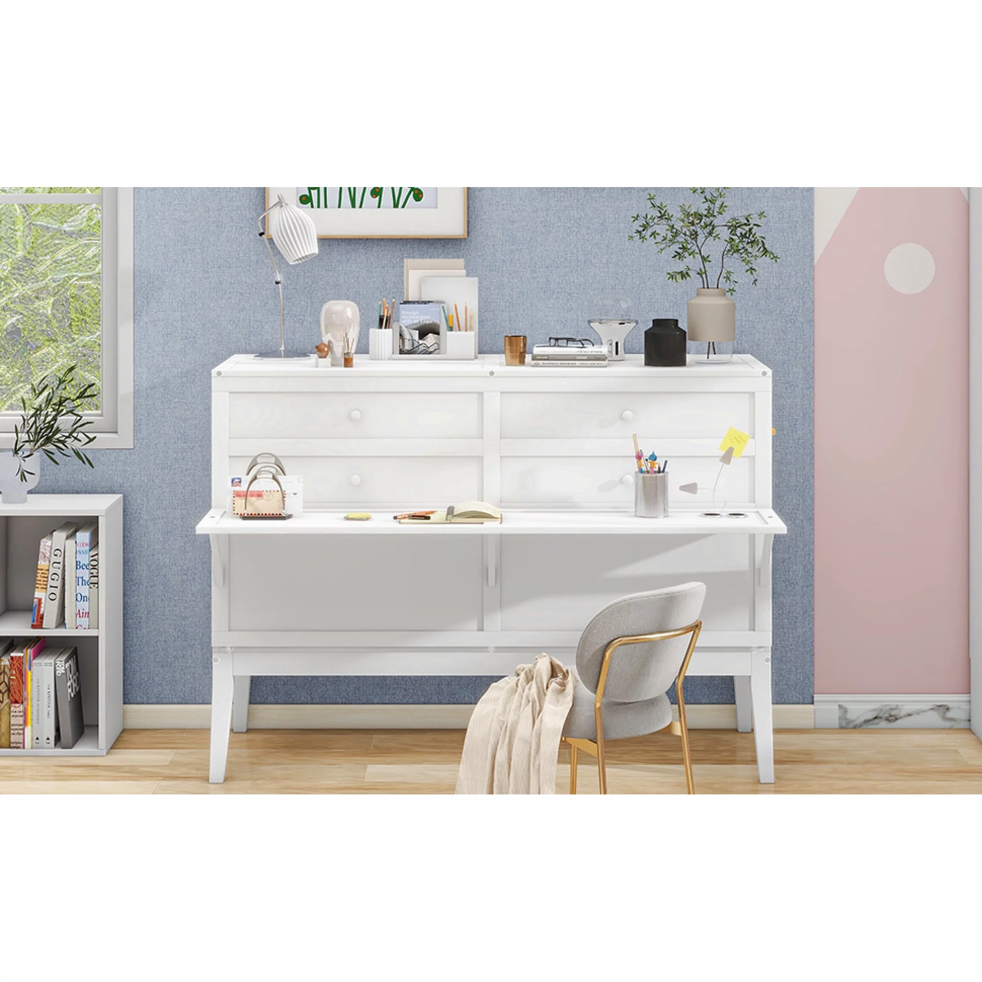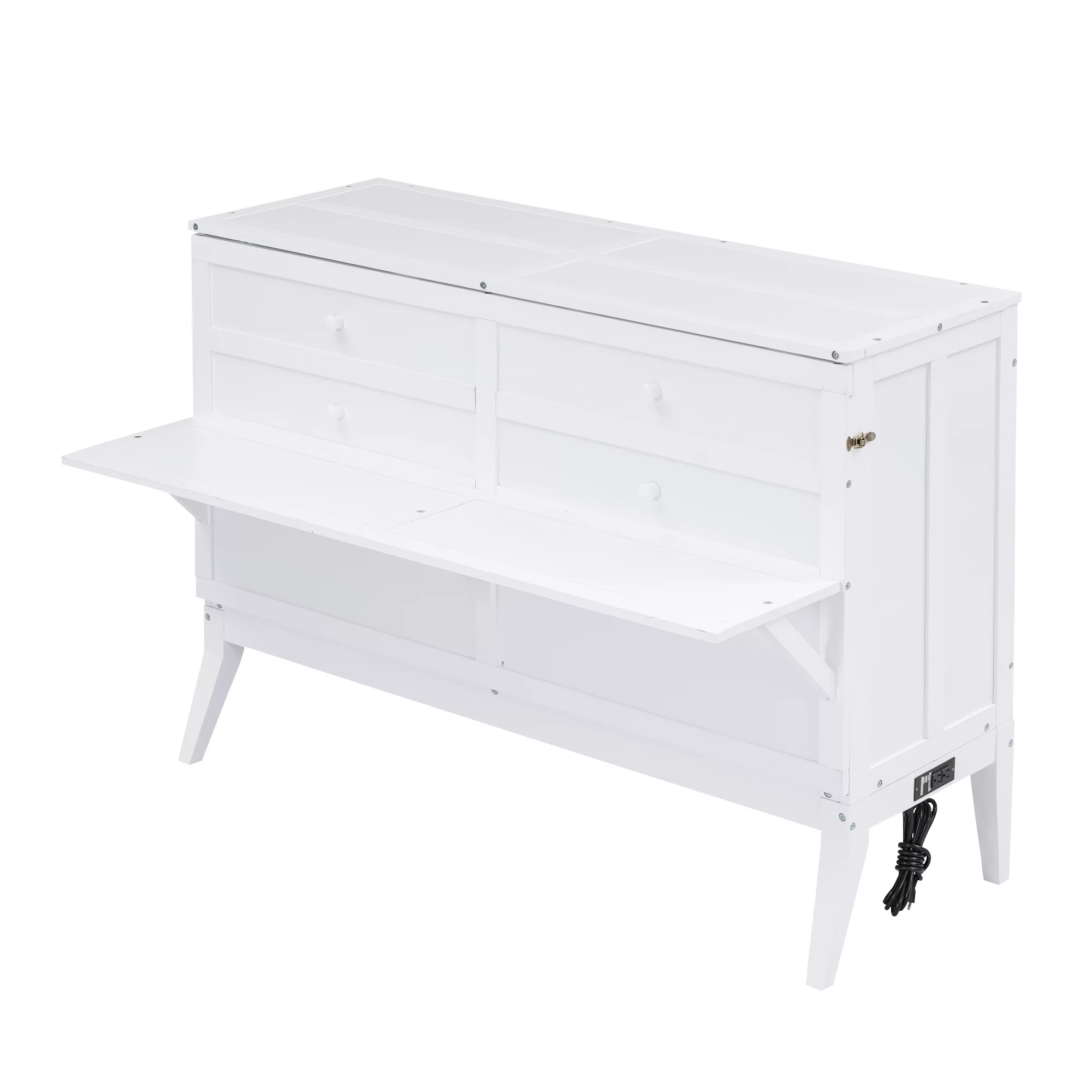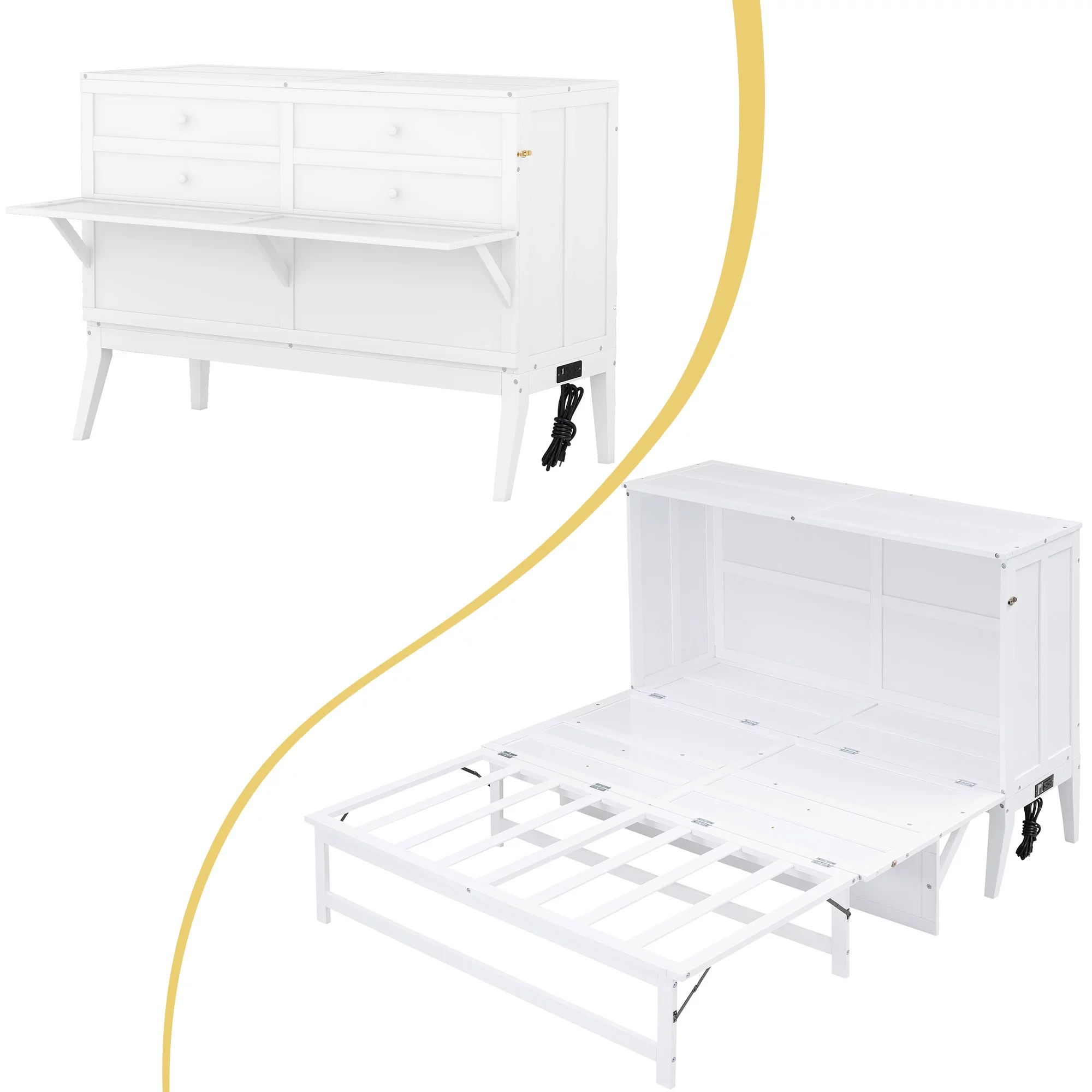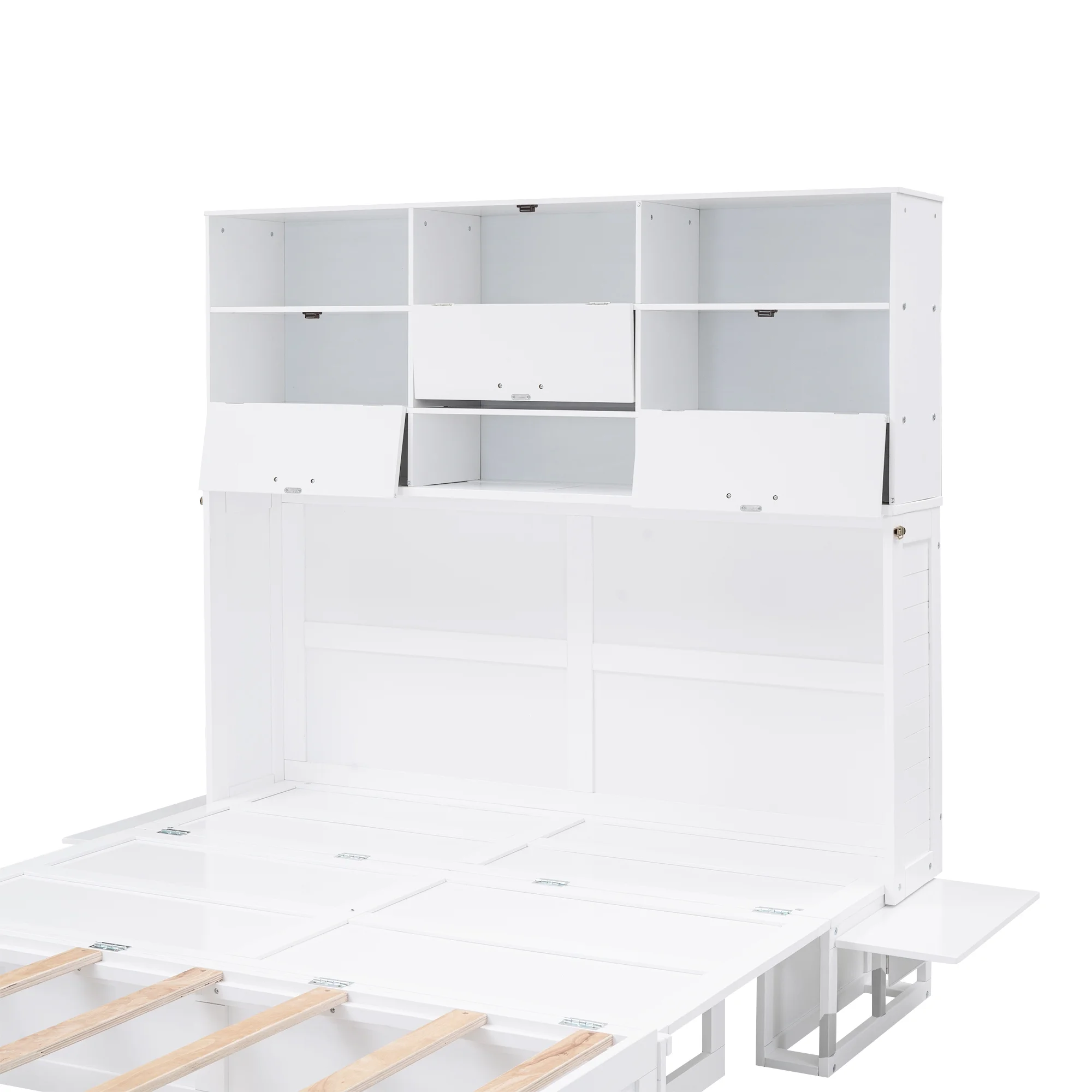 Queen Size Murphy Bed with Built-In Charging Station and a Shelf, White