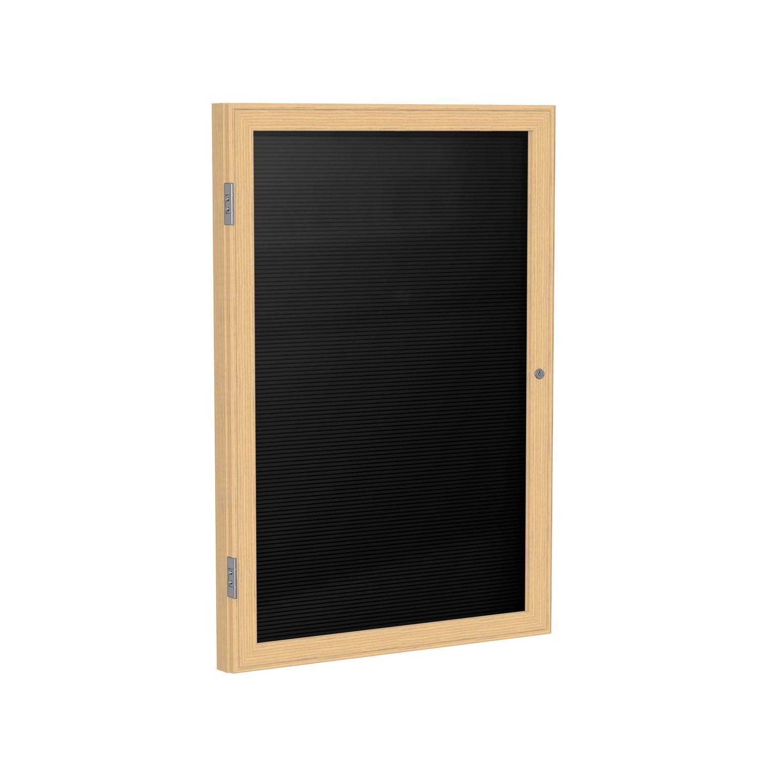 Ghent 1 Door Enclosed Letter Board with Oak Wood Frame, 3 x 2 Feet, Black - Megean