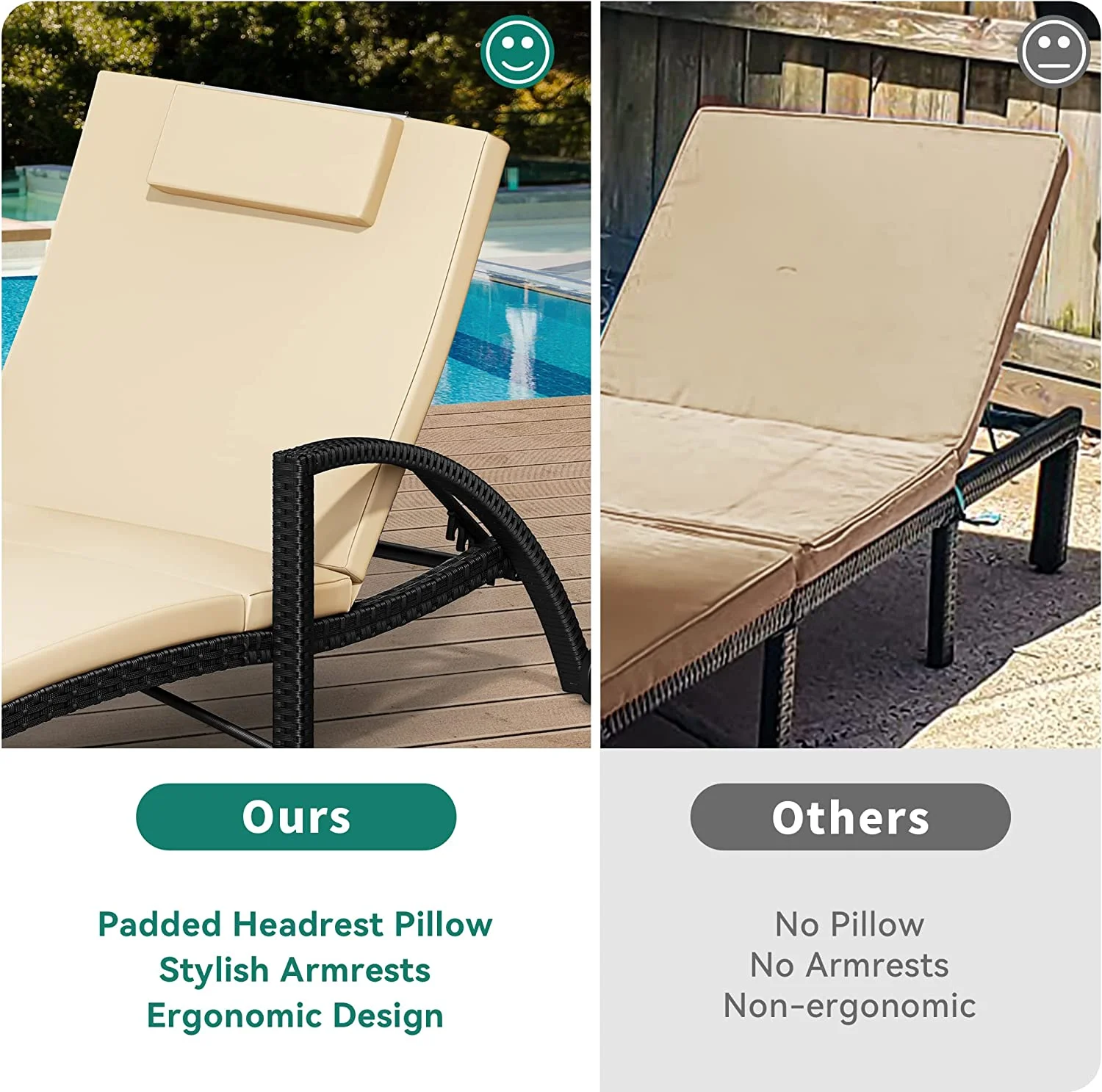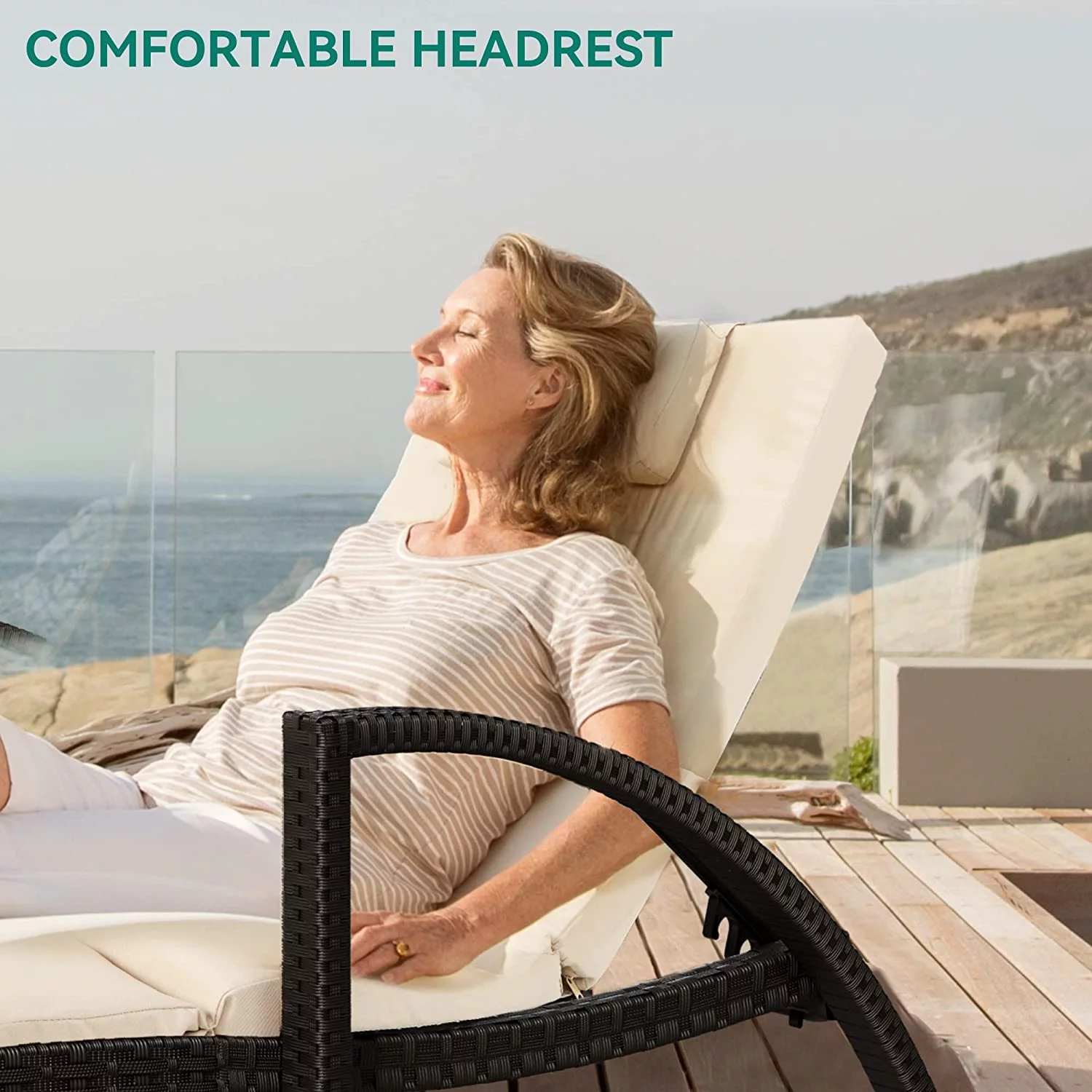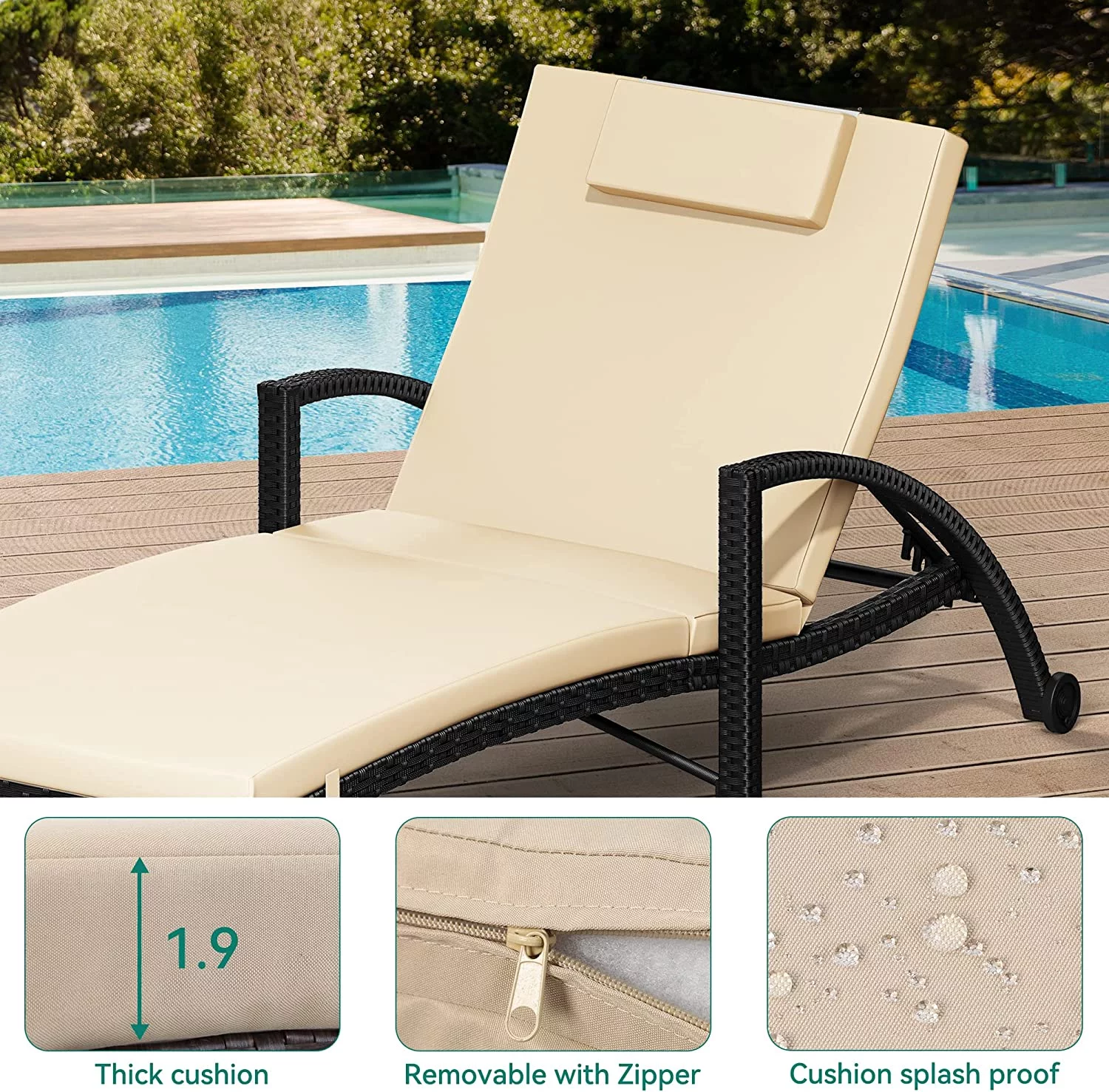 Dextrus Outdoor Chaise Lounge Chairs, PE Rattan Wicker Patio Pool Loungers with Adjustable Backrest, Arm, Cushion, Pillow and Wheels for Poolside Backyard Porch Garden Beach (1, Black) - Curated Treasures Market