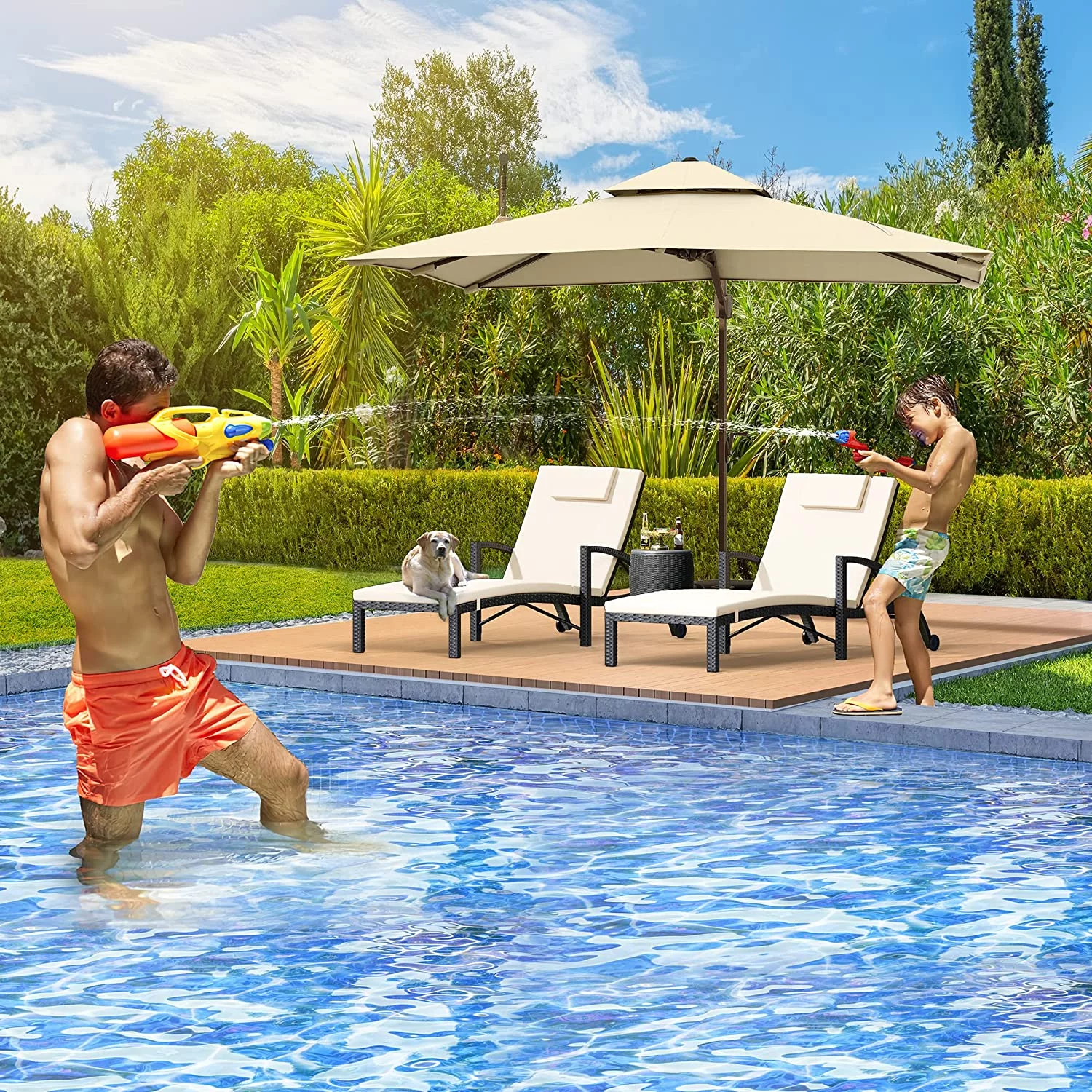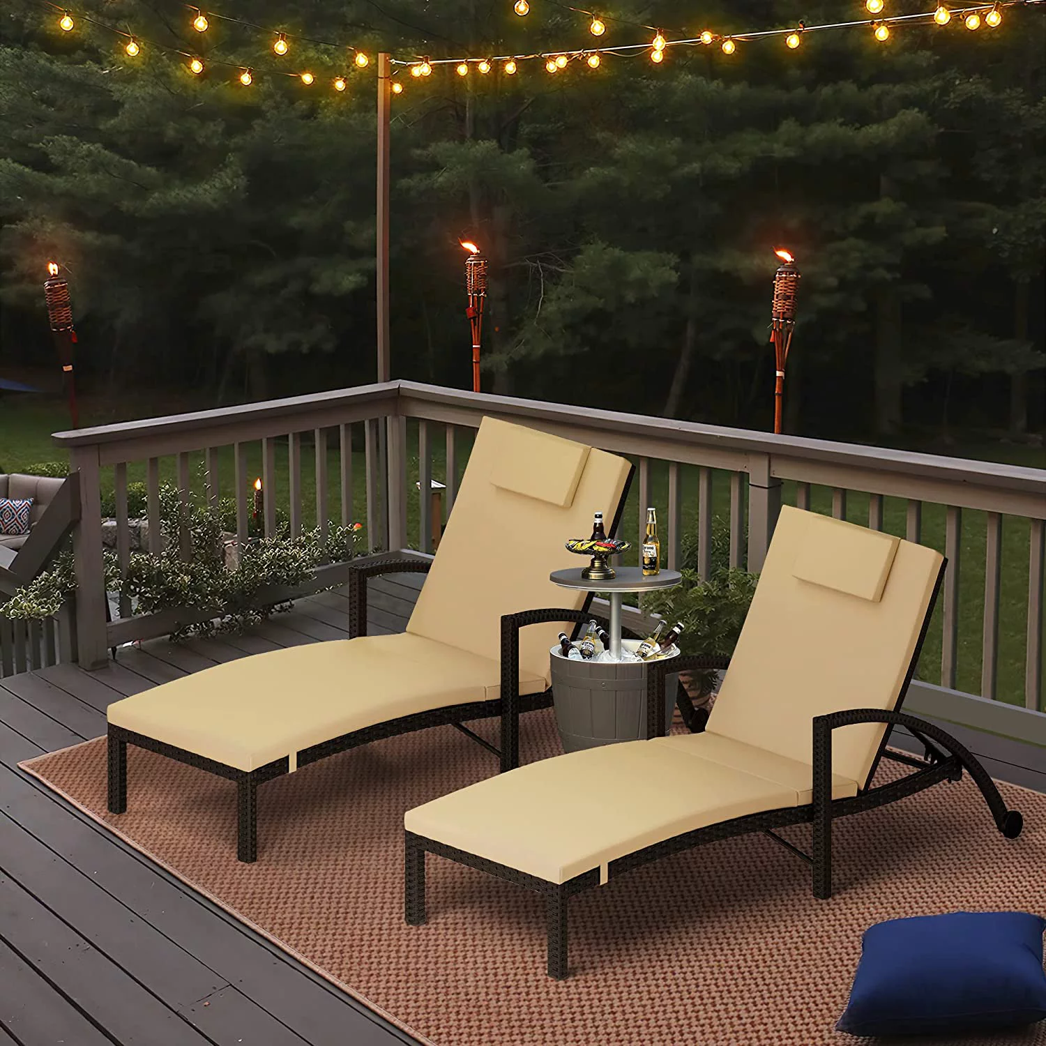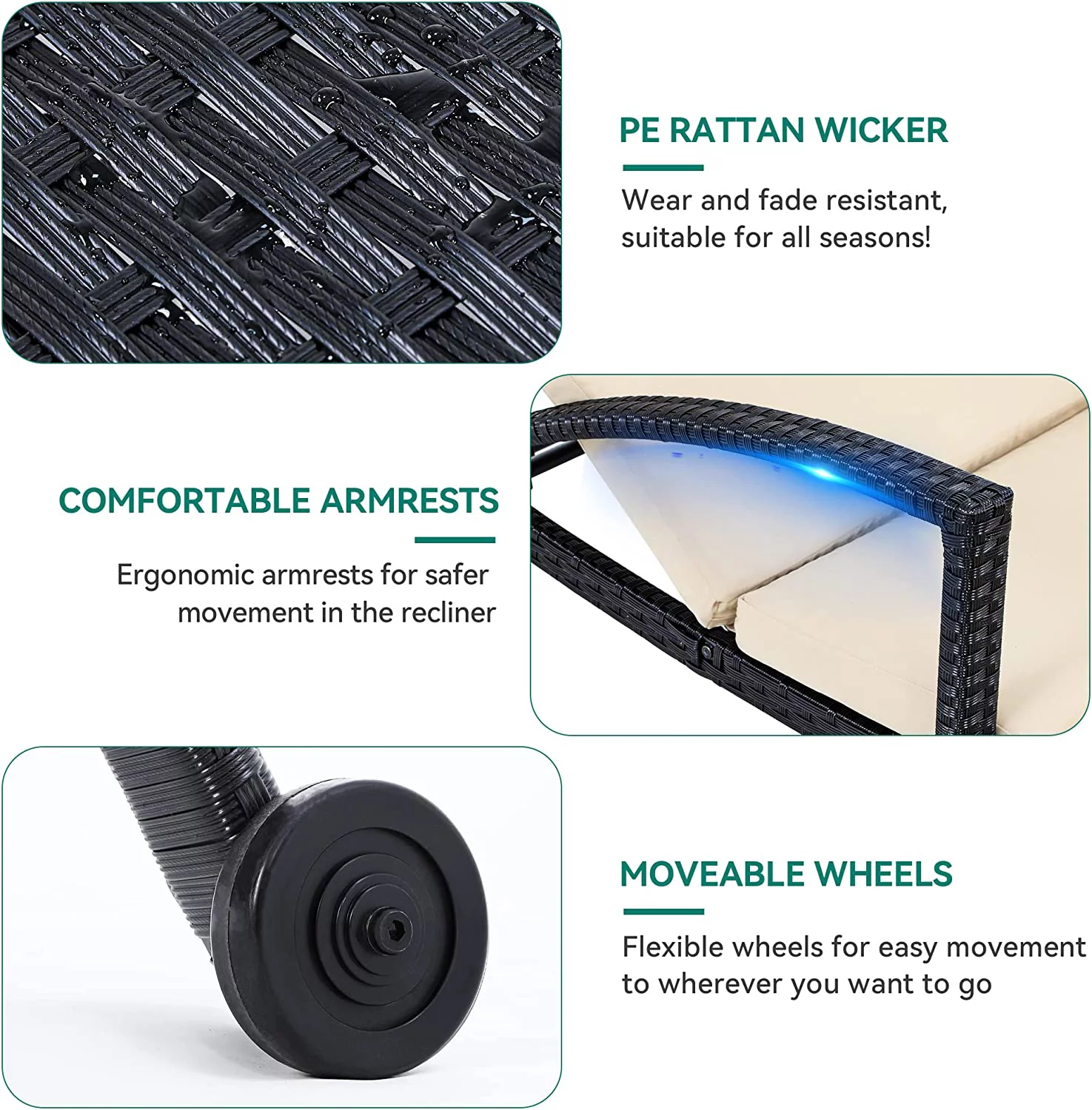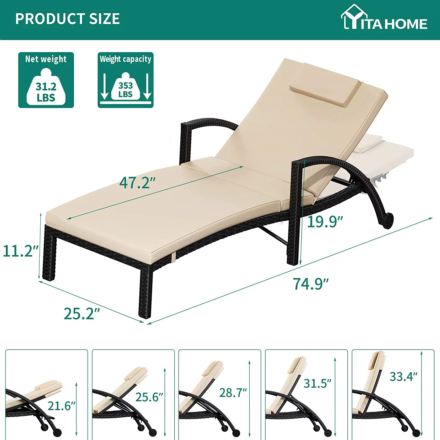 Dextrus Outdoor Chaise Lounge Chairs, PE Rattan Wicker Patio Pool Loungers with Adjustable Backrest, Arm, Cushion, Pillow and Wheels for Poolside Backyard Porch Garden Beach (1, Black) - Curated Treasures Market
