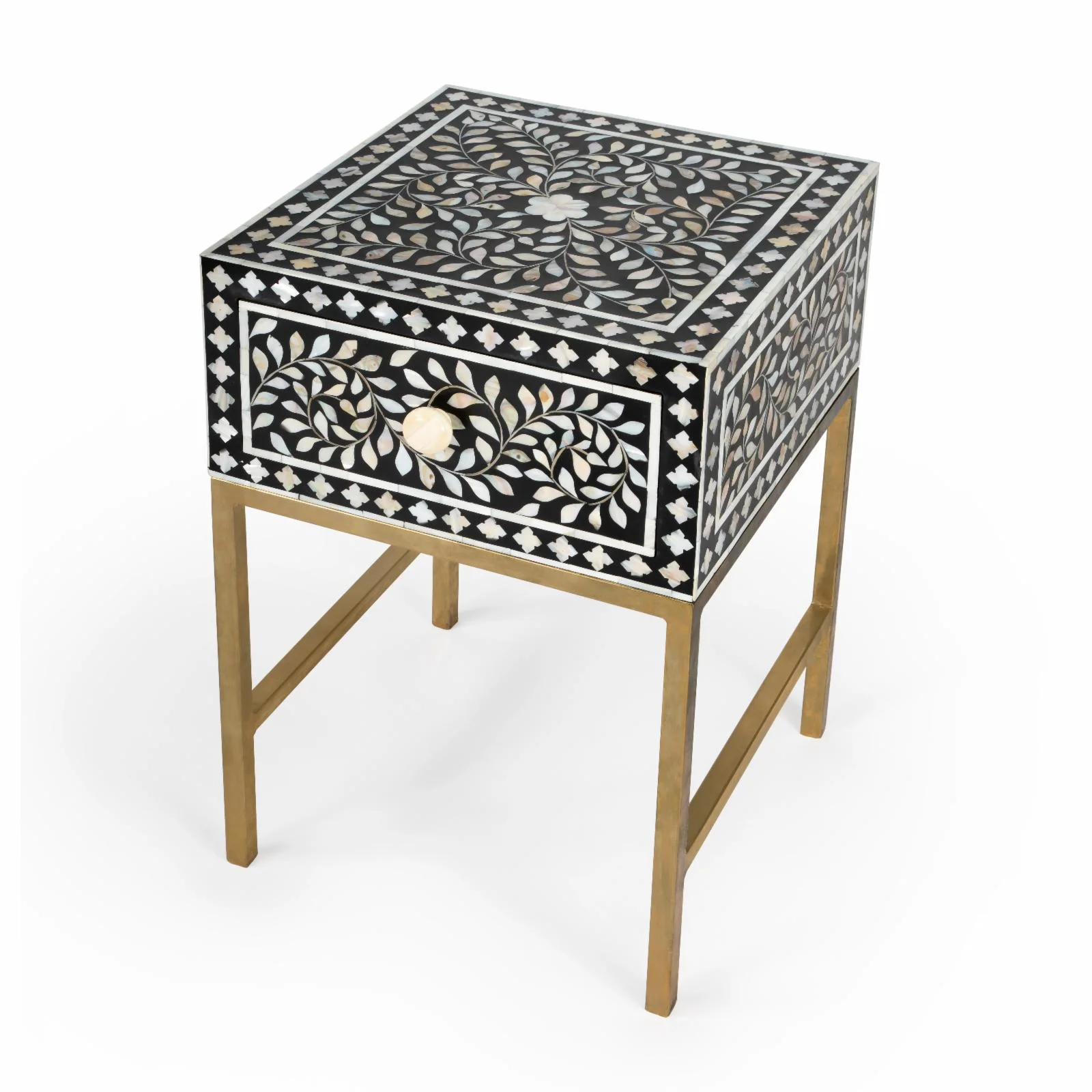 Butler 5532388 24 in. Purgenia Mother of Perl Side Table, Black & White - Curated Treasures Market