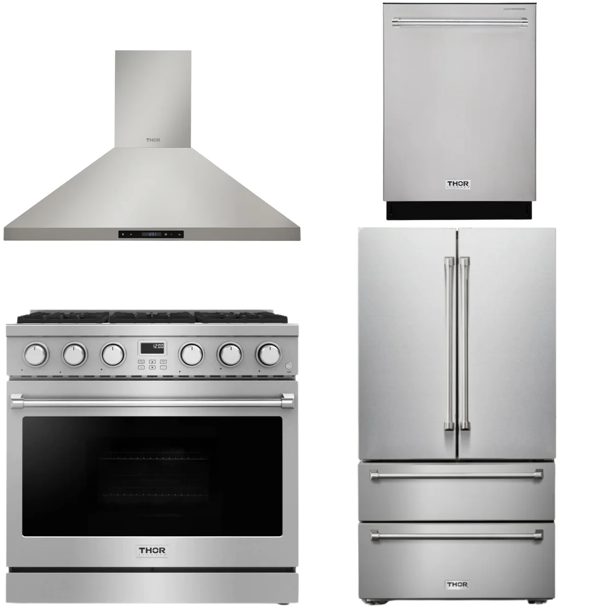 Thor Contemporary Package - 36 Gas Range, Range Hood, Refrigerator and Dishwasher, Thor-AP-ARG36LP-B41