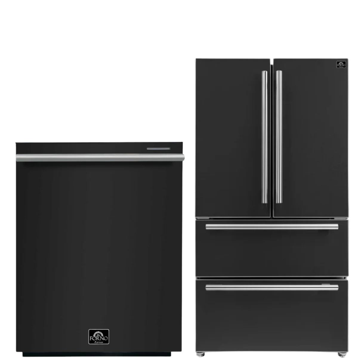 Forno Espresso Package - 36 Refrigerator and Dishwasher in Black with Silver Handles, AP-FFRBI1820-36BLK-S-2P-36RD