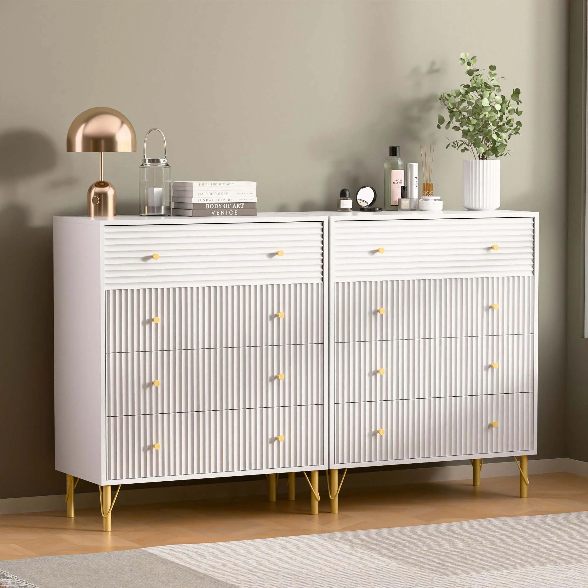 SunsGrove White Dresser with 4 Drawers Set of 2, Modern Tall Storage Chest of Drawers for Bedroom, Large Dressers, Fluted Waveform Panel Finish & Metal Legs