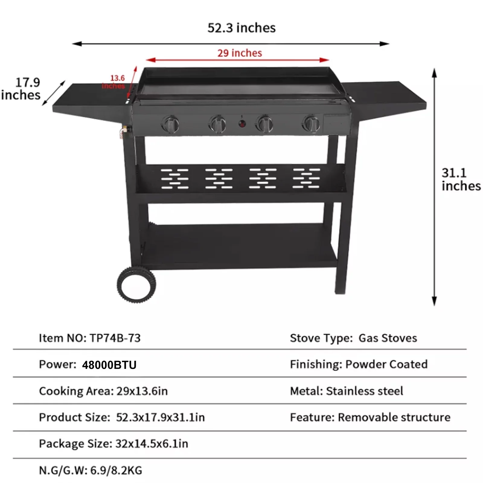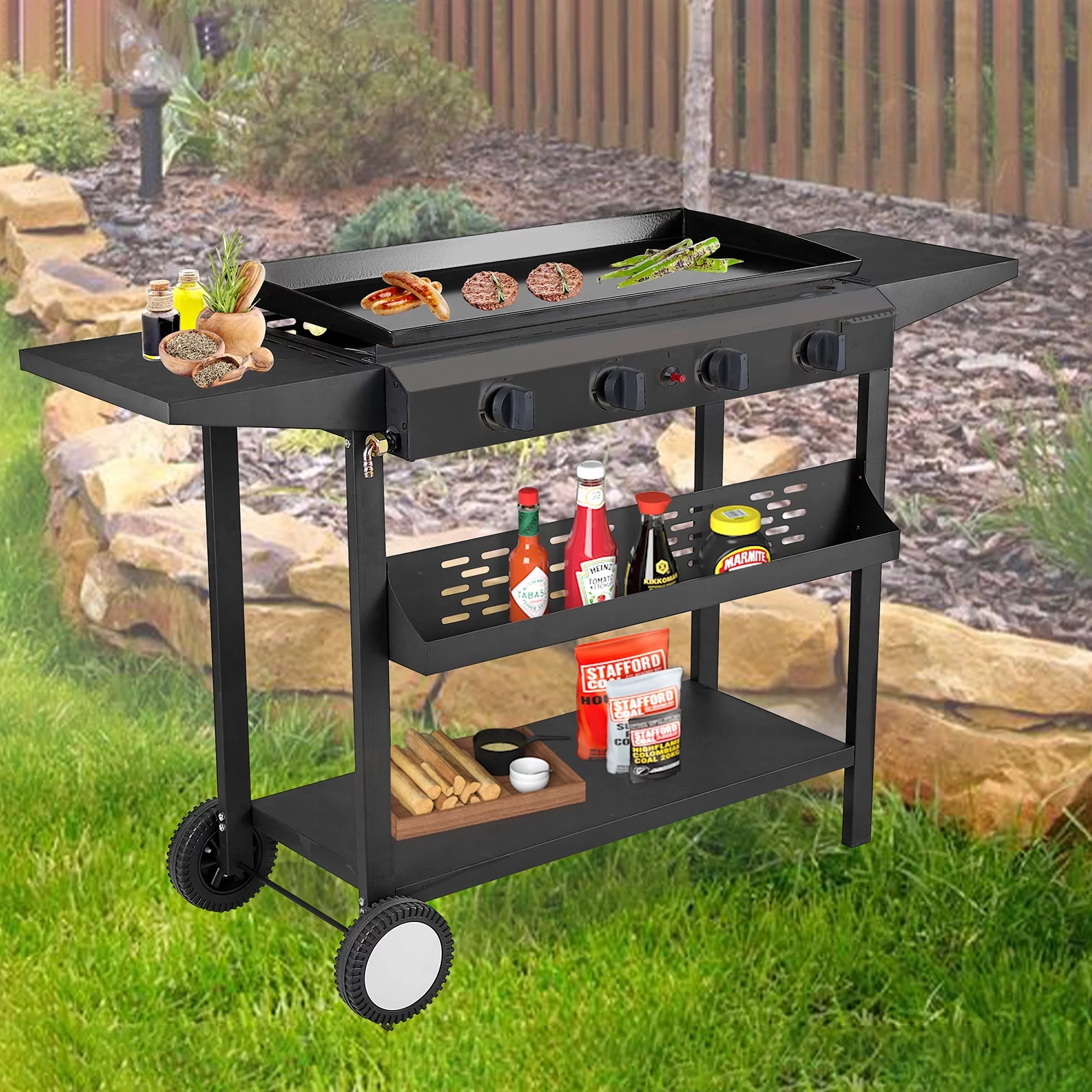 YouYeap 4 Burner Propane Gas Grill Flat Top Griddle Grill, Black