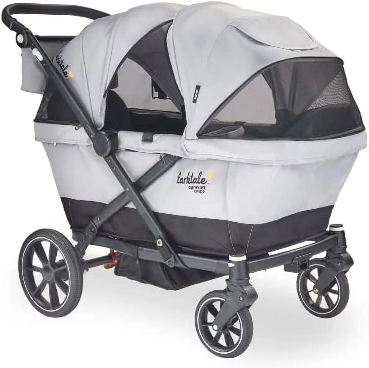 Larktale Caravan Coupe - Compact 2-Seater Stroller Wagon with Small Fold - Adjustable Canopies Included - Gray/Black