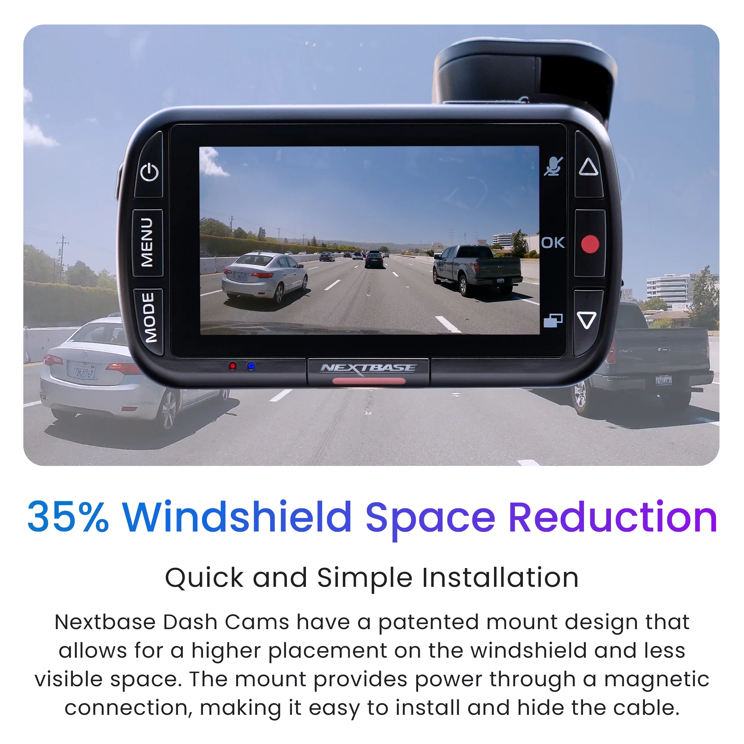 Nextbase 222 Compact Dash Cam in Black 2.5 HD IPS Screen, 1080p Full HD, Intelligent Parking Mode, G Force Sensor, 0.17lbs Assembled.
