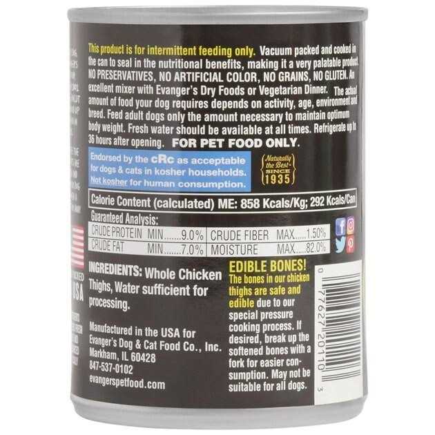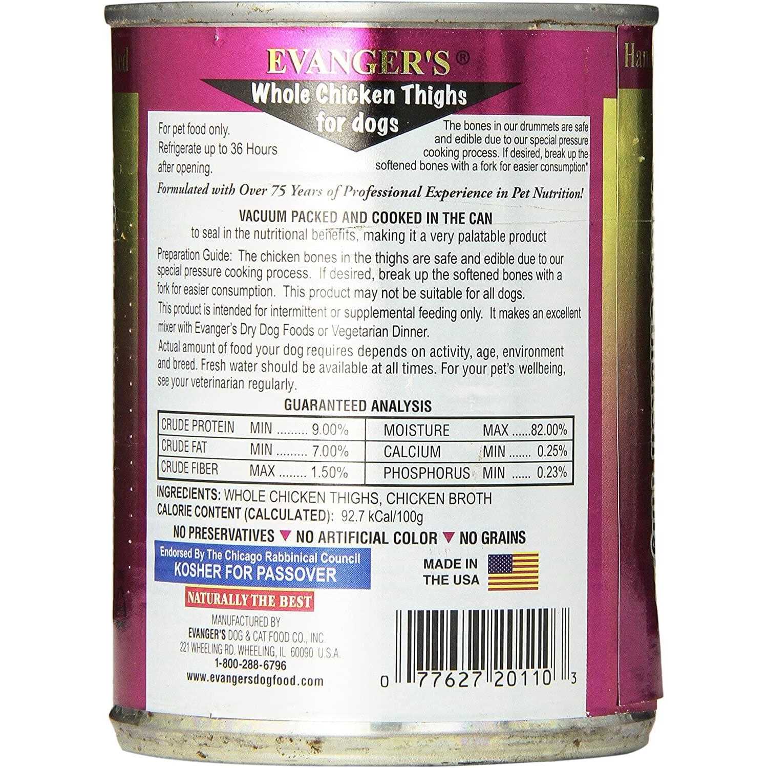 Evanger&s Grain-Free Hand Packed Whole Chicken Thighs Canned Dog Food