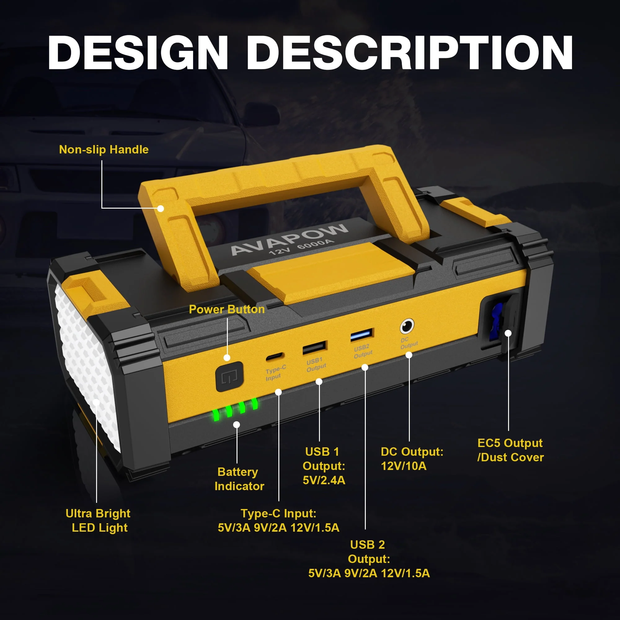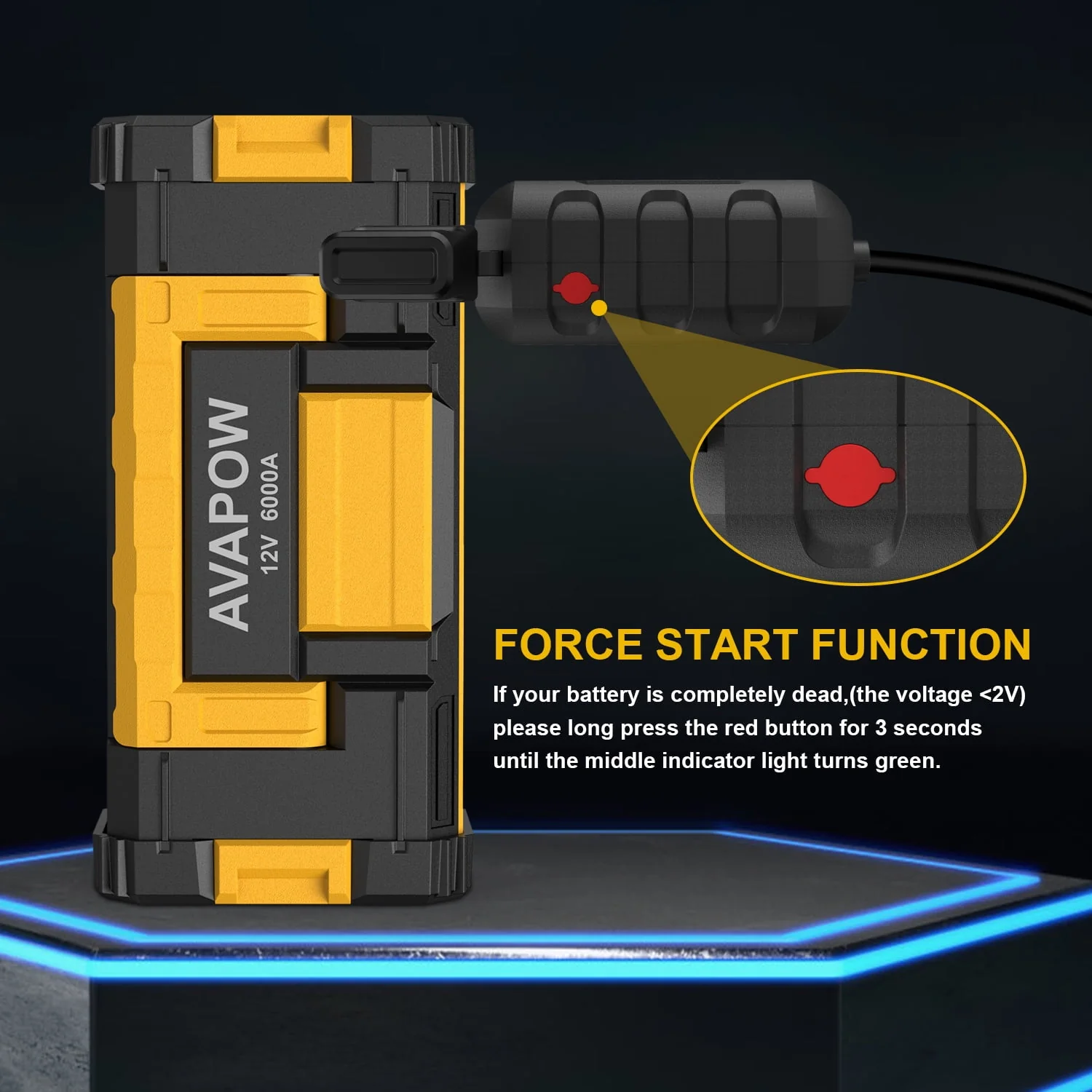 AVAPOW W68 6000A Car Battery Jump Starter(for All Gas or up to 12L Diesel) , Yellow