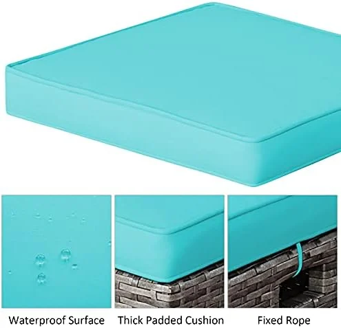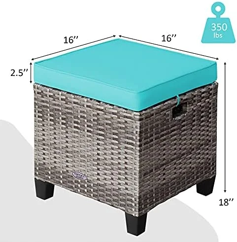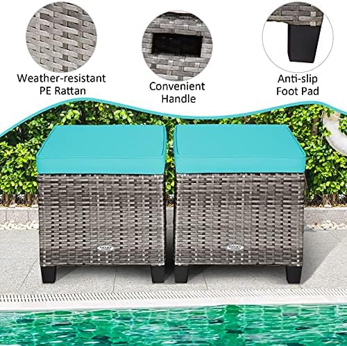 CLKHGFAR 2 Pieces Outdoor Patio Ottoman All Weather Rattan Wicker Ottoman Seat Patio Rattan Outdoor Footstool Footrest Seat w/Removable Cushions - Curated Treasures Market
