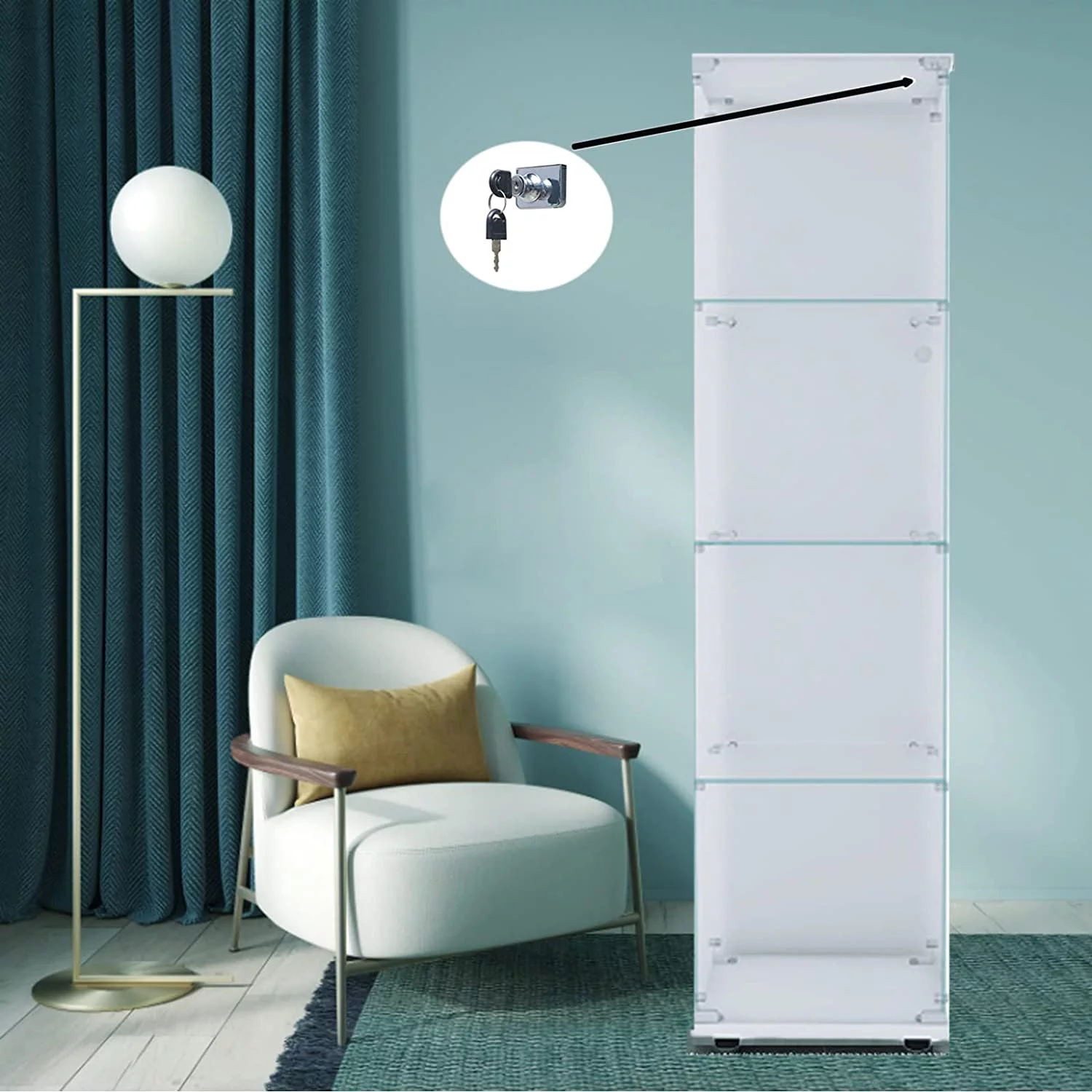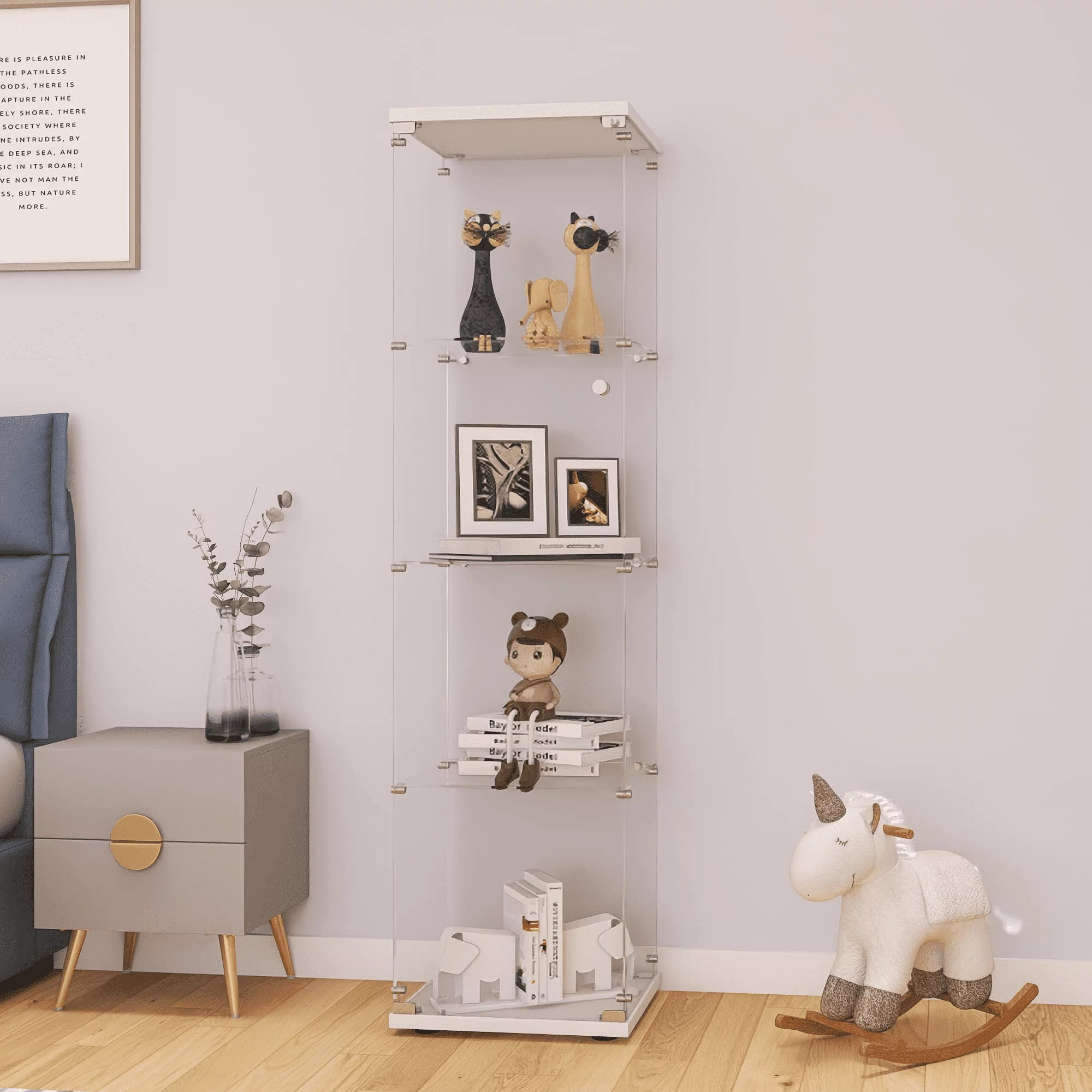 Miniyam 64.5" 4-Shelf Case Glass Curio Cabinet Black, Corner Display Cabinet with Glass Door, 4Unites, Floor Standing Collection Display Case for Living Room Bedroom Home Office - Curated Treasures Market