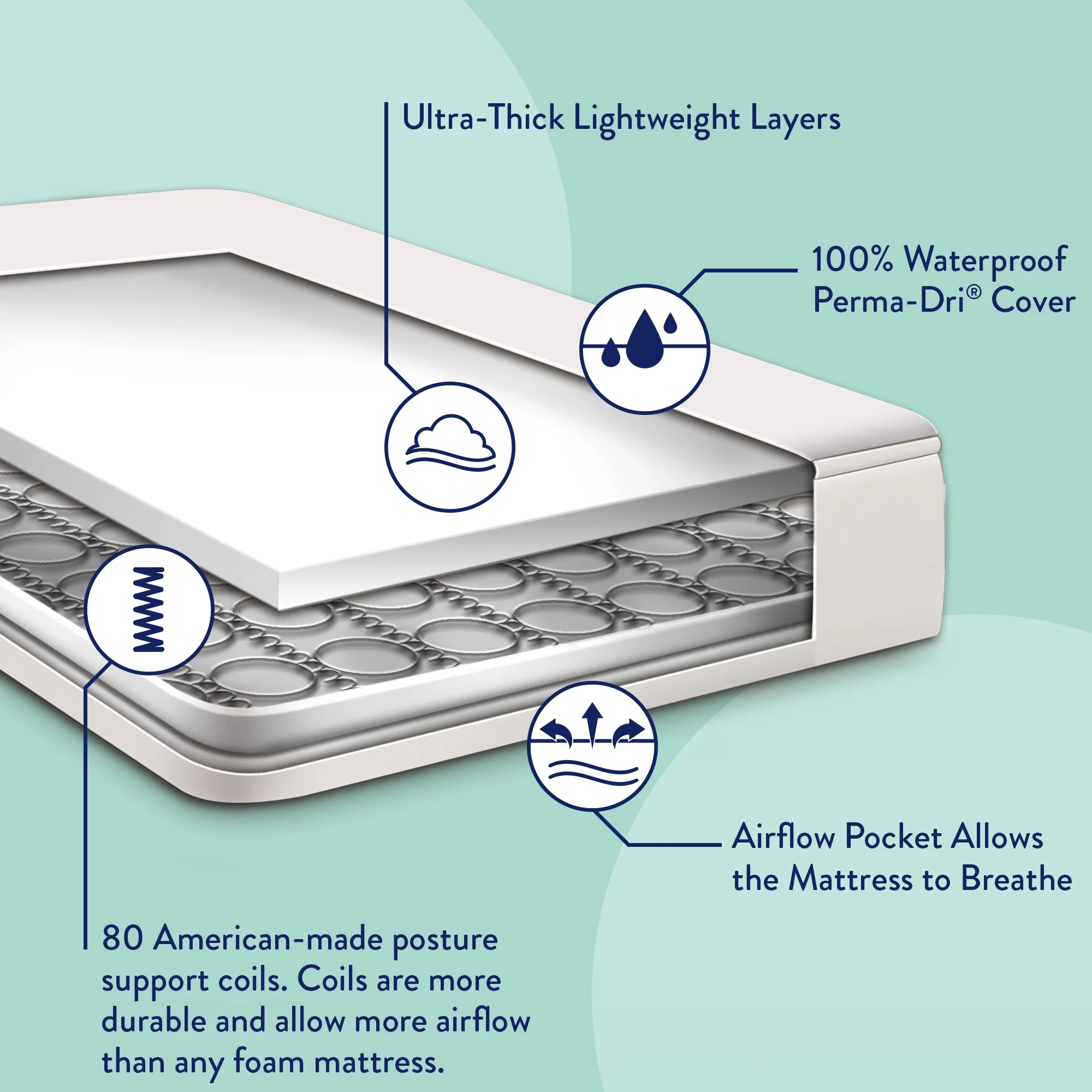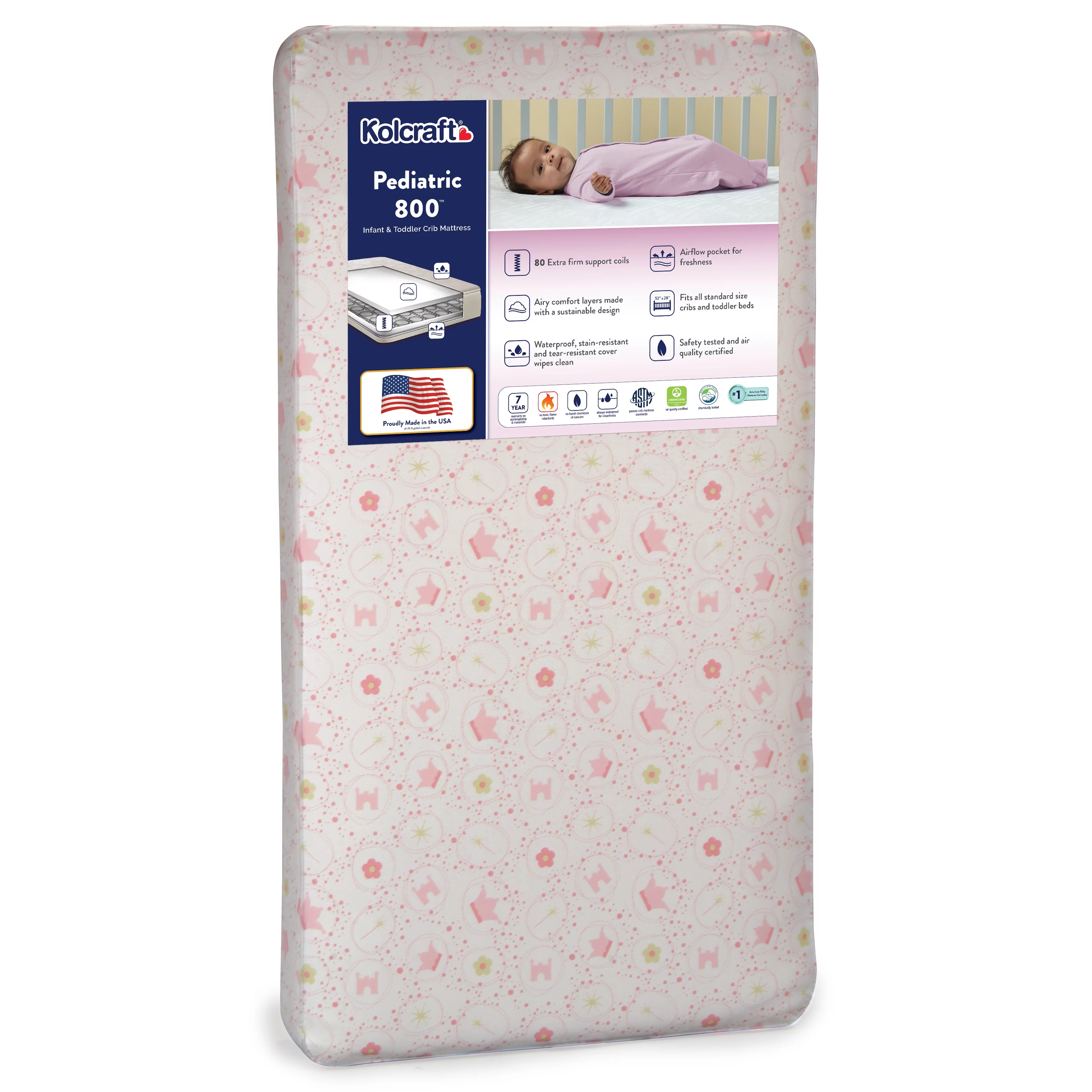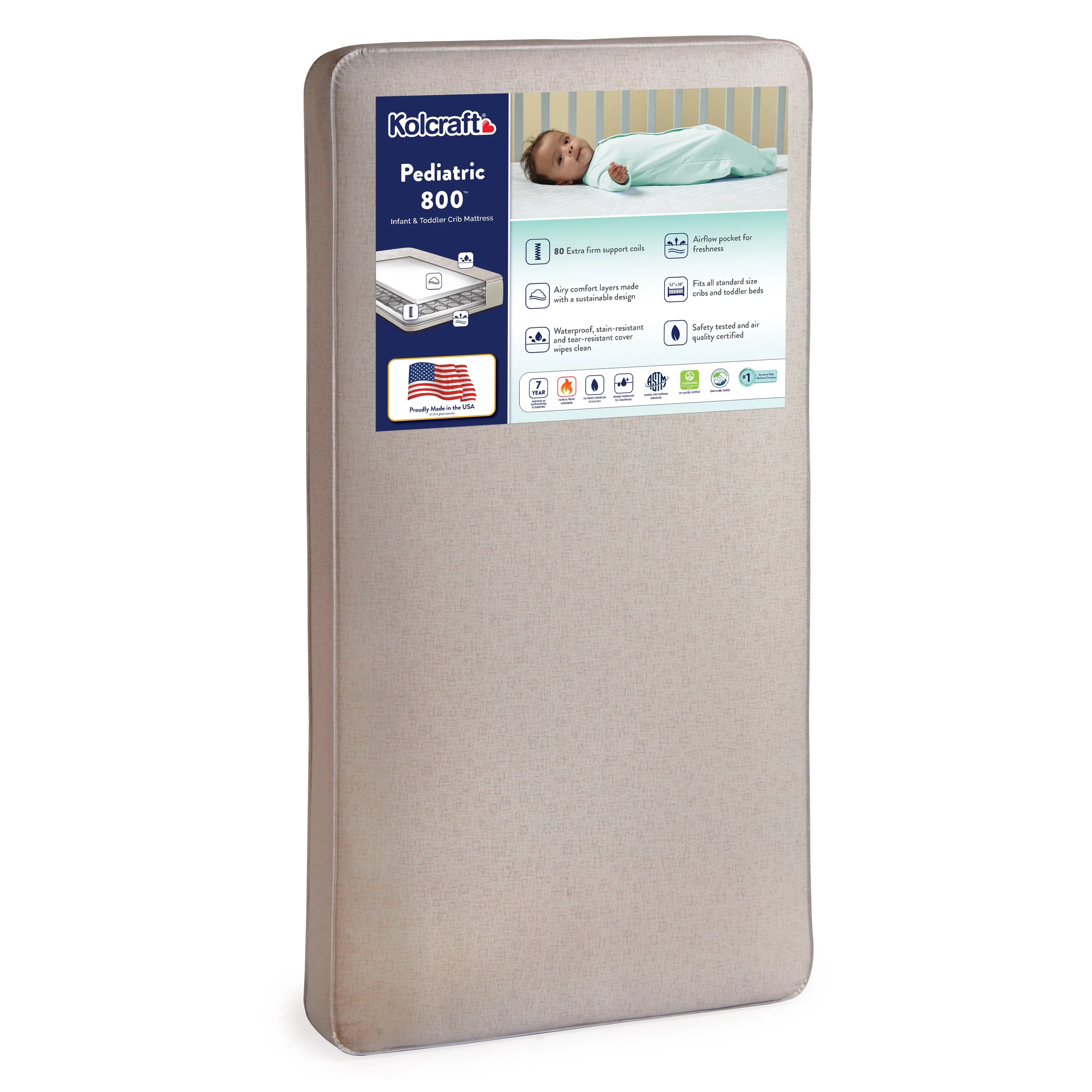 Kolcraft Pediatric 800 Extra Firm Ultra Deluxe, 80 Coil Baby Crib and Toddler Mattress, White
