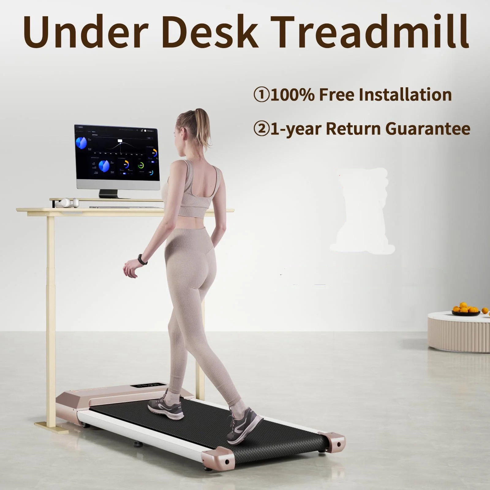 Walking Pad Treadmill 2.5Hp, Ultra-Quiet with Remote Control-Under Desk Treadmill 2 in 1 Walking and Jogging with Remote Control LED Display(Pink)