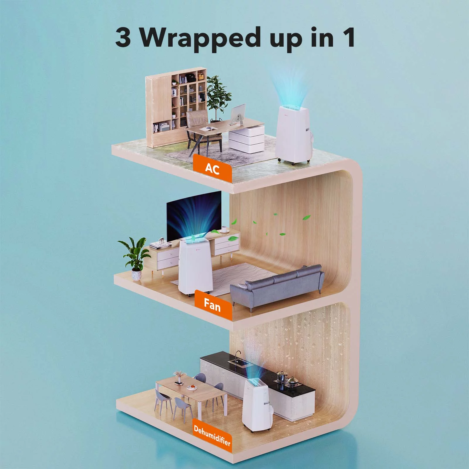 Taotronics (10000 BTU ASHRAE) Portable Air Conditioner, 3-in-1 Air Cooler Fan with Casters, 300 sq. ft, Dehumidifier, White