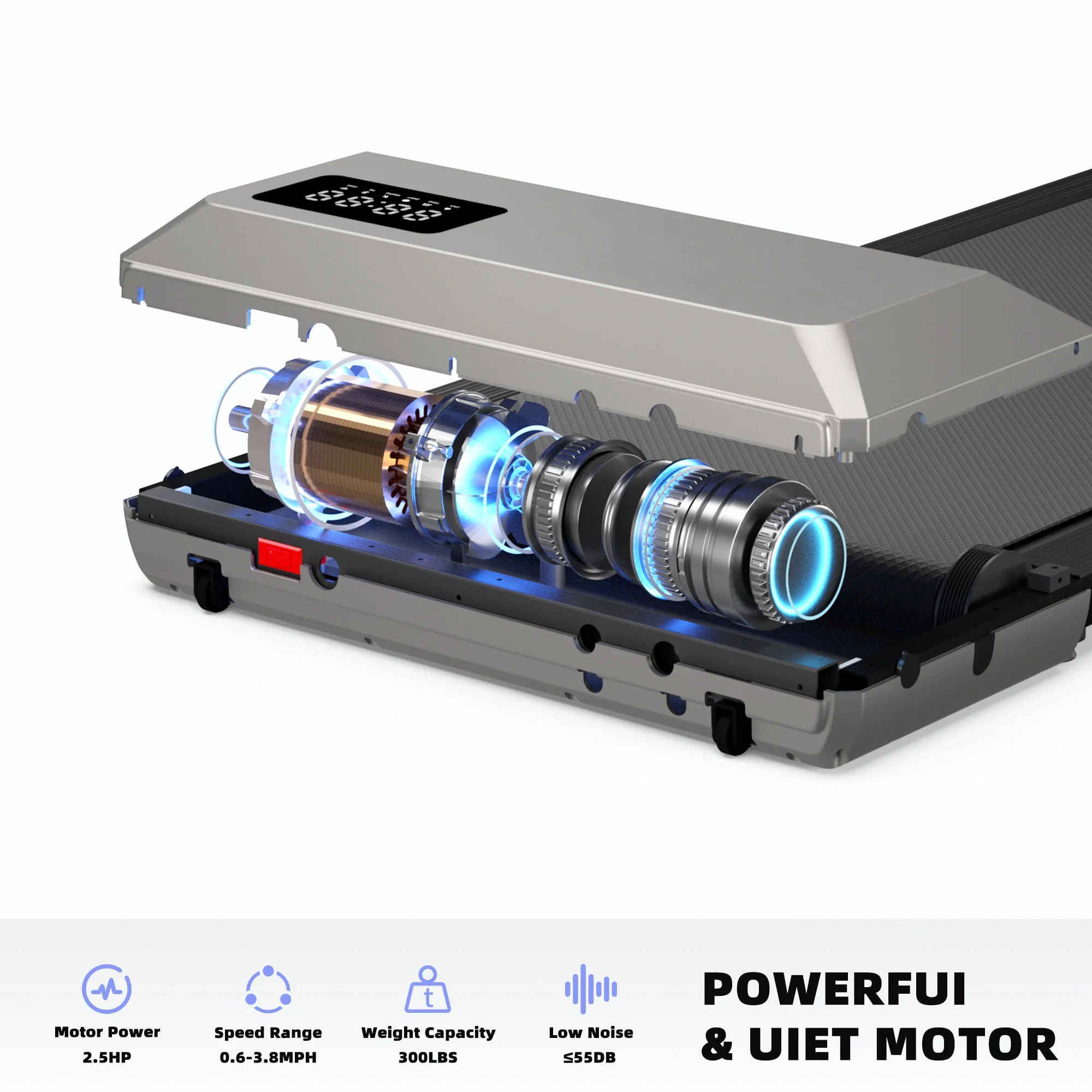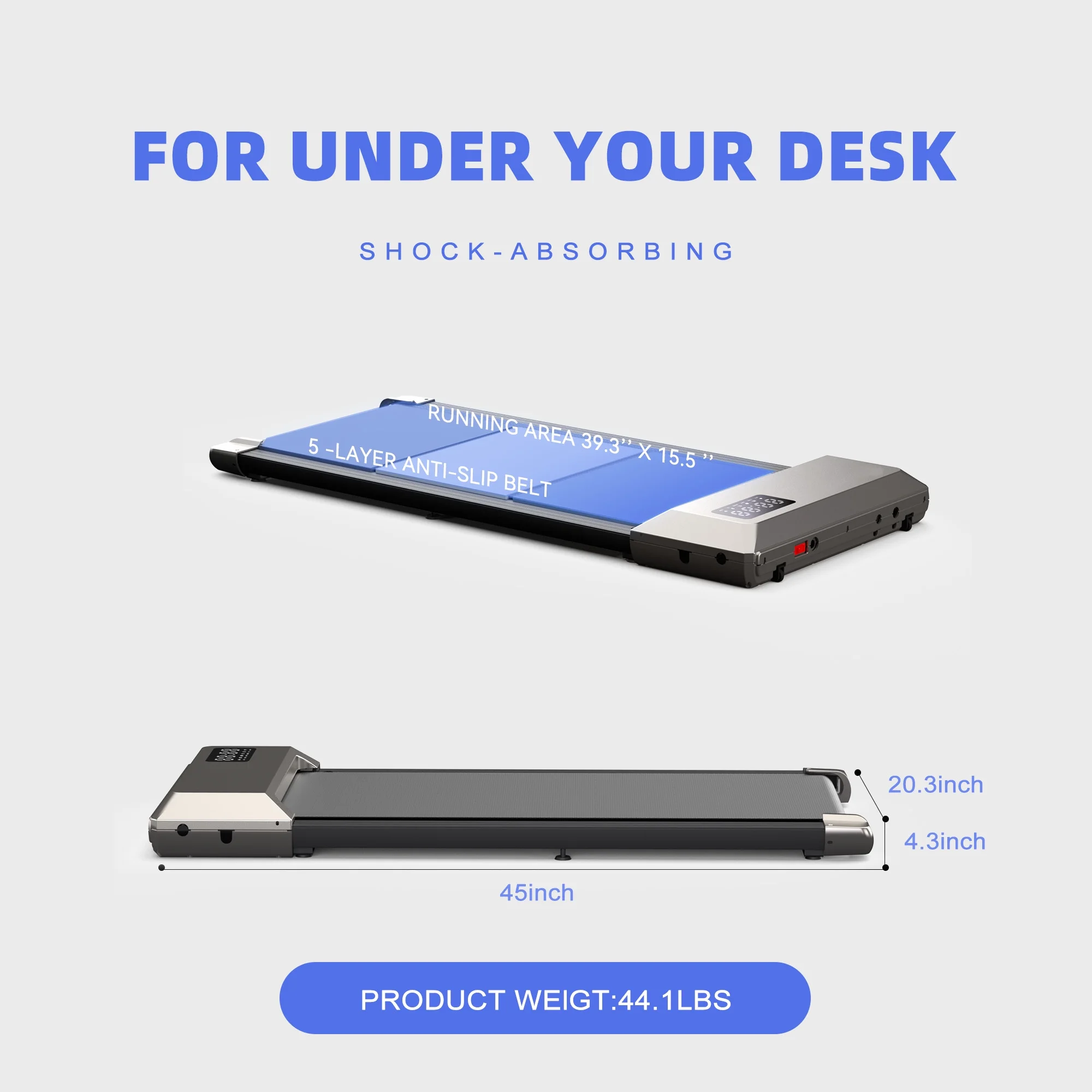 220lbs Under Desk Walking Pad, 42.5*19.7 Portable Electric Walking Treadmill with LED Display and Wheels for Home & Office