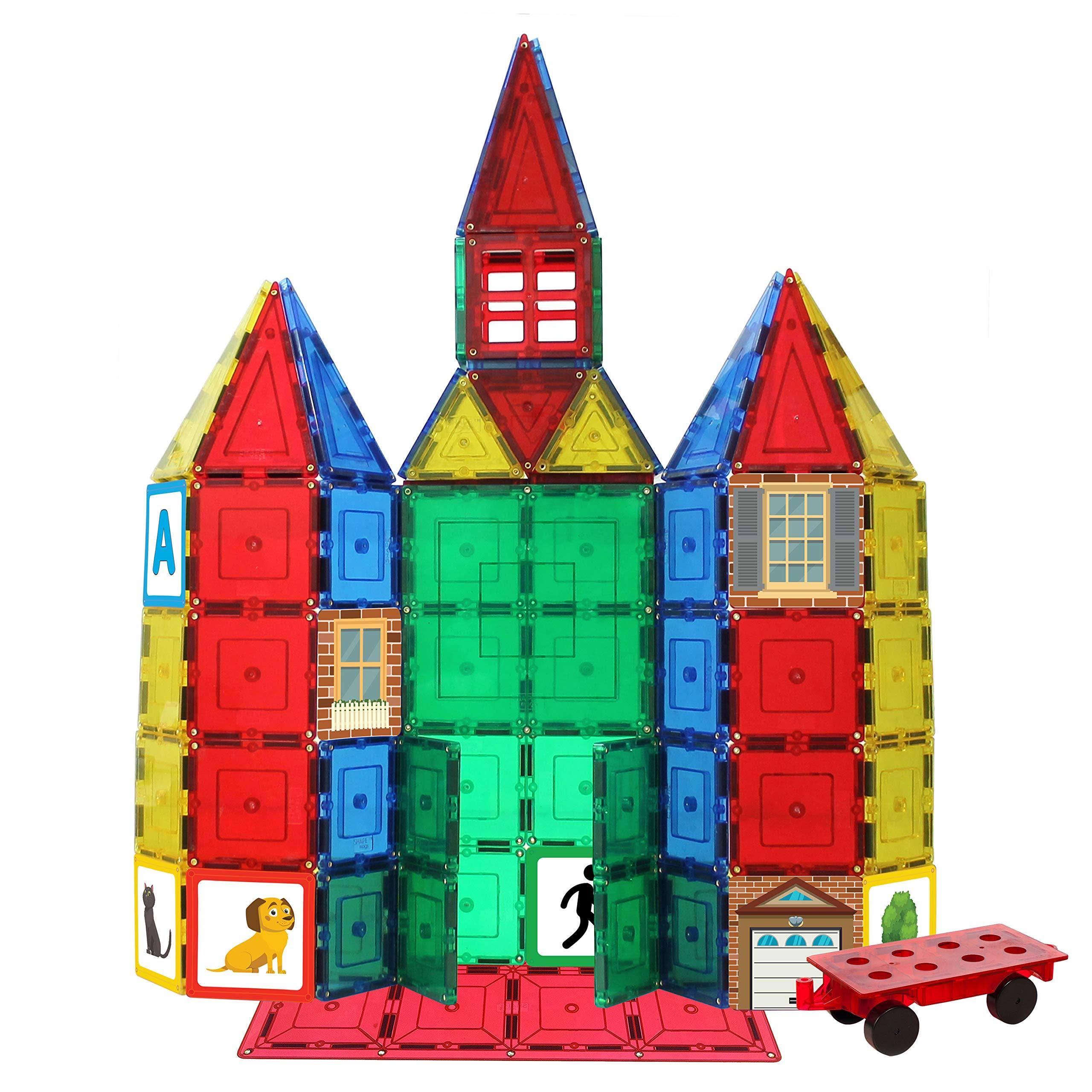 Magnetic Stick N Stack Magnetic Tiles 100 Piece Set Clear Colors with 2 Magnetic - Megean