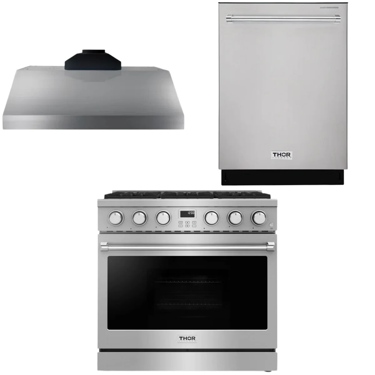 Thor Contemporary Package - 36 Gas Range, Range Hood and Dishwasher, Thor-AP-ARG36LP-B13