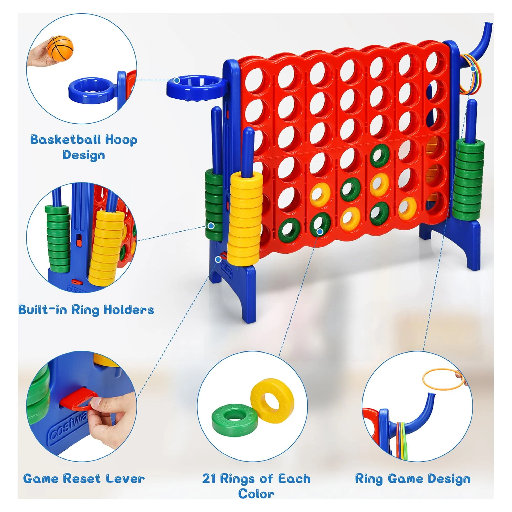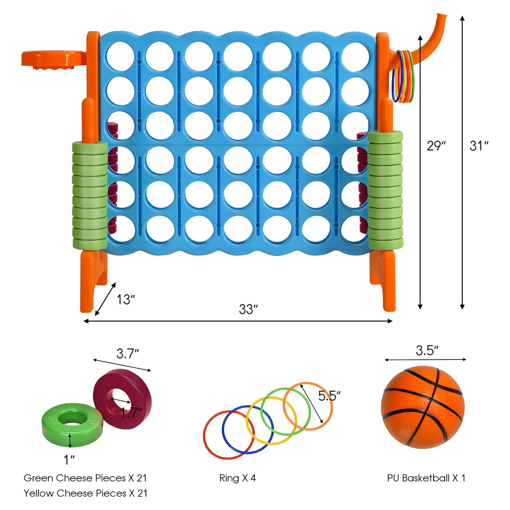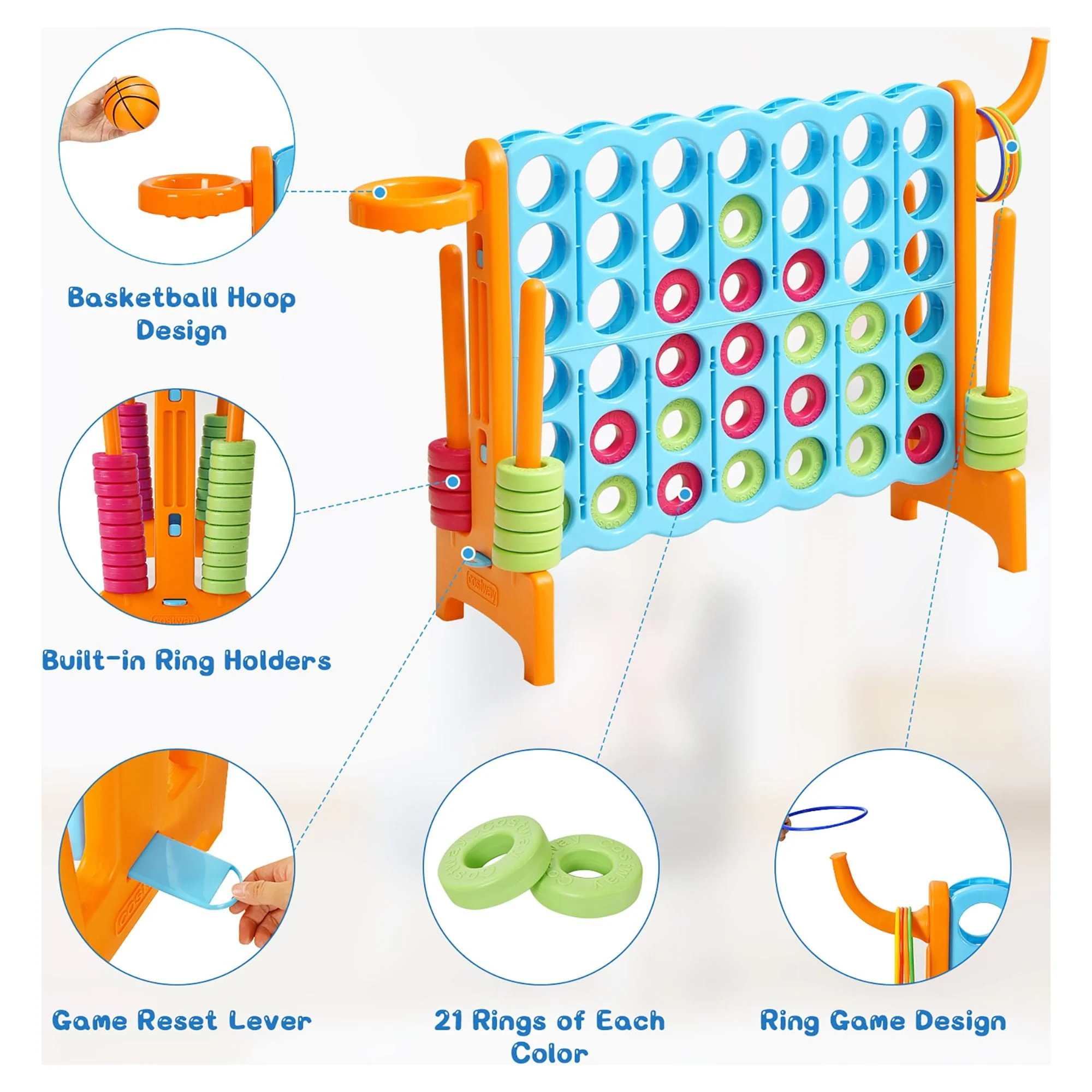 Costway 4-in-A Row Giant Game Set w/Basketball Hoop for Family Orange
