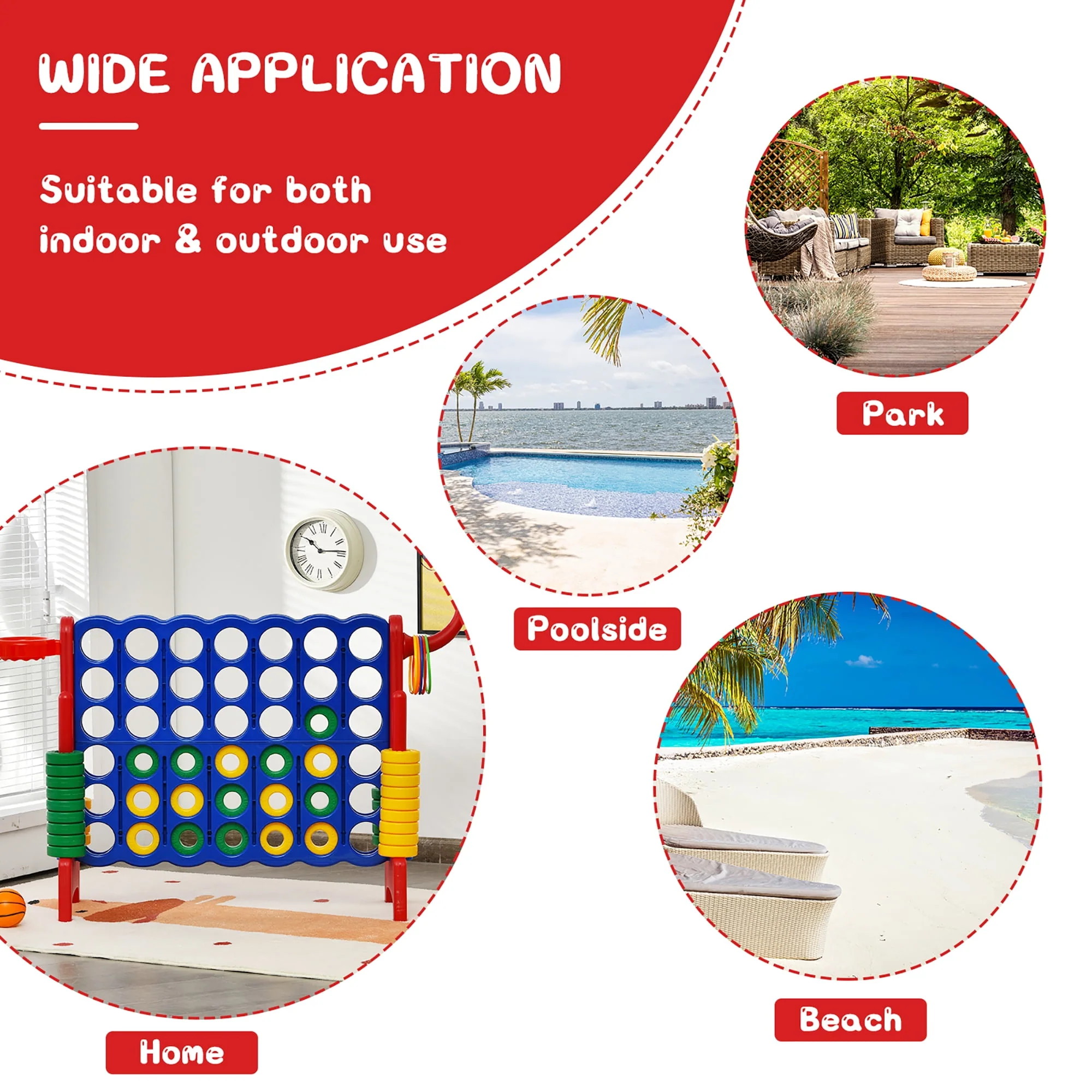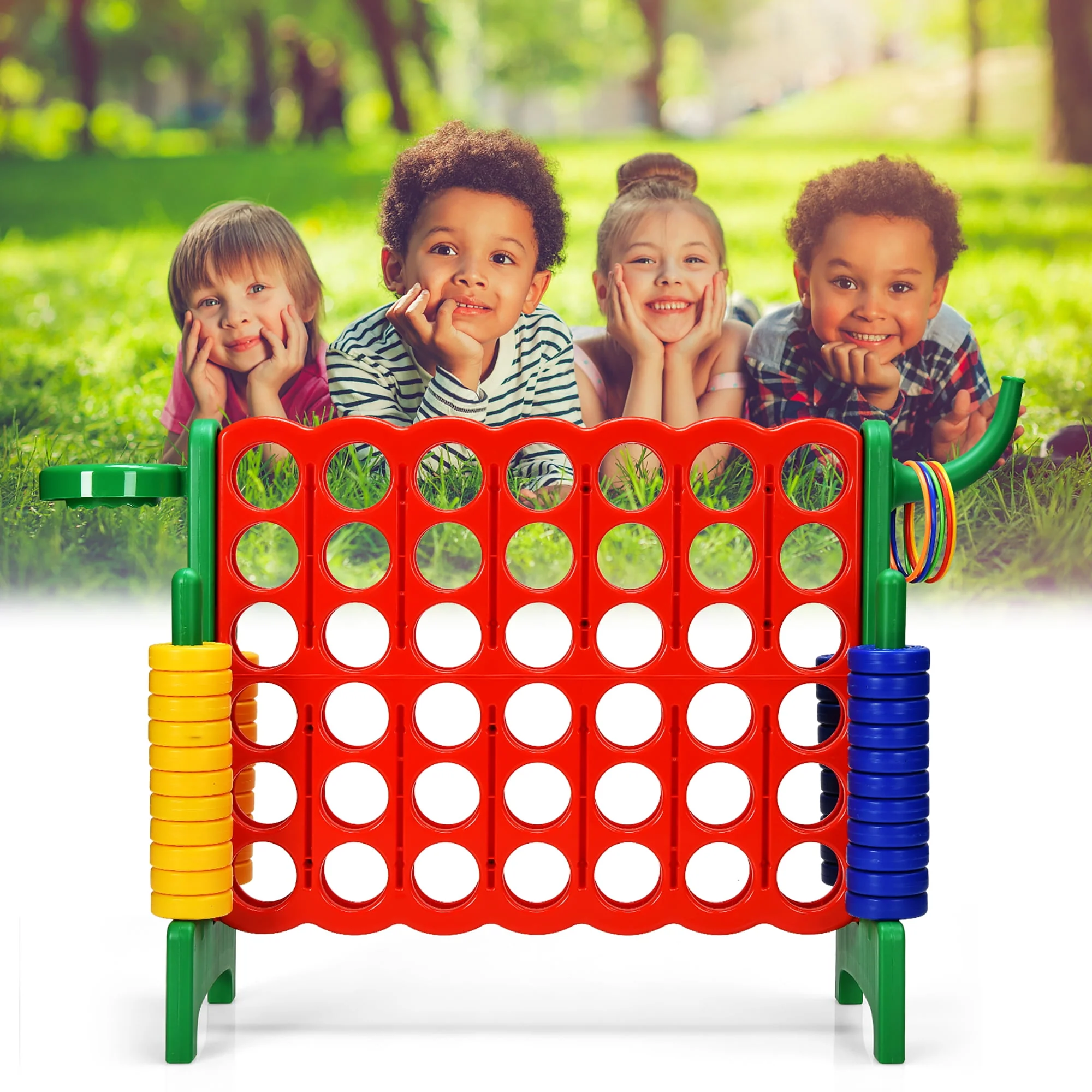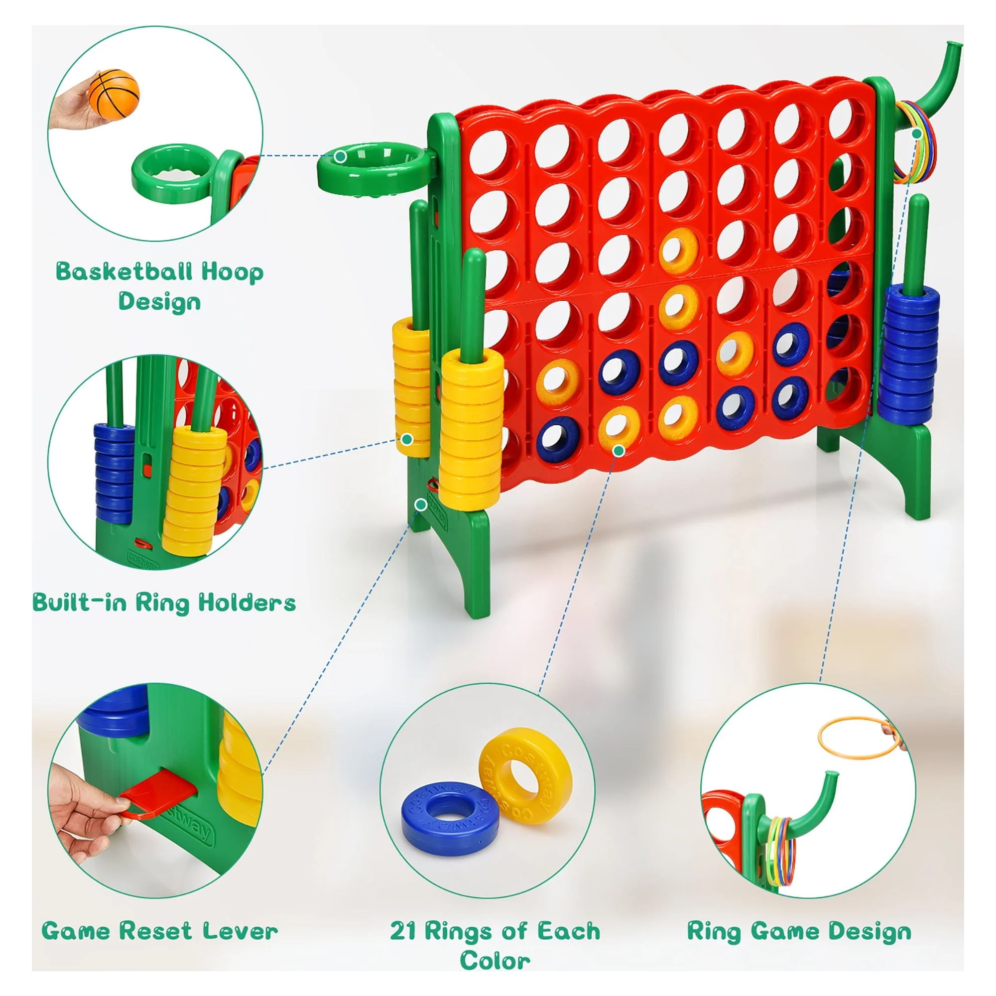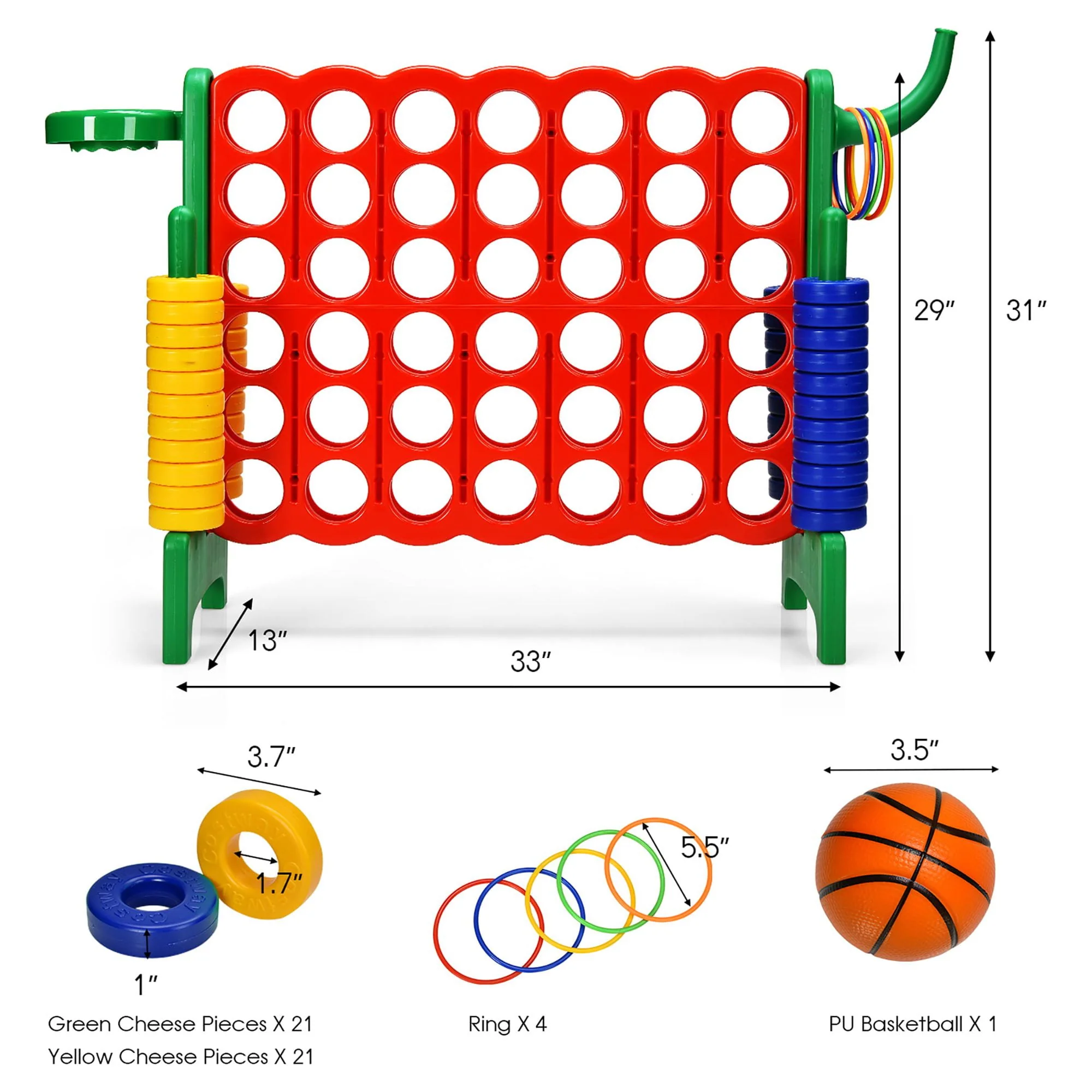Costway 4-in-A Row Giant Game Set w/Basketball Hoop for Family Orange