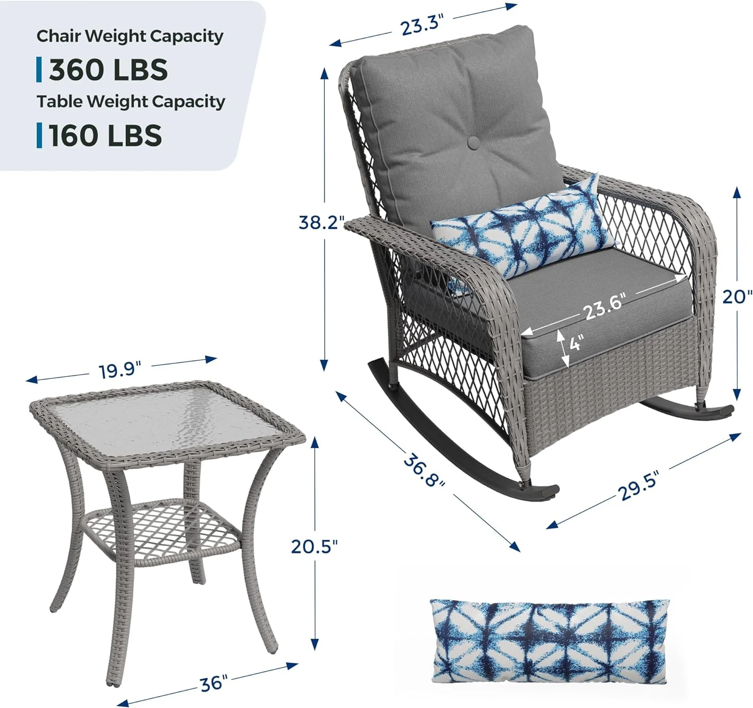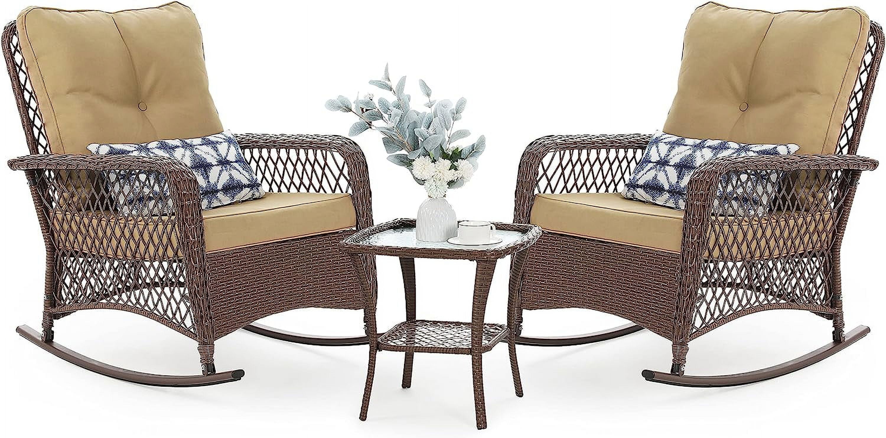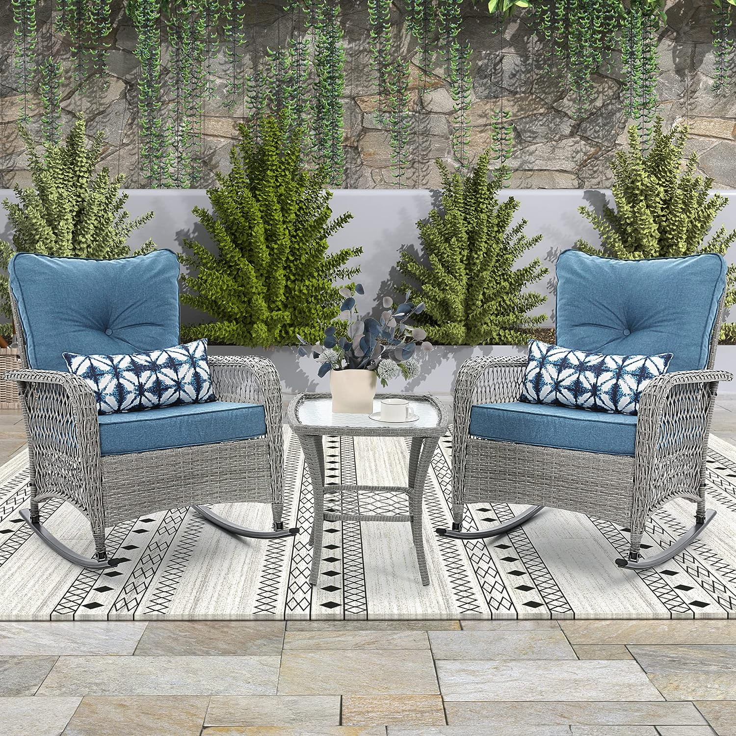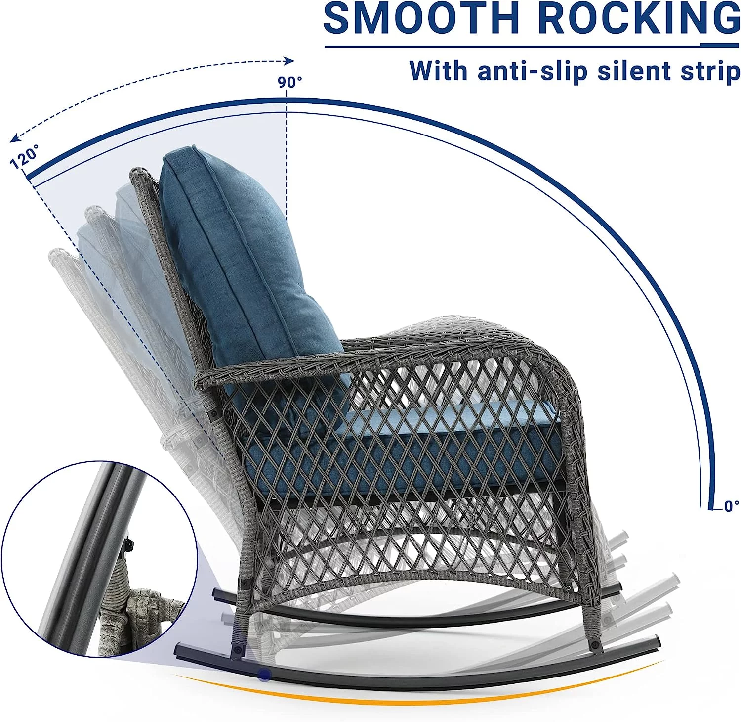 UDPATIO 3 Piece Patio Set Rocking, Rattan Outdoor Rocking Patio Bistro Set for Backyard, Porch, Balcony, Poolside(Blue)