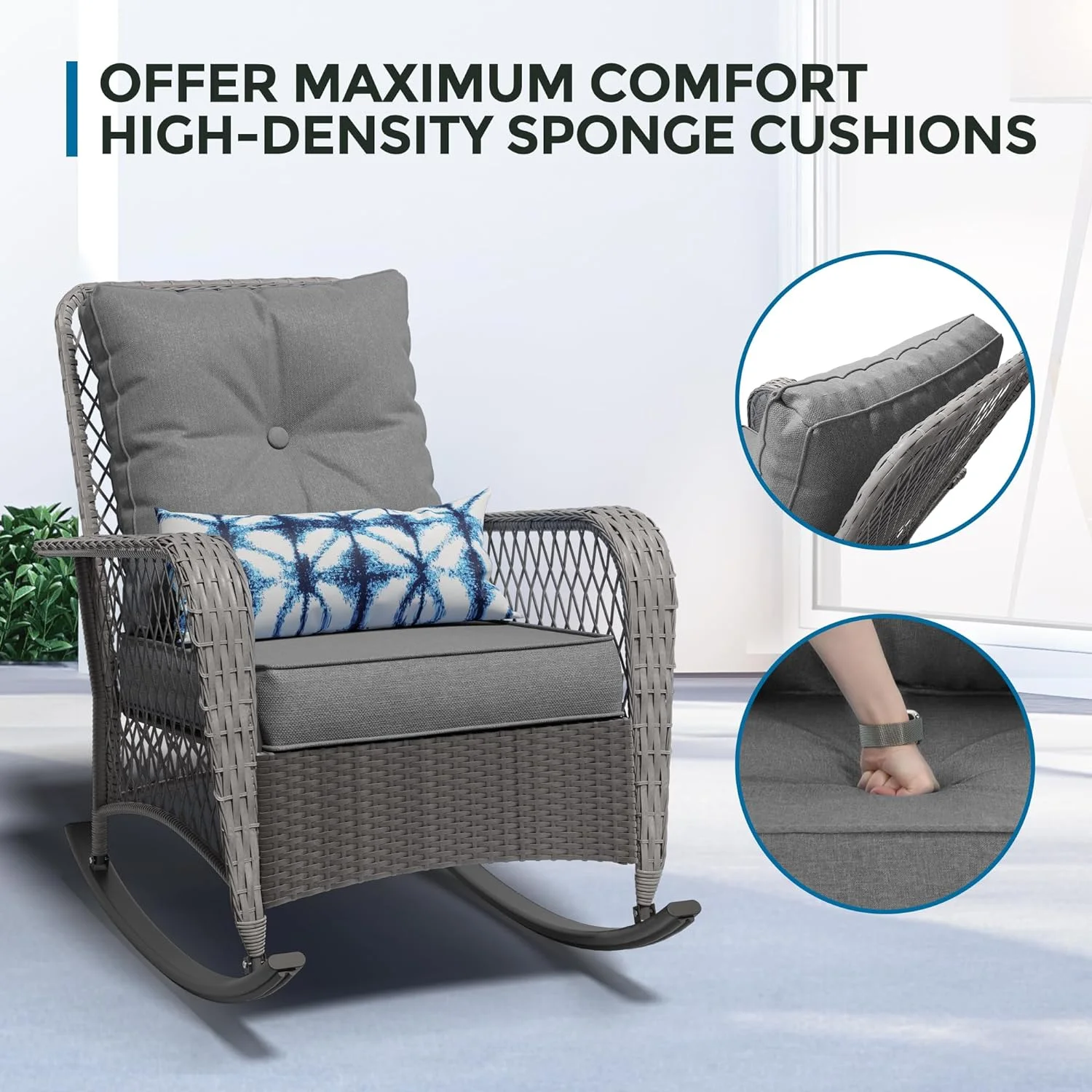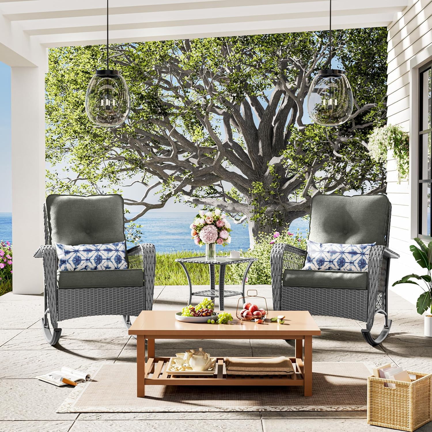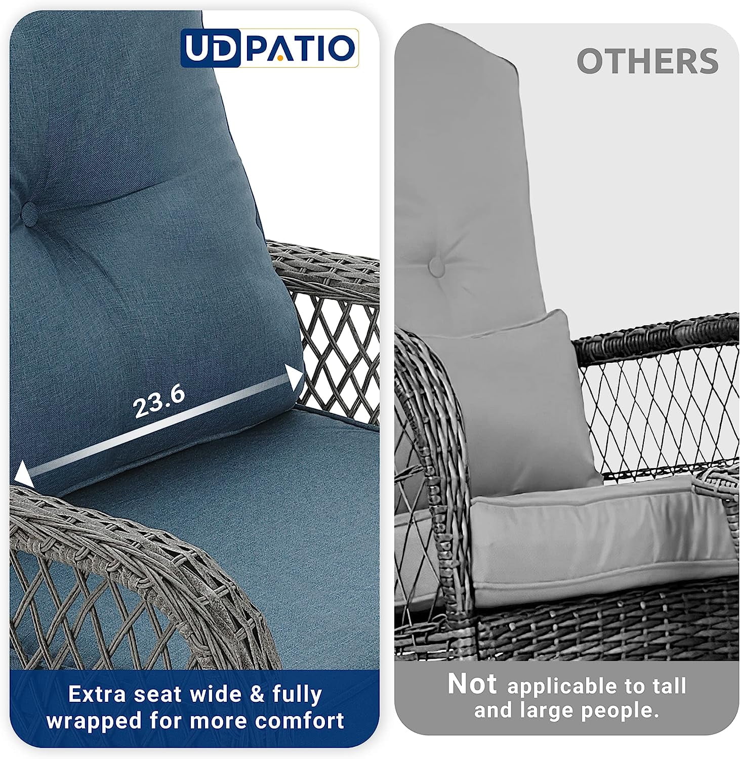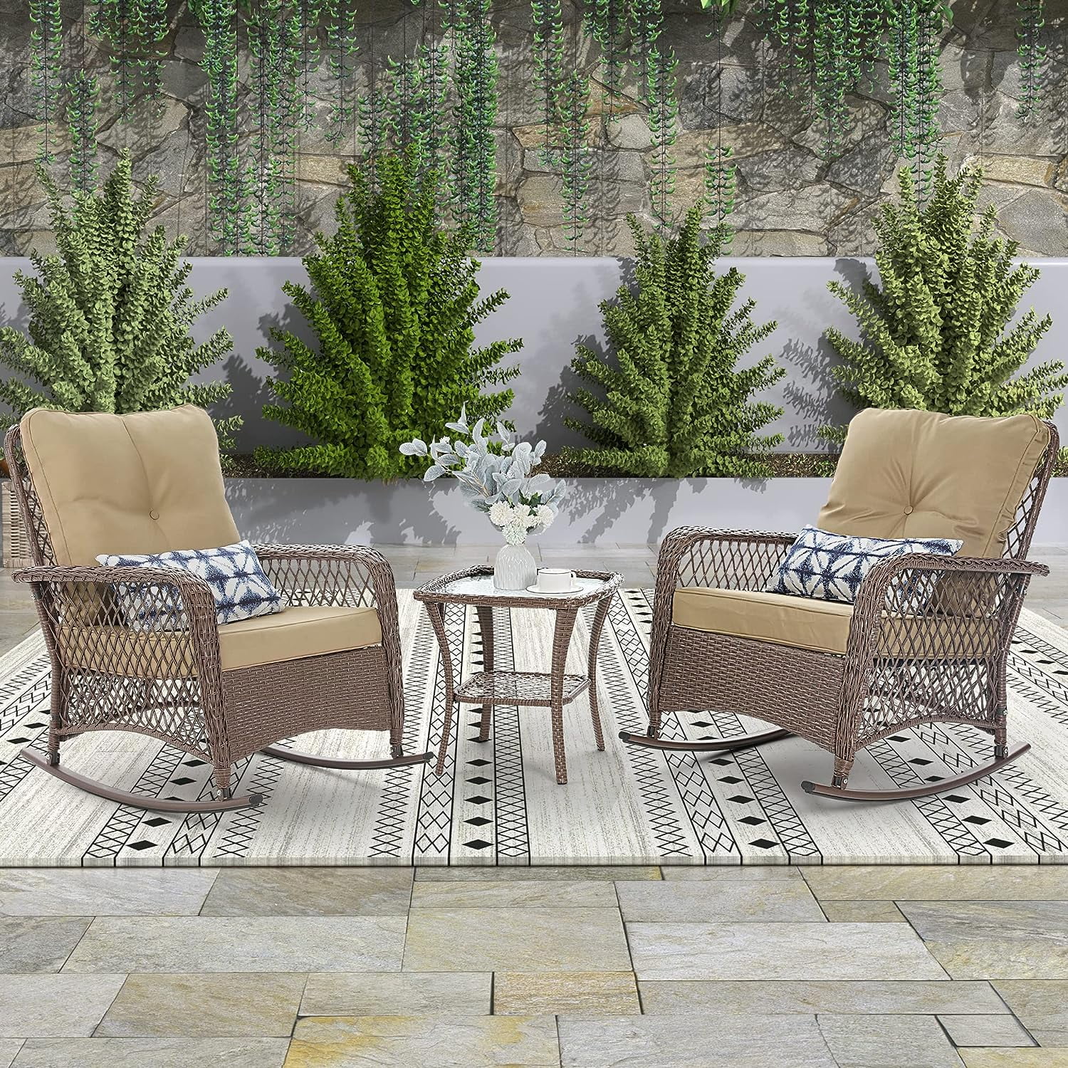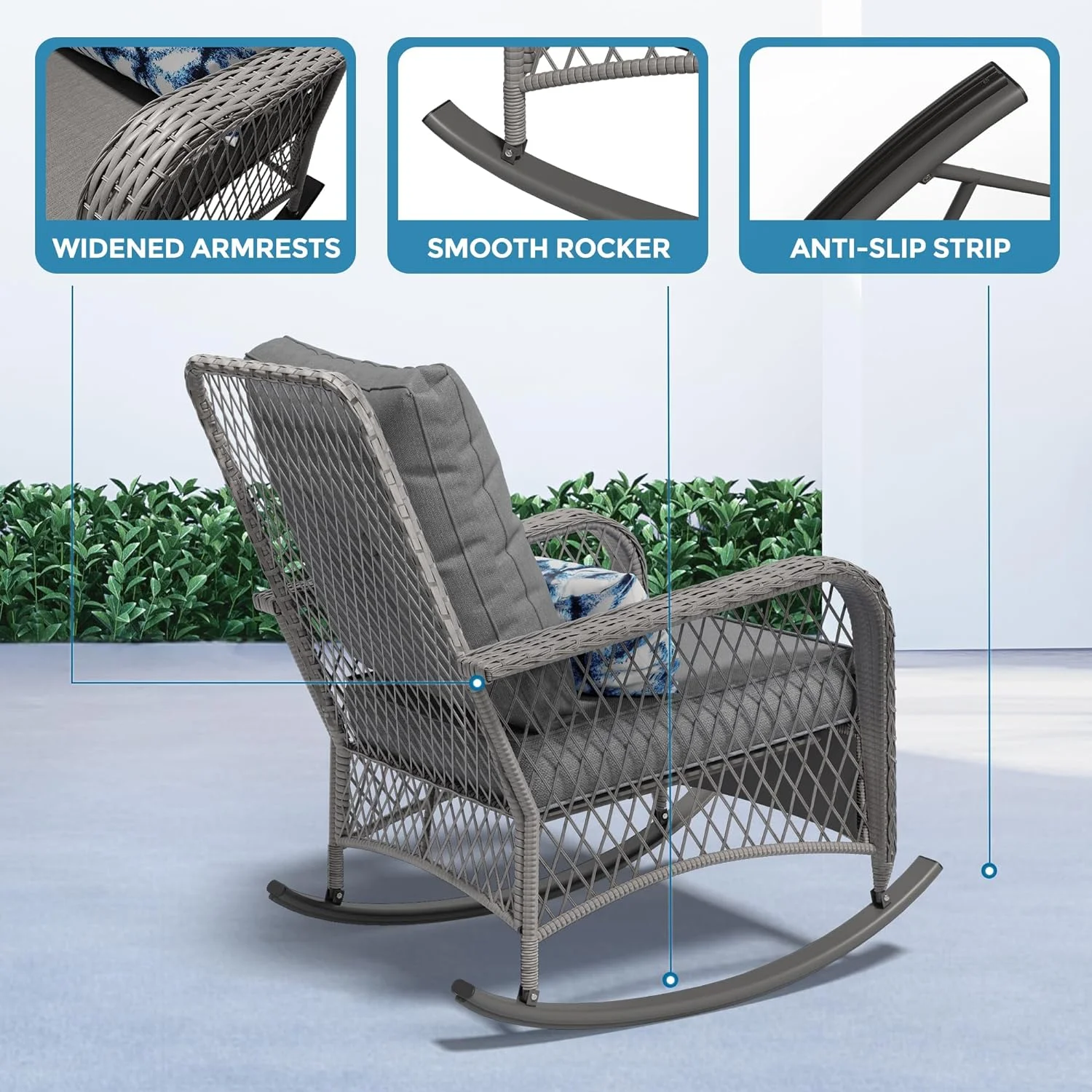 UDPATIO 3 Piece Patio Set Rocking, Rattan Outdoor Rocking Patio Bistro Set for Backyard, Porch, Balcony, Poolside(Blue)