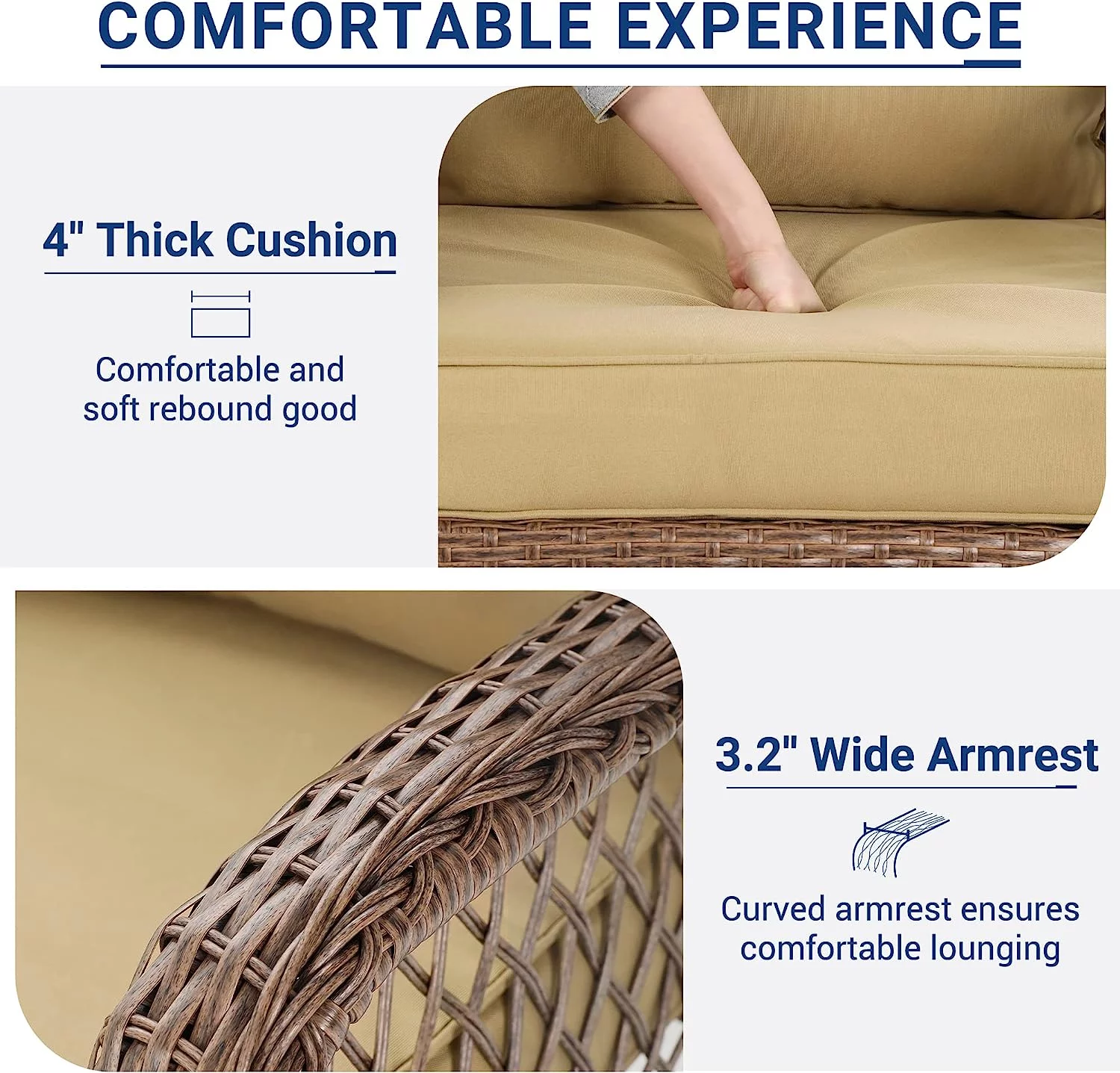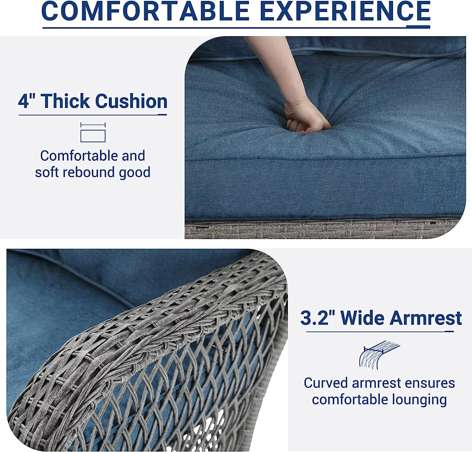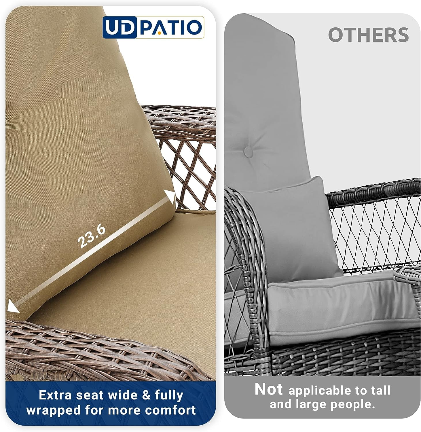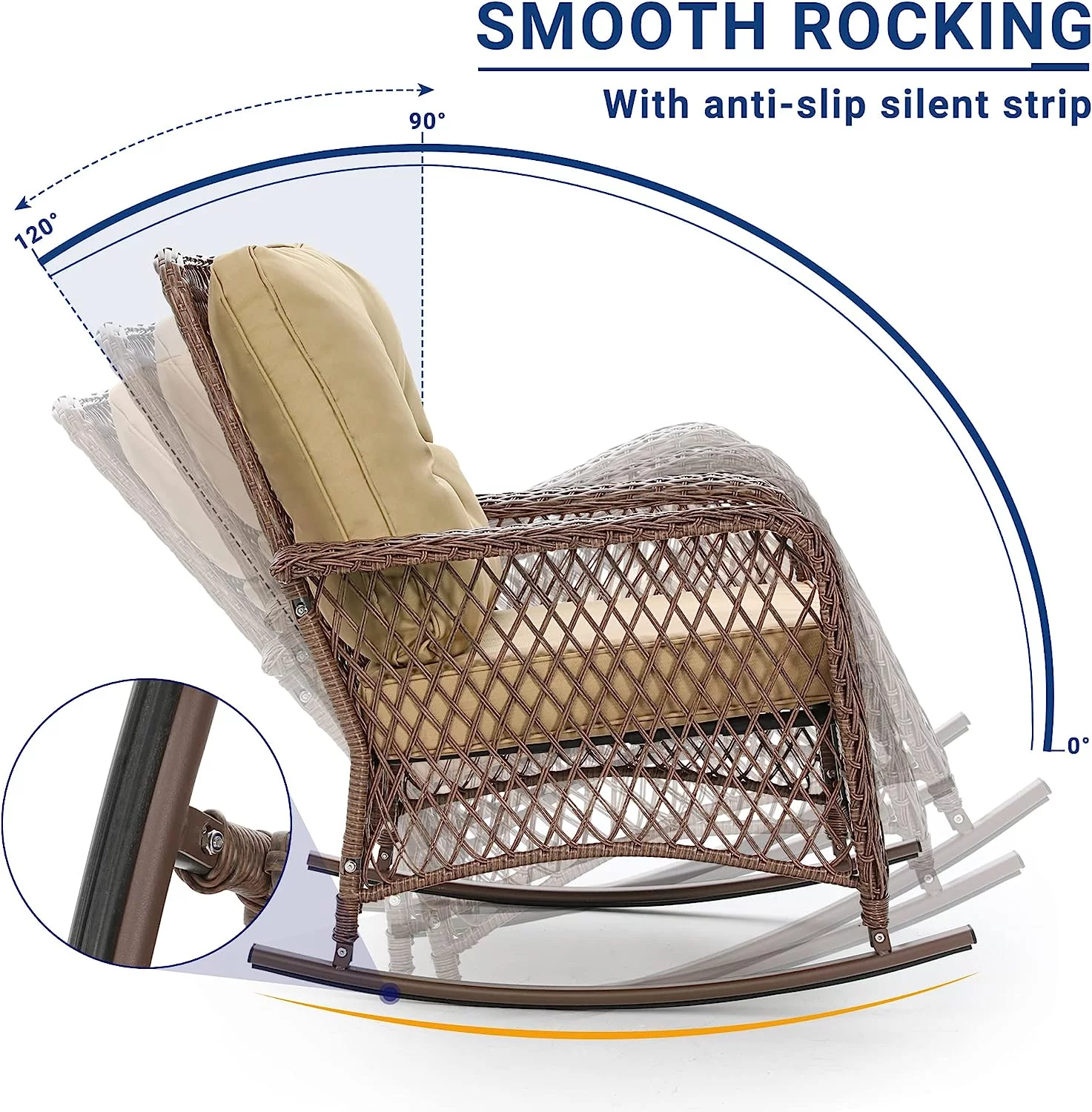 UDPATIO 3 Piece Patio Set Rocking, Rattan Outdoor Rocking Patio Bistro Set for Backyard, Porch, Balcony, Poolside(Blue)