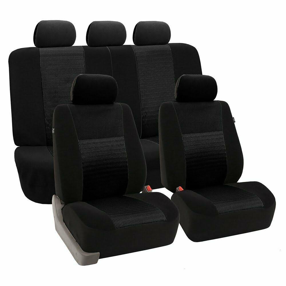 FH Group Trendy Elegance AIRBAG Compatible and Split Bench Seat Covers, Full Set, Black - Megean