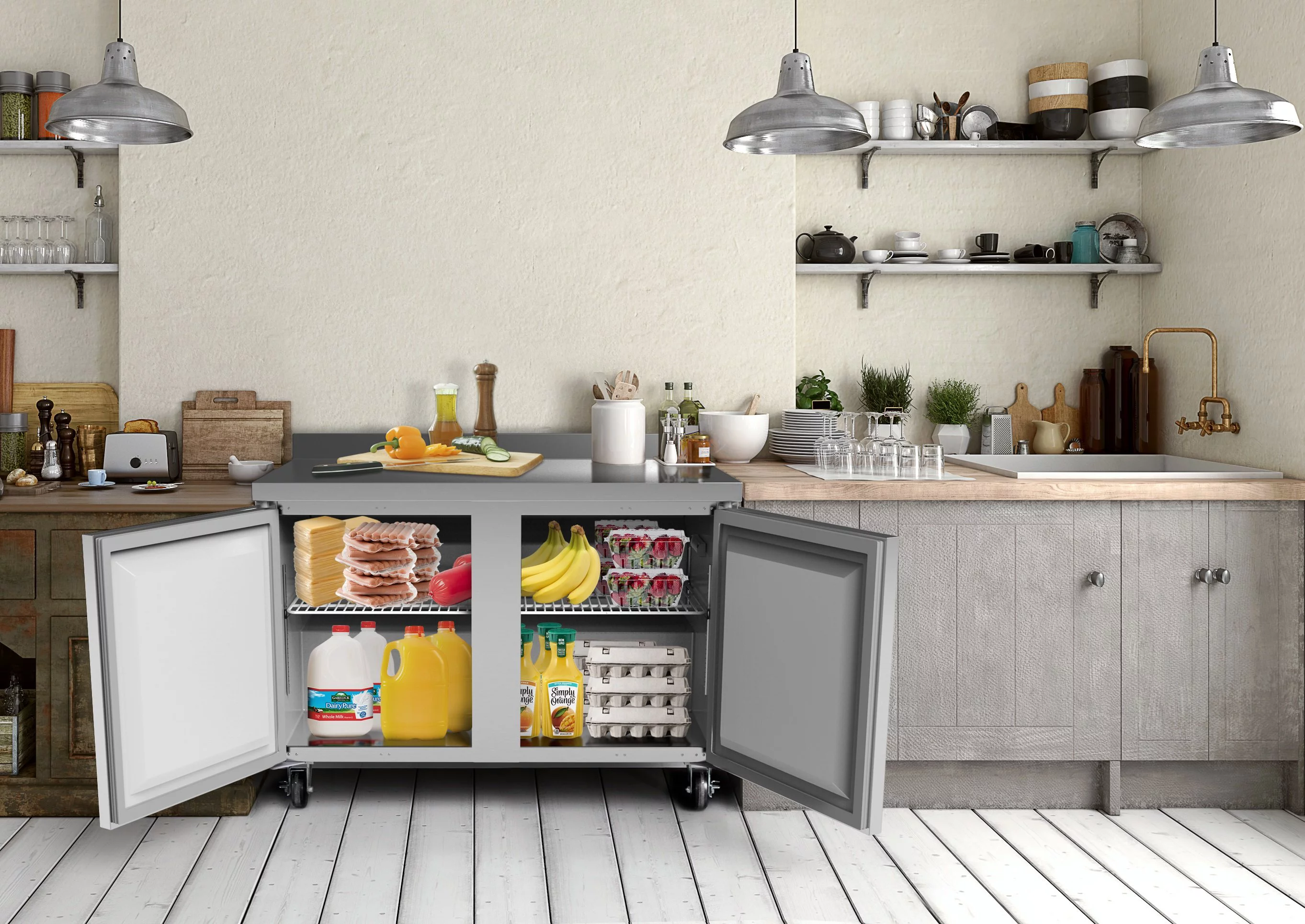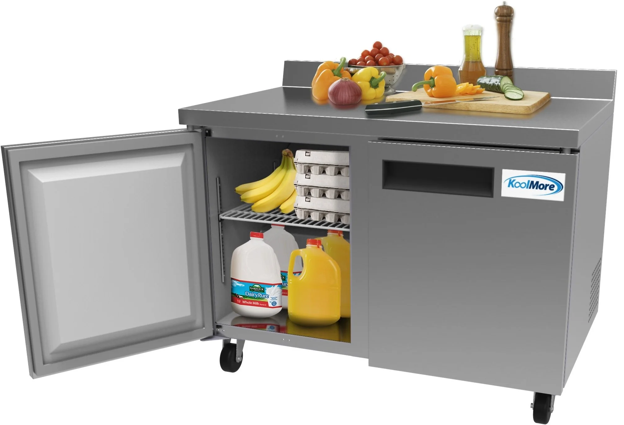 KoolMore 48 in. Two-Door Worktop Refrigerator With 3.5 in. Backsplash – 12 Cu. Ft.