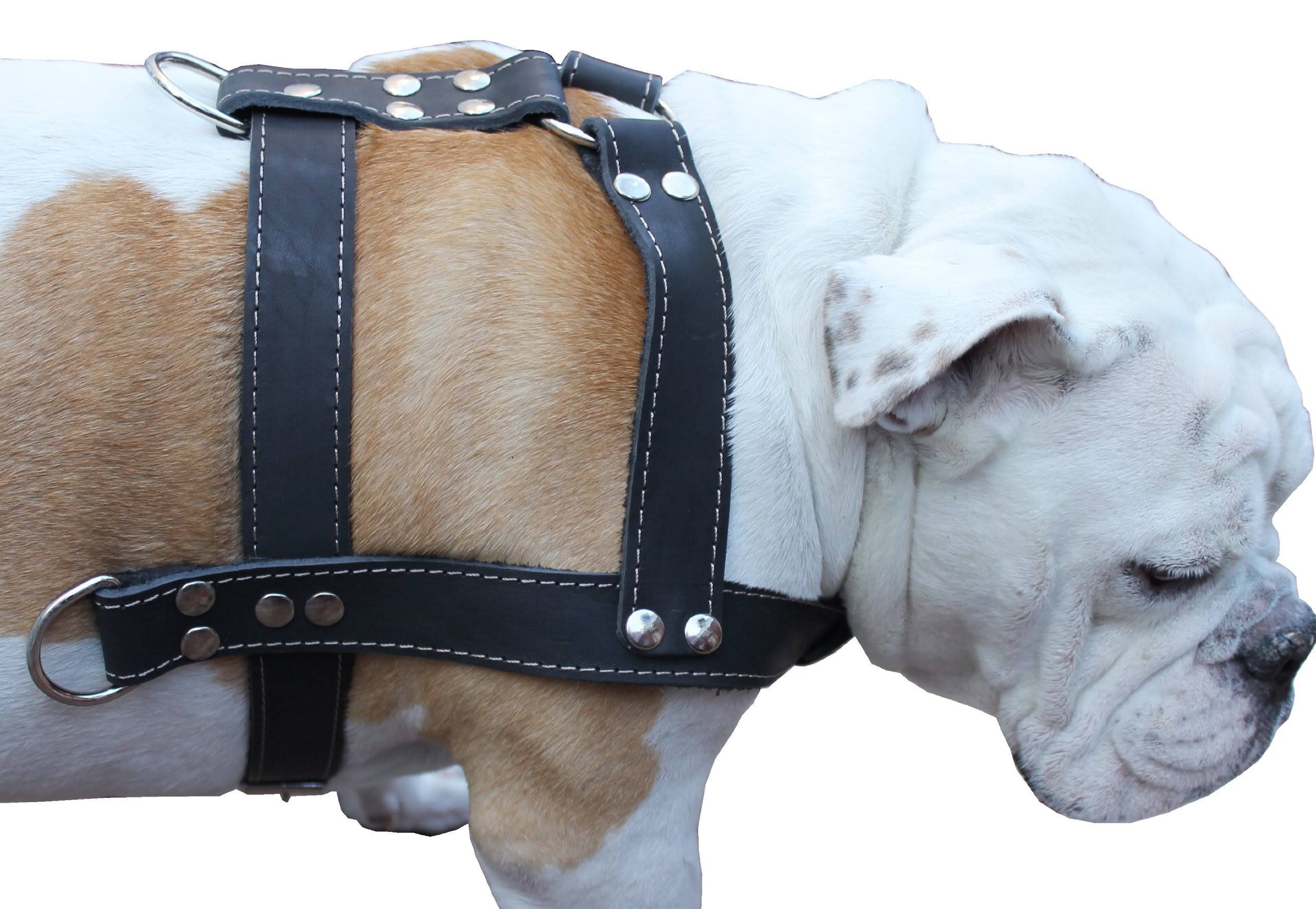 Black Genuine Leather Dog Pulling Harness 33"-37" Chest Size 1.5" Wide Straps, Cane Corso Rottweiler - Megean