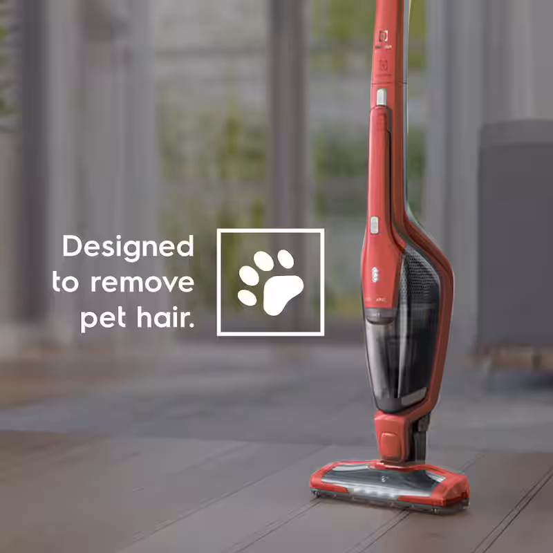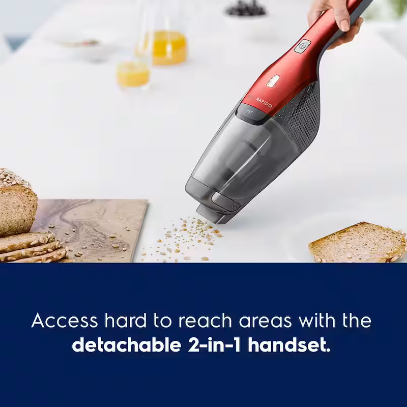 Ergorapido Pet Bagless, Cordless, with Detachable Handset in Red Stick Vacuum