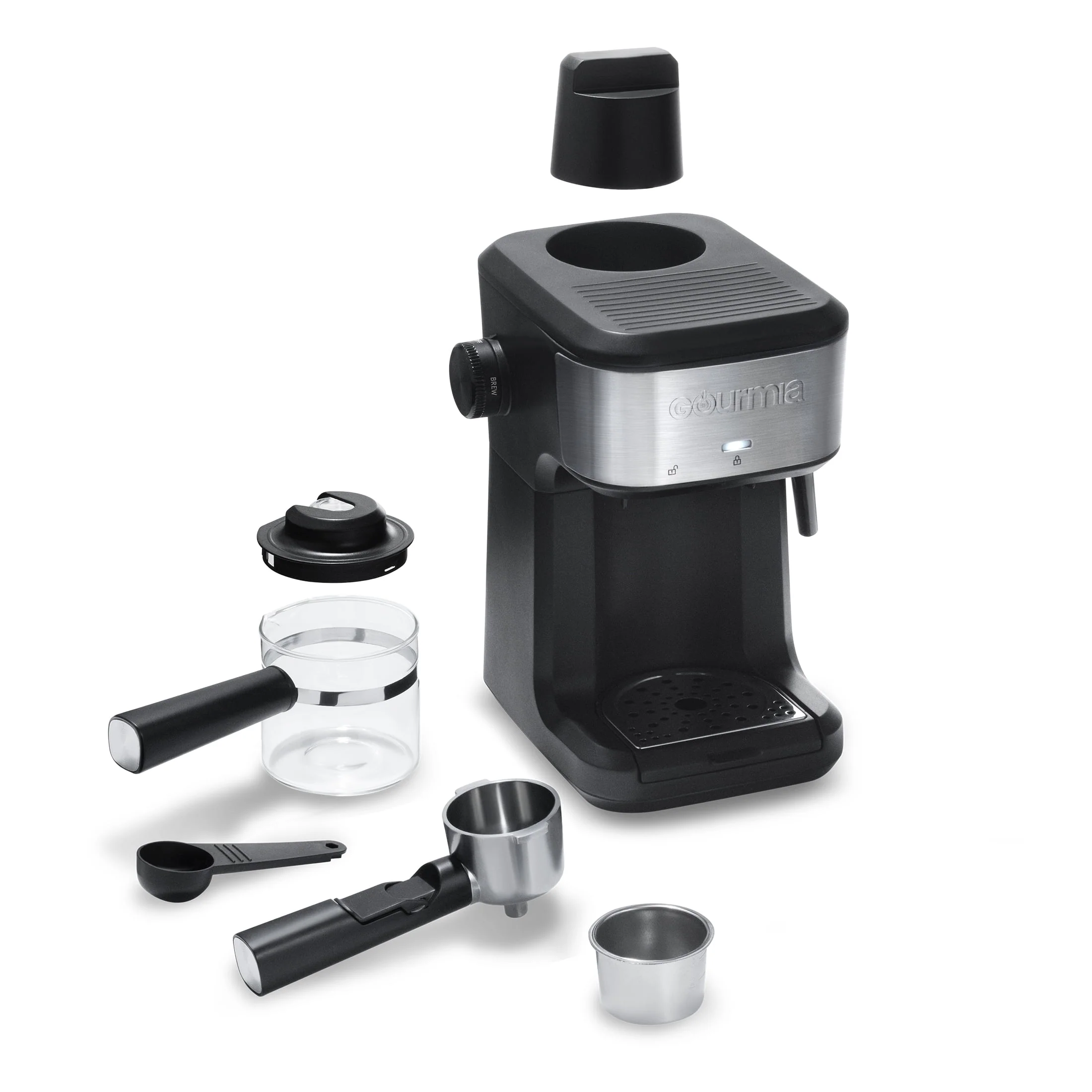 New Gourmia 4-Shot Steam Espresso, Cappuccino, and Latte Maker with Frothing Wand
