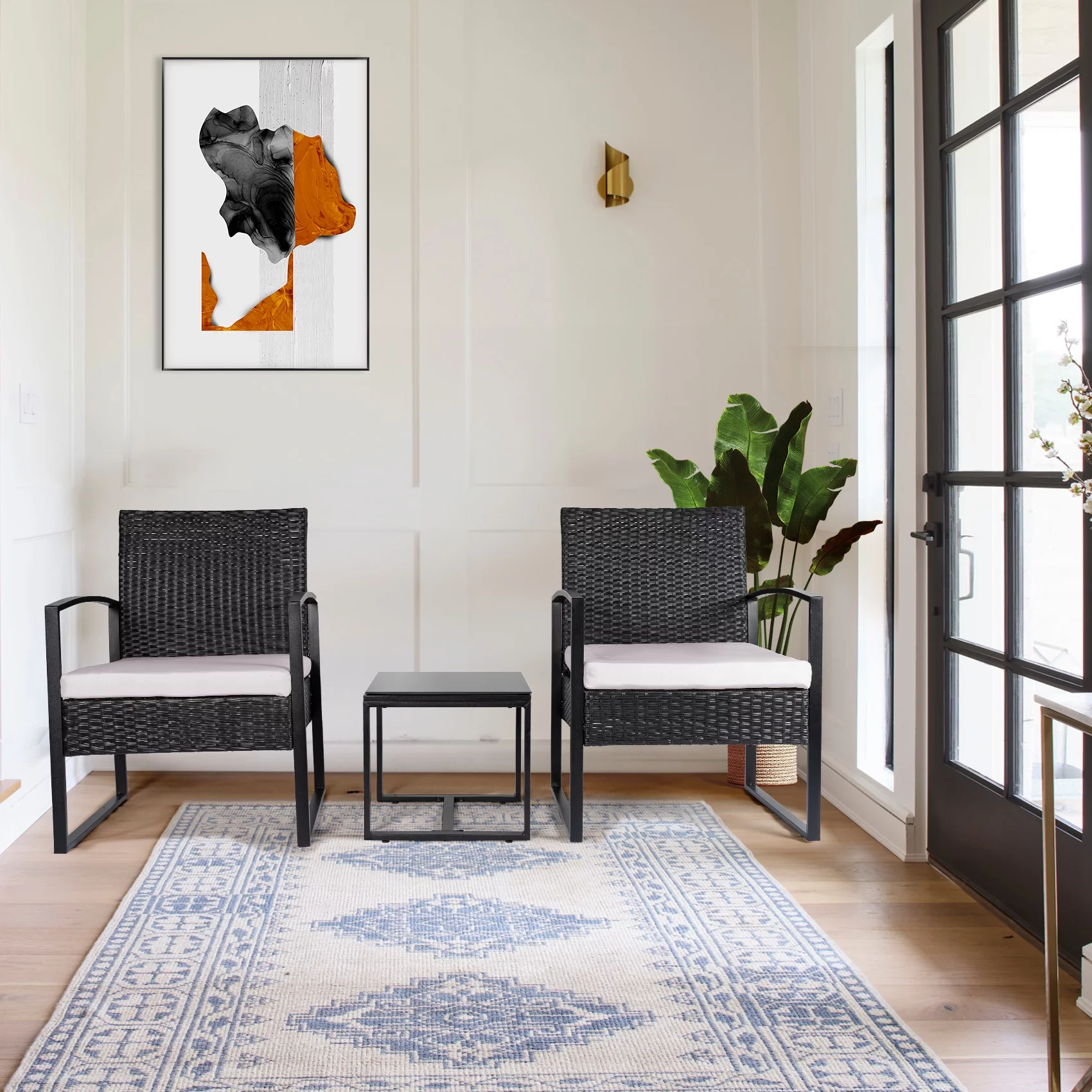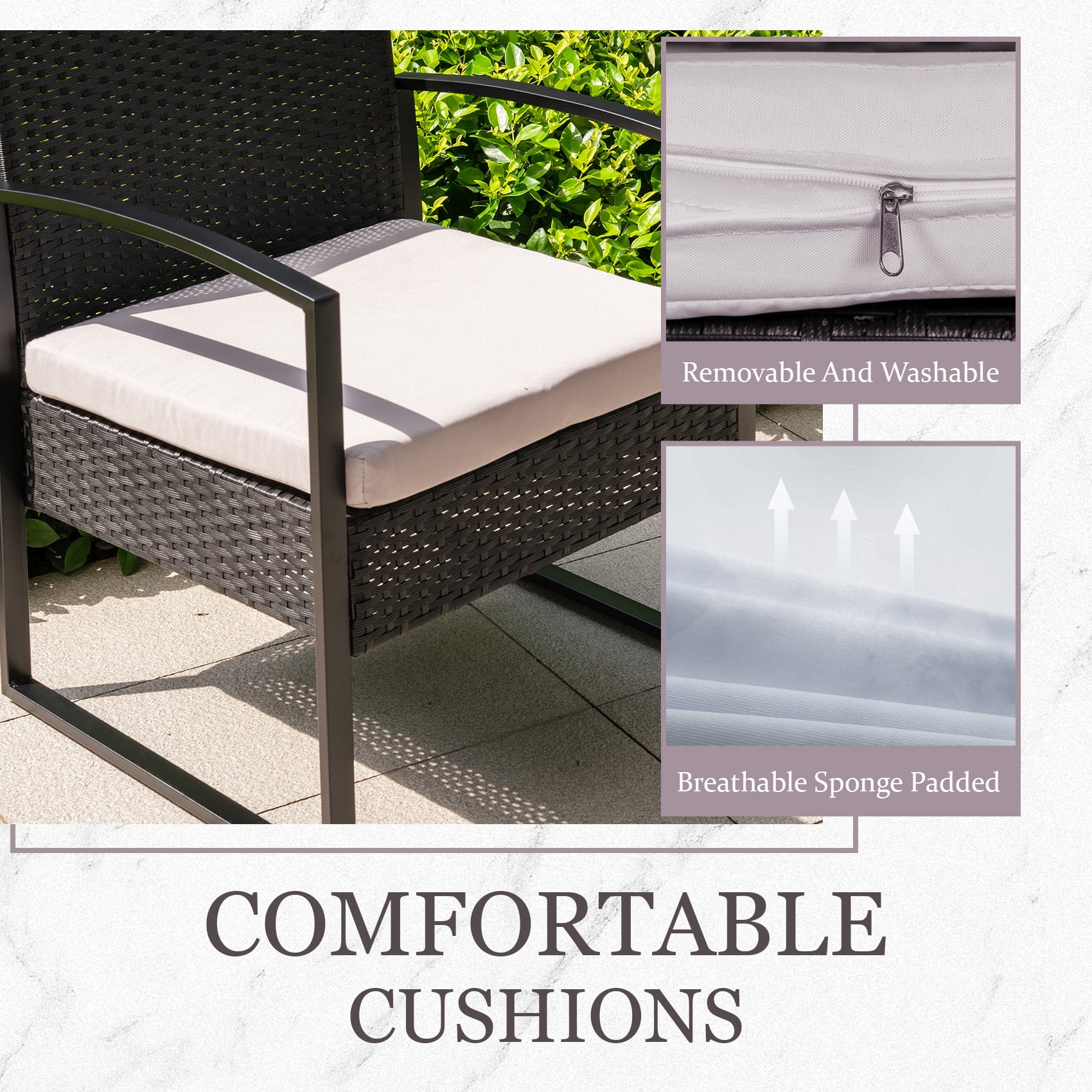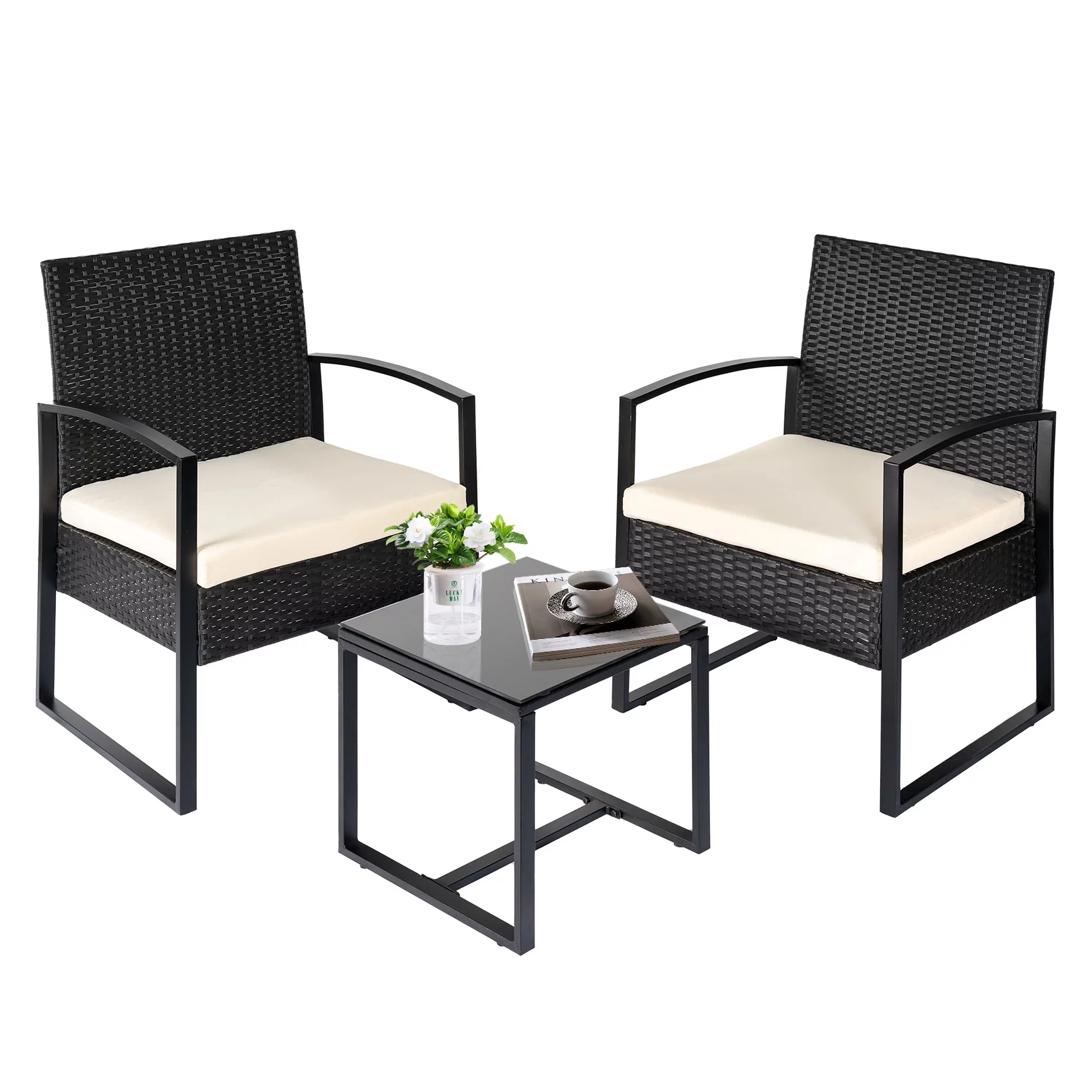 Tappio 3 Piece Patio Set Outdoor Chair Set with Glass Table, Rattan Conversation Sets for Yard and Bistro, Gray