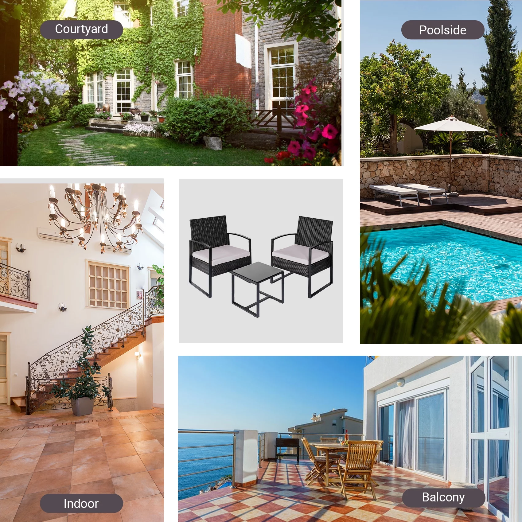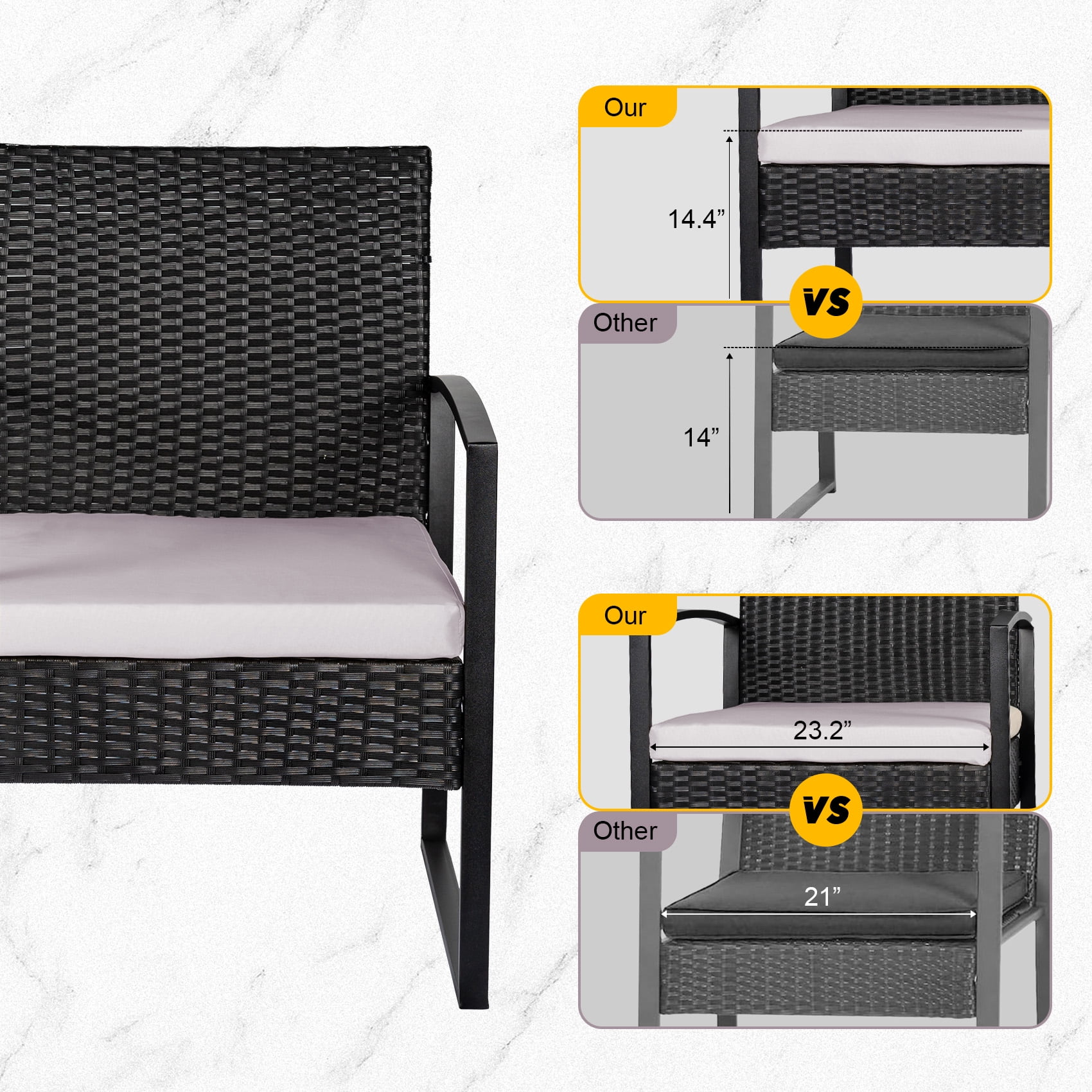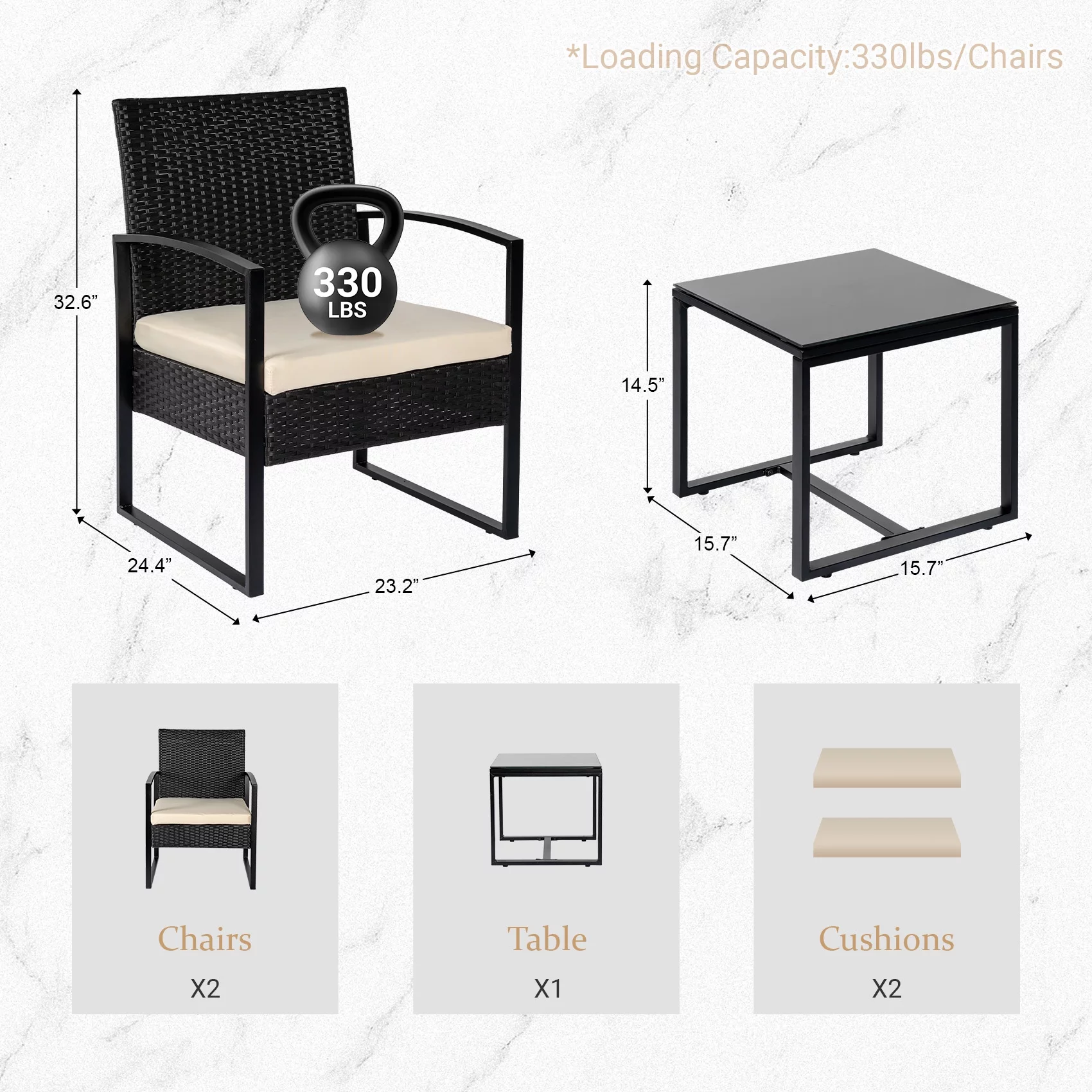 Tappio 3 Piece Patio Set Outdoor Chair Set with Glass Table, Rattan Conversation Sets for Yard and Bistro, Gray