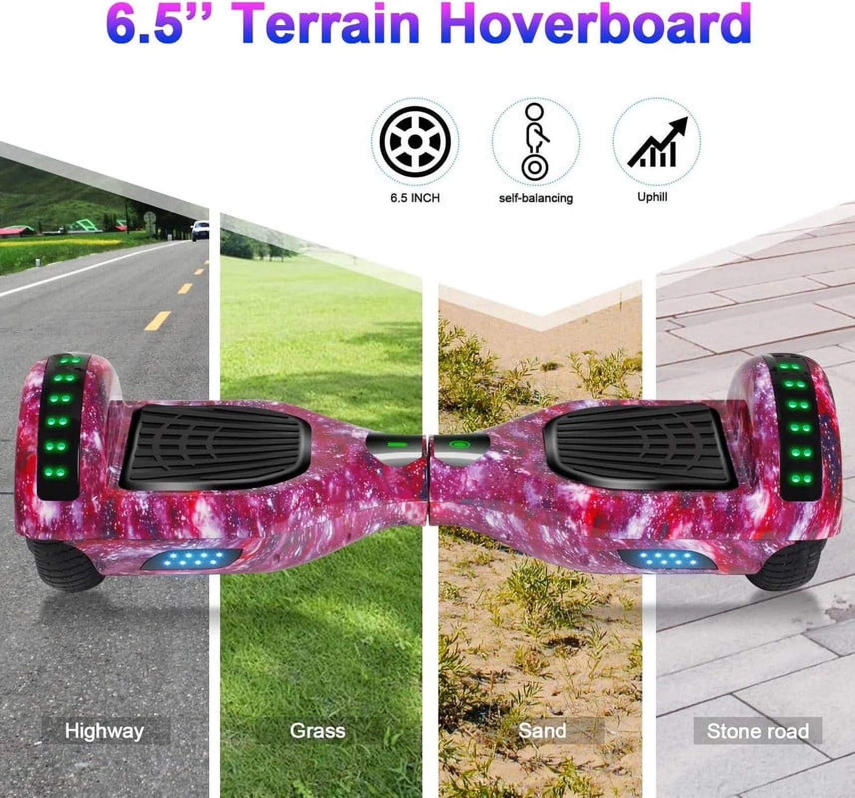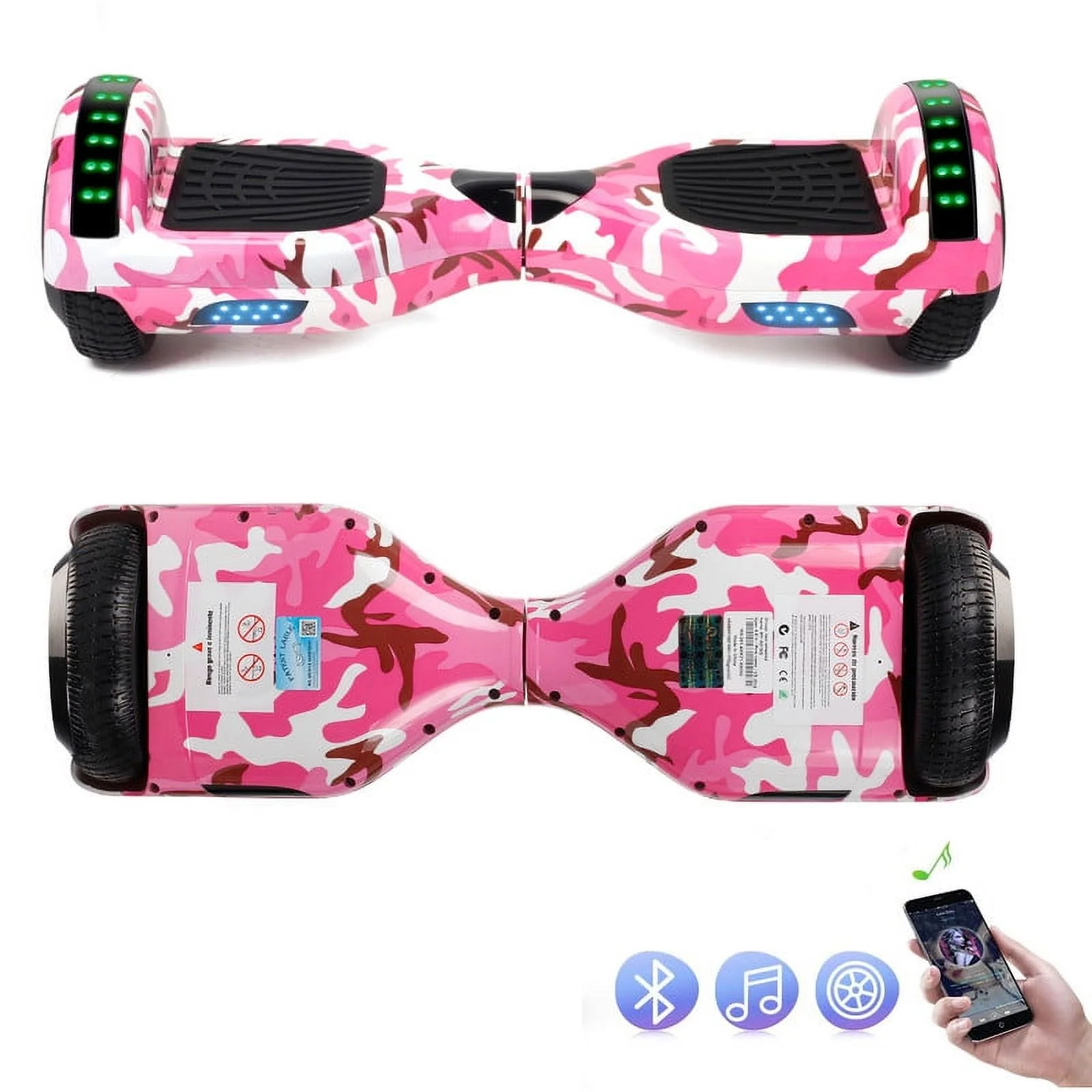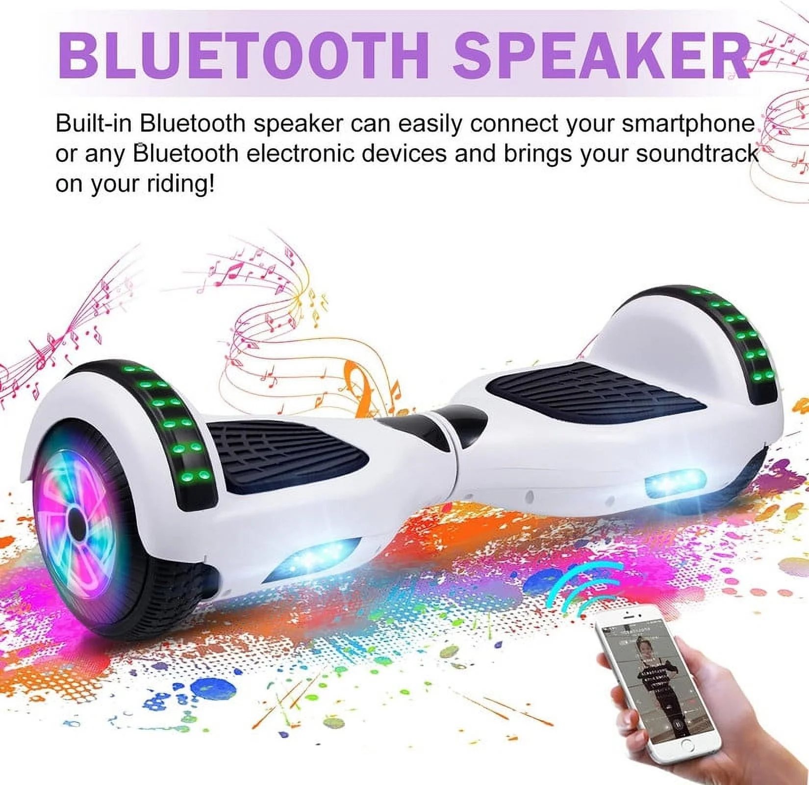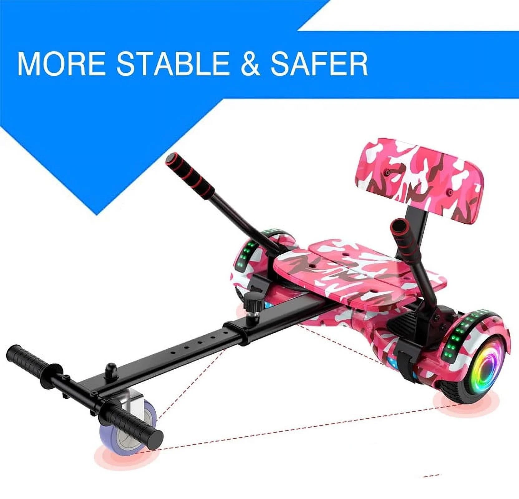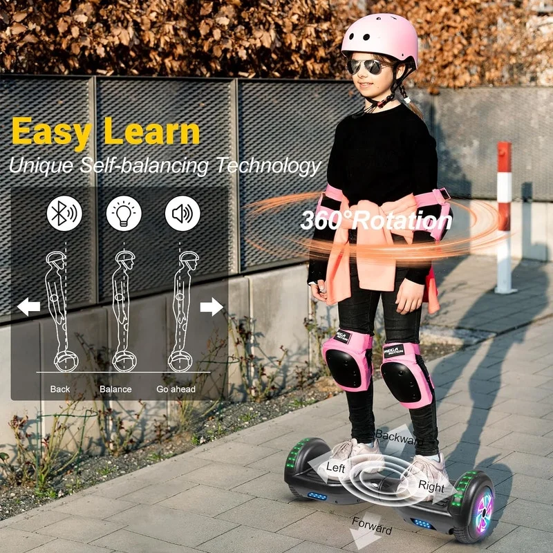 SISIGAD Off Road Hoverboard for Kids and Adults, 6.5 Flashing LED Wheels Self Balancing Scooter with Bluetooth Speaker, Pink