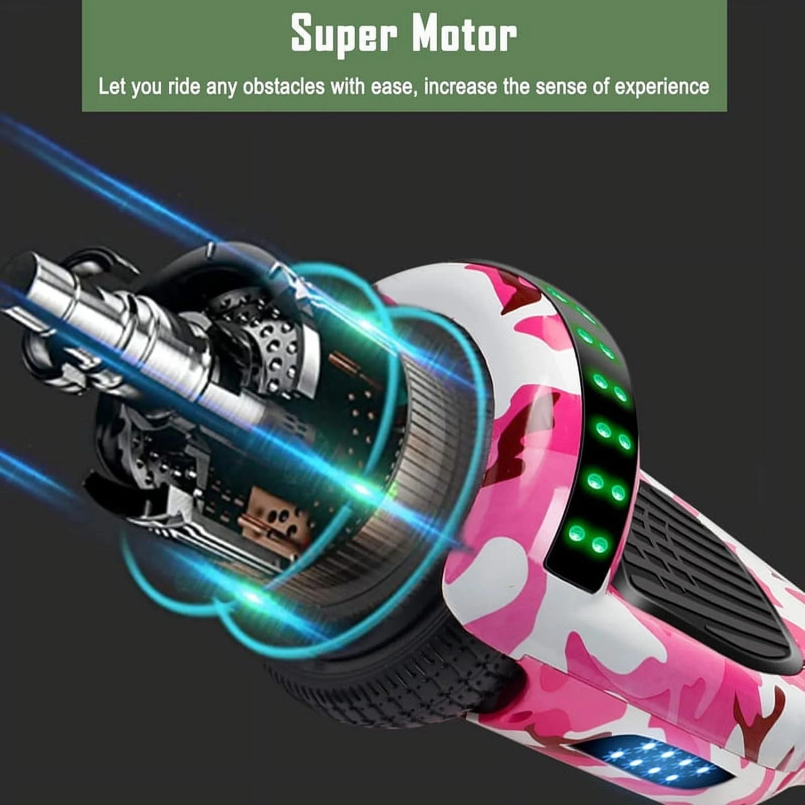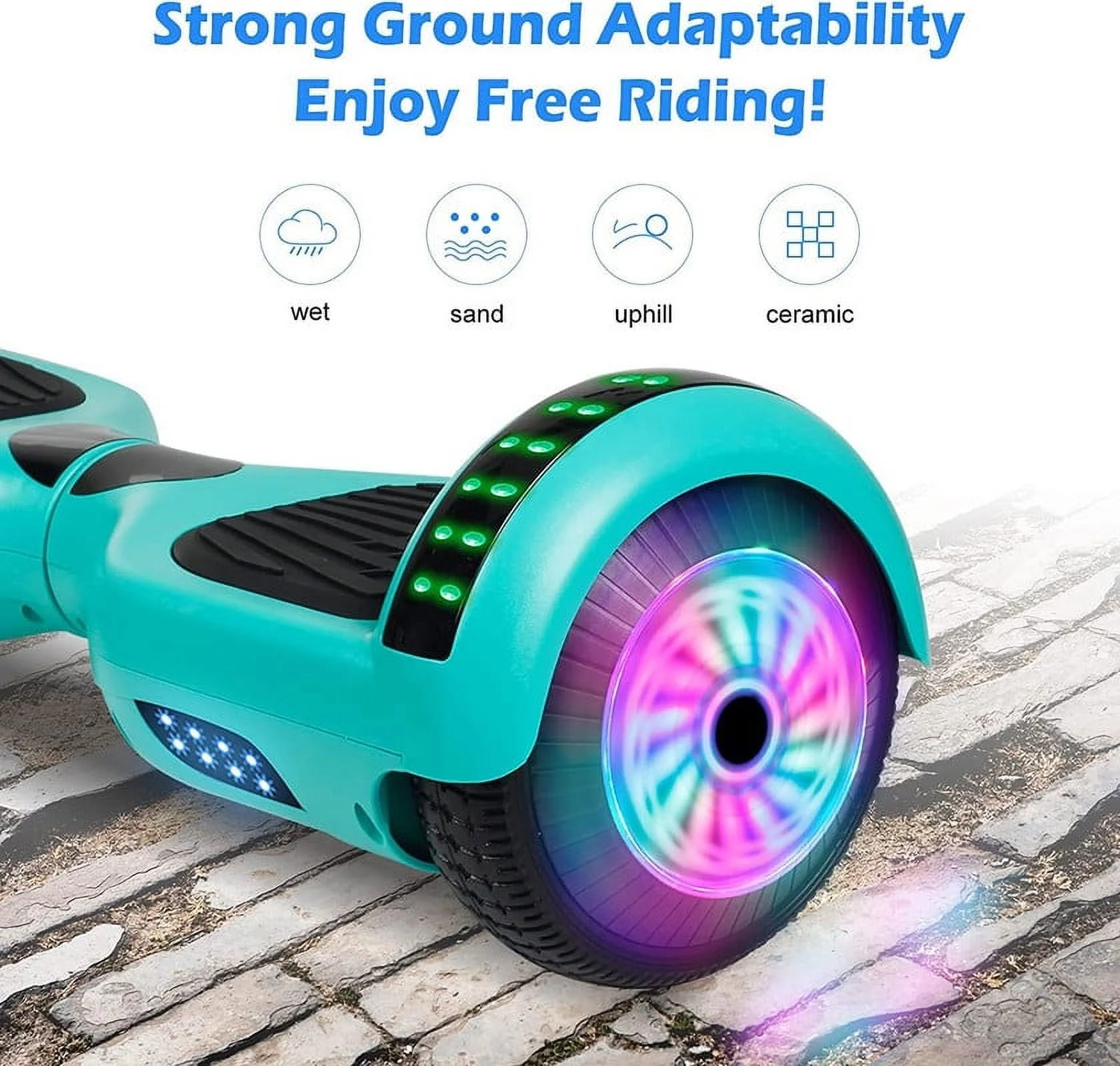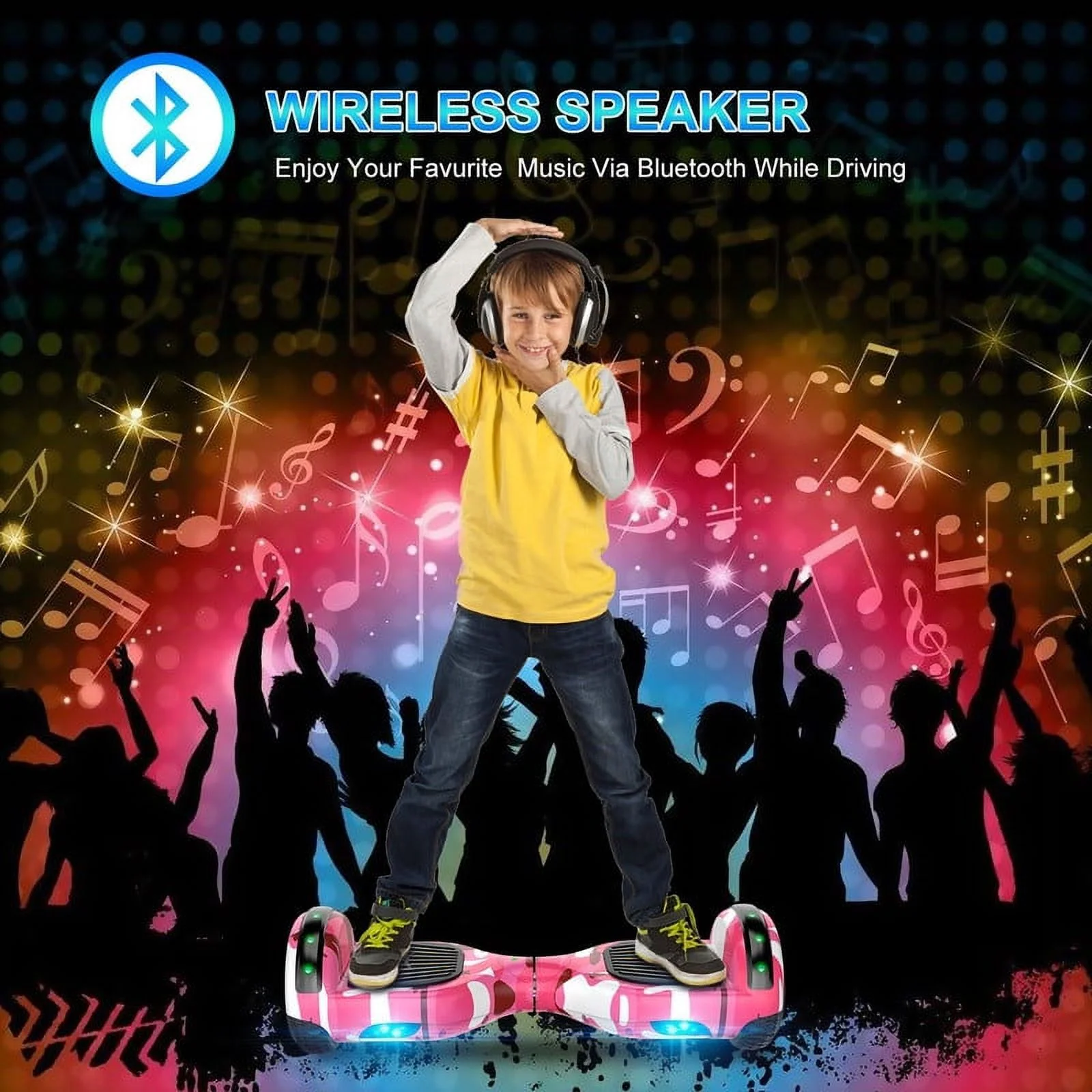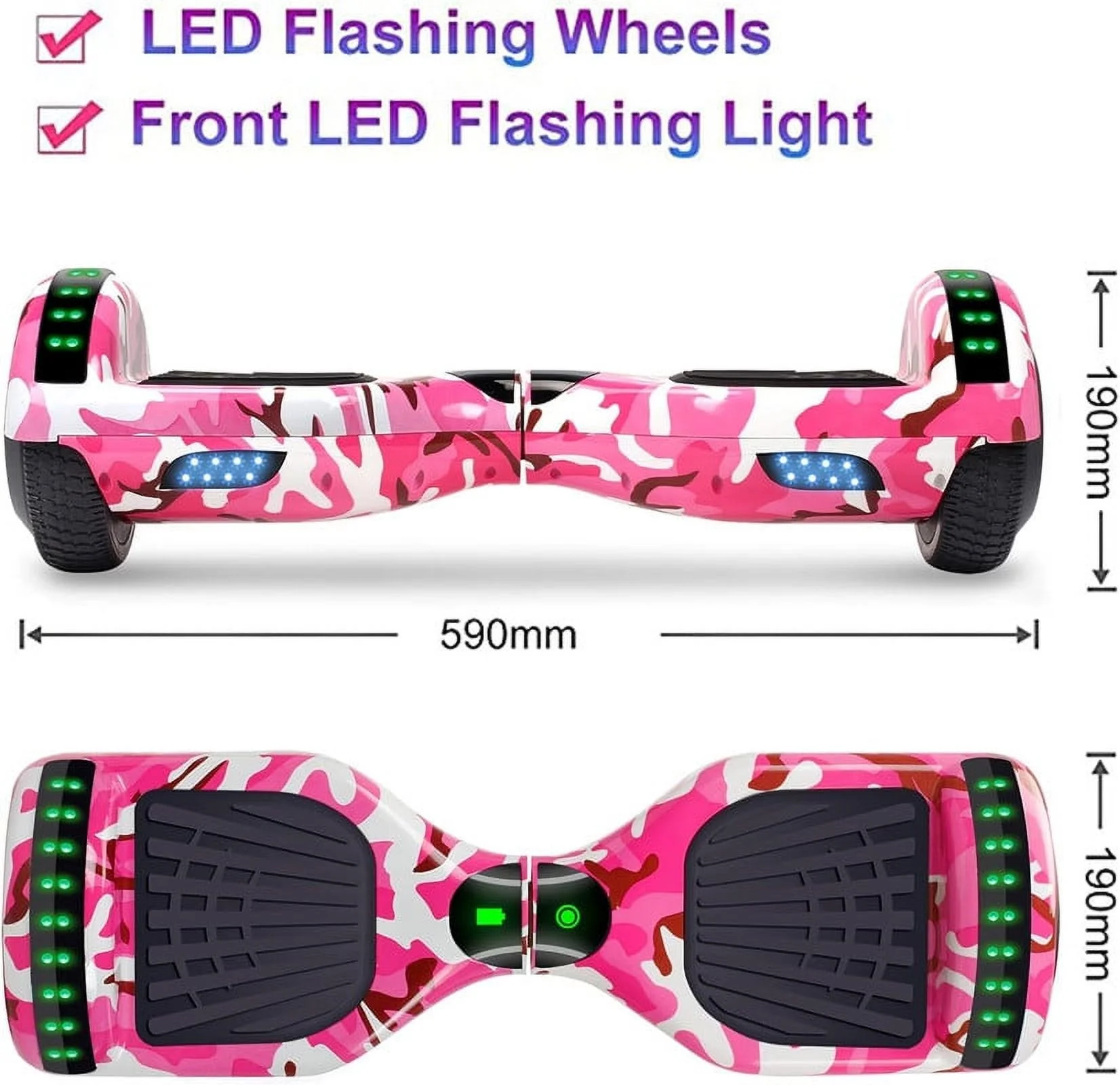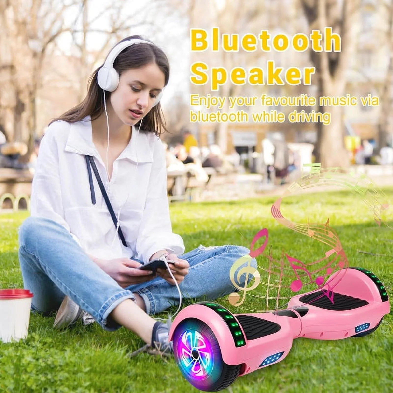 SISIGAD Off Road Hoverboard for Kids and Adults, 6.5 Flashing LED Wheels Self Balancing Scooter with Bluetooth Speaker, Pink