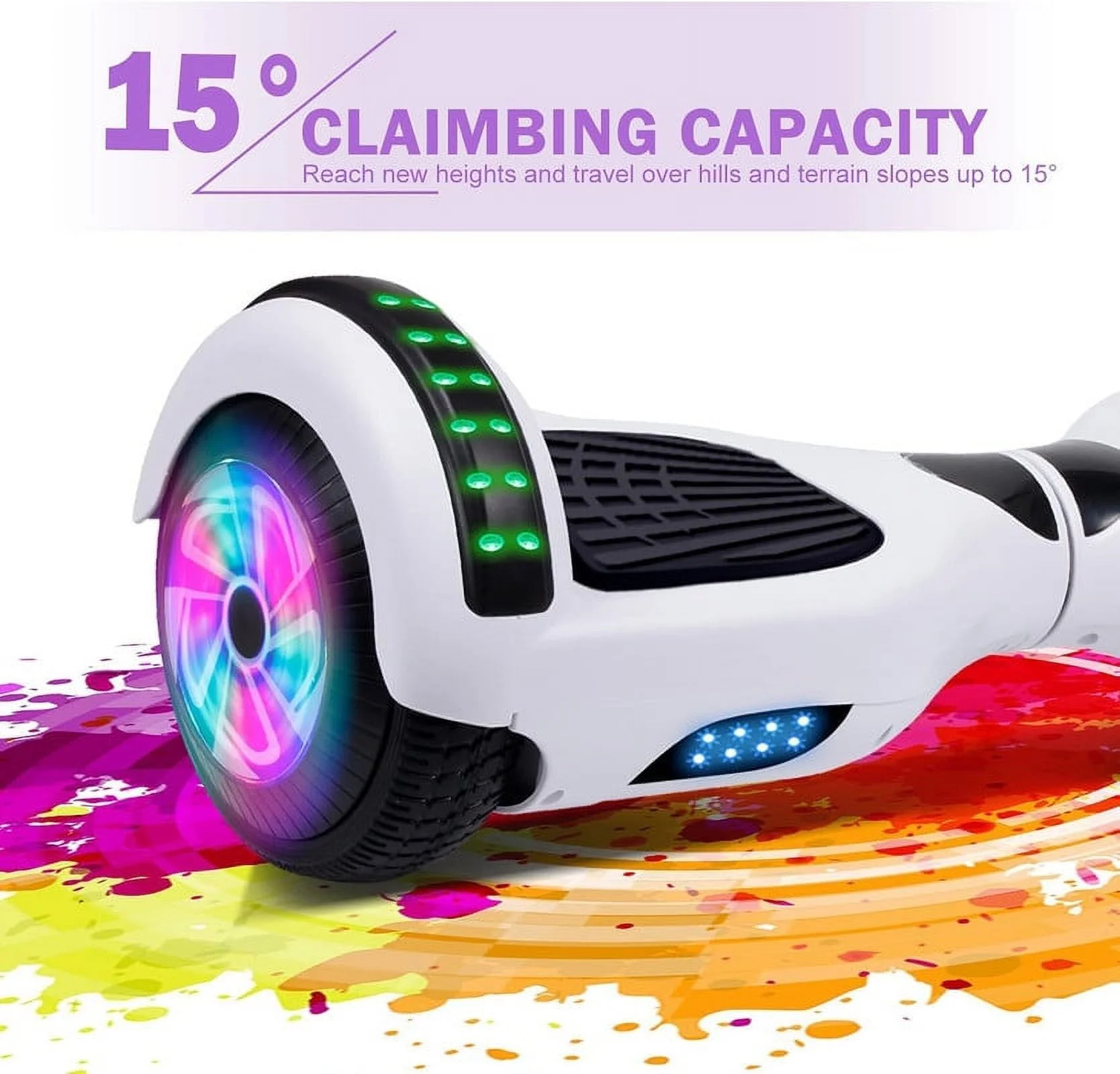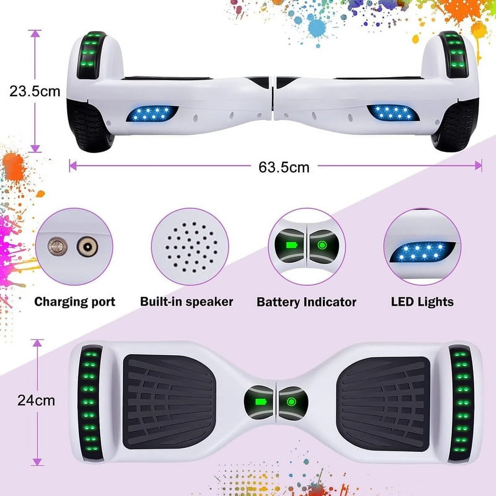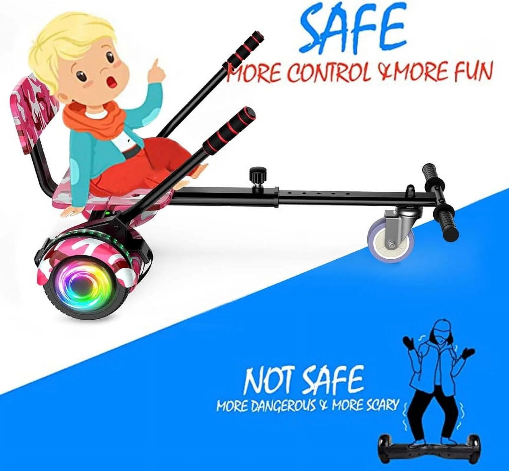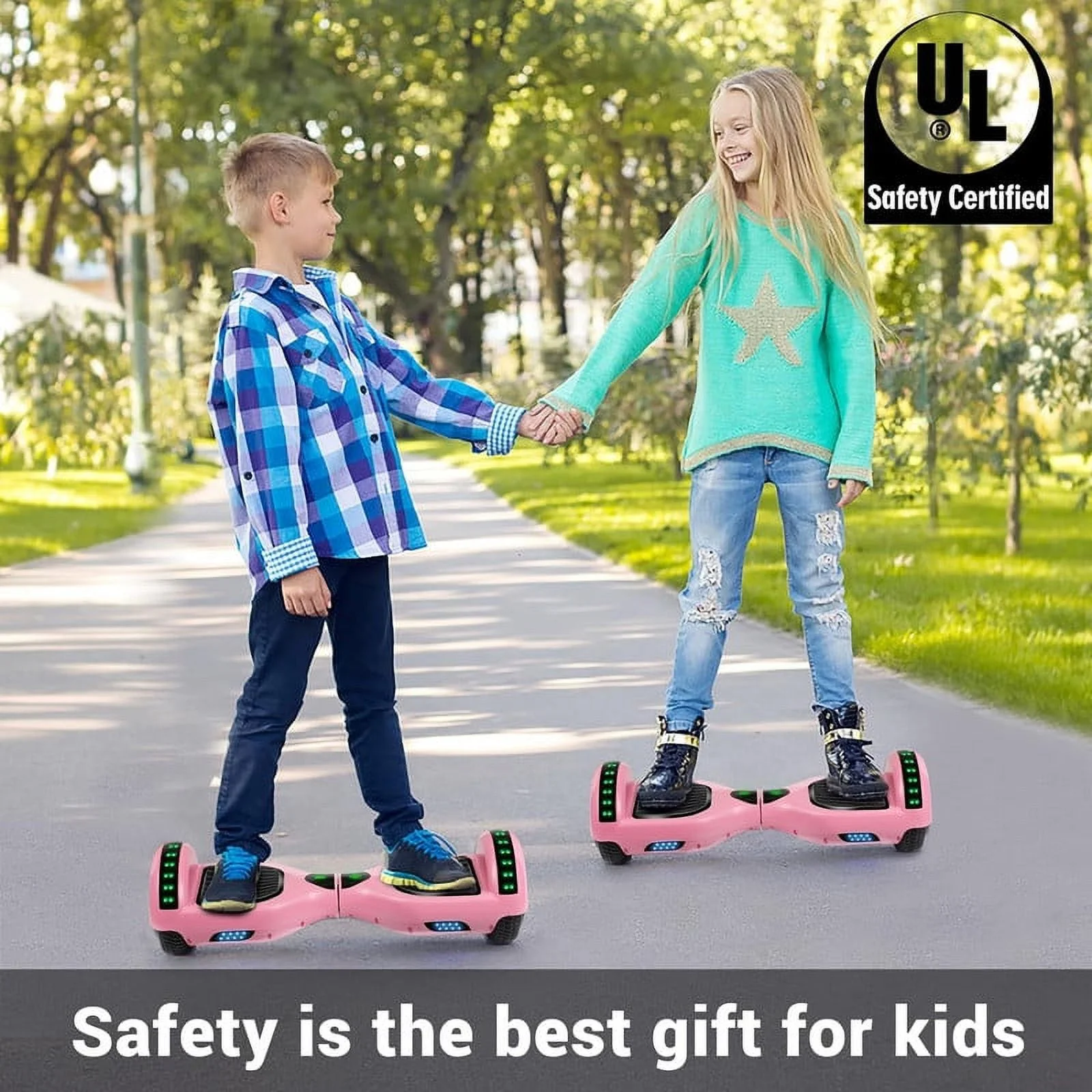 SISIGAD Off Road Hoverboard for Kids and Adults, 6.5 Flashing LED Wheels Self Balancing Scooter with Bluetooth Speaker, Pink