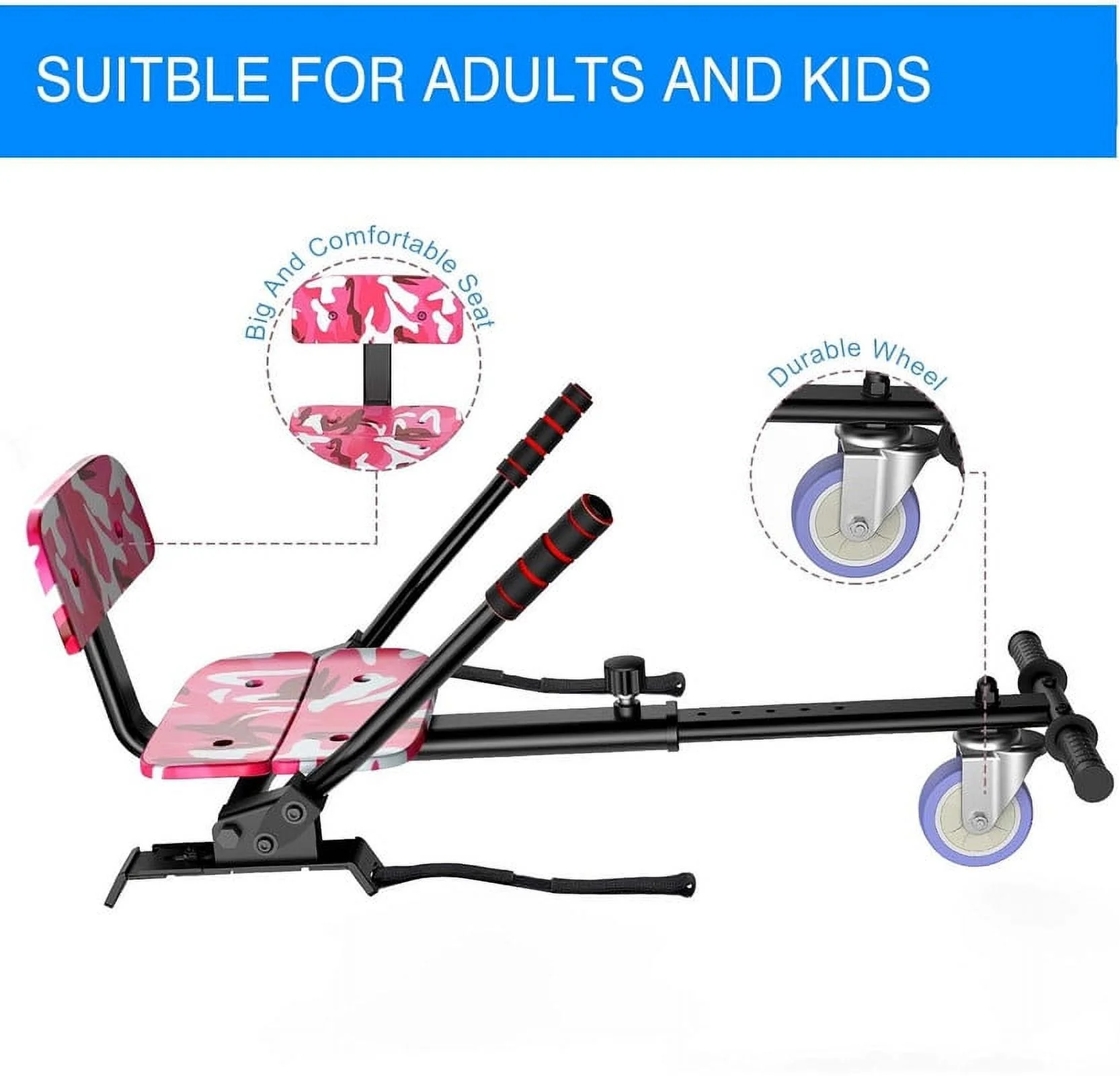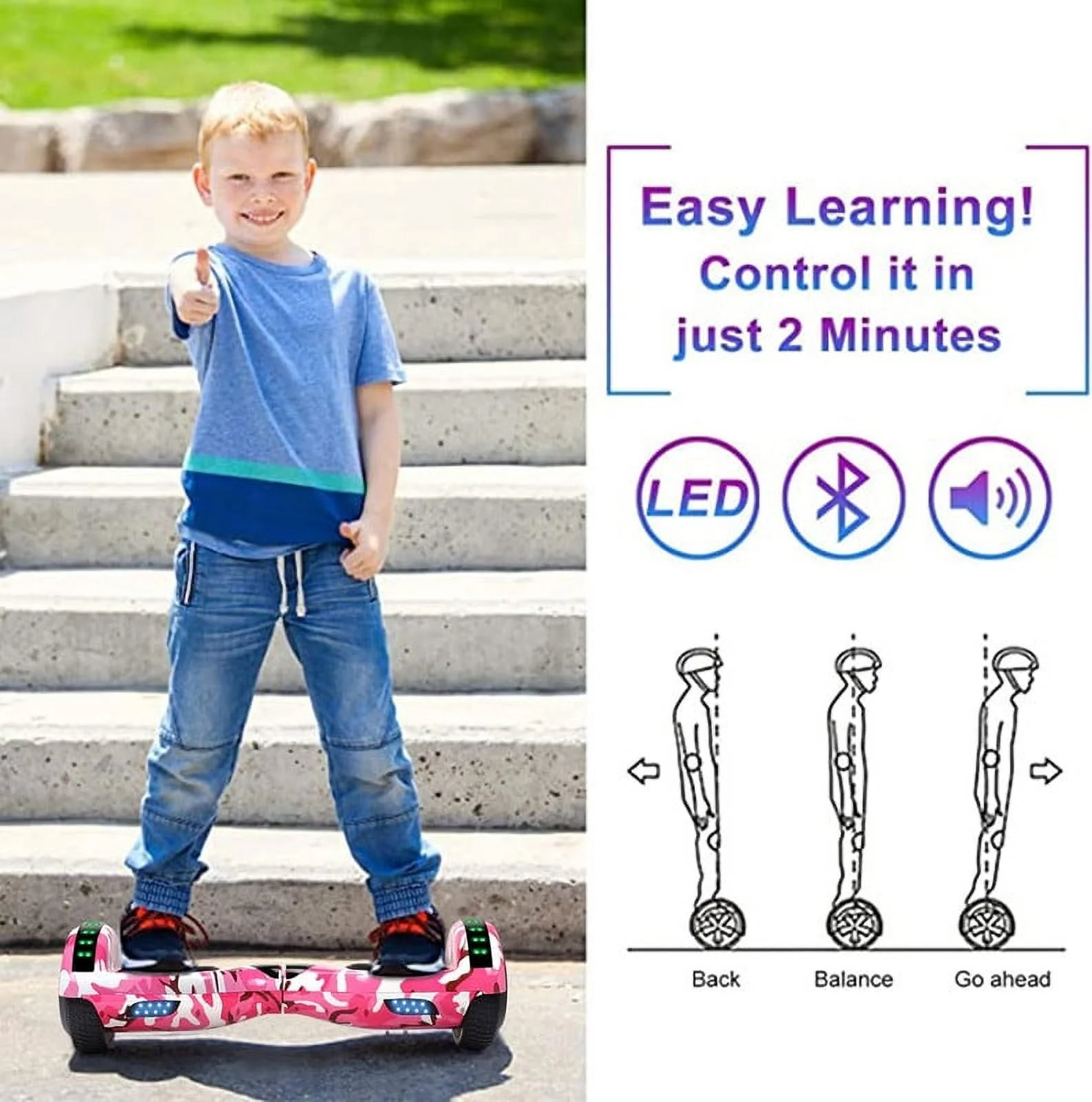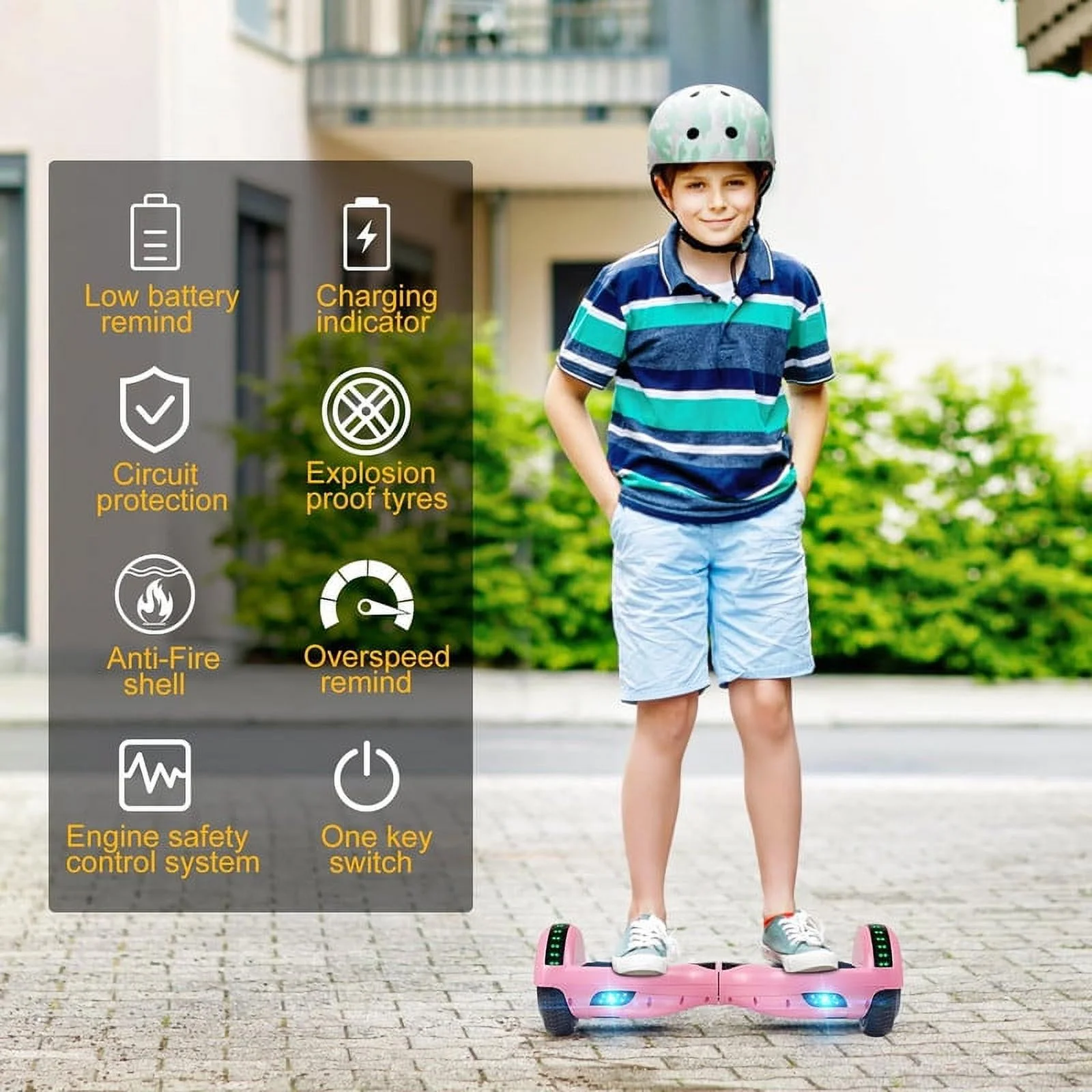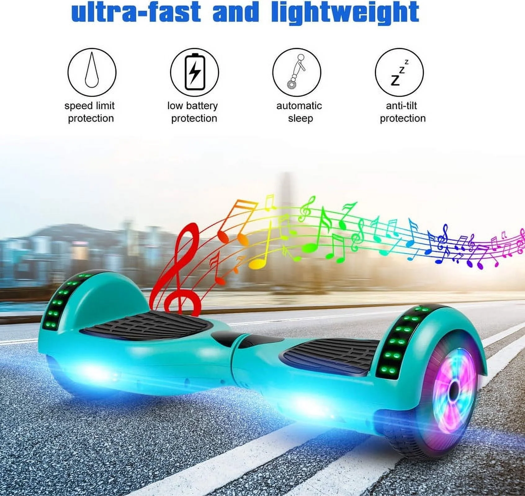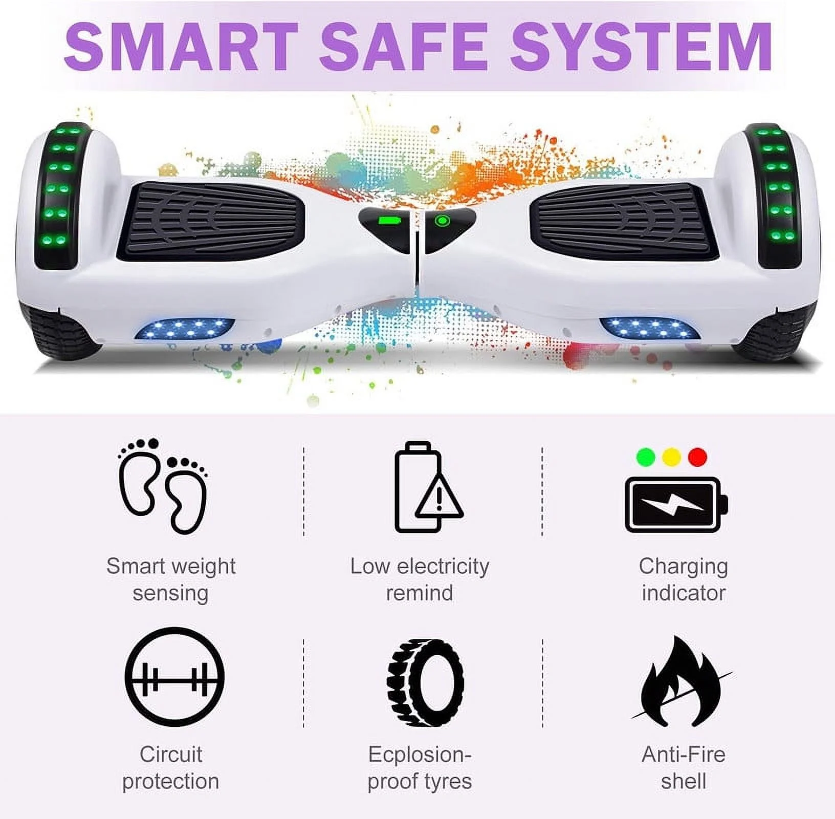 SISIGAD Off Road Hoverboard for Kids and Adults, 6.5 Flashing LED Wheels Self Balancing Scooter with Bluetooth Speaker, Pink
