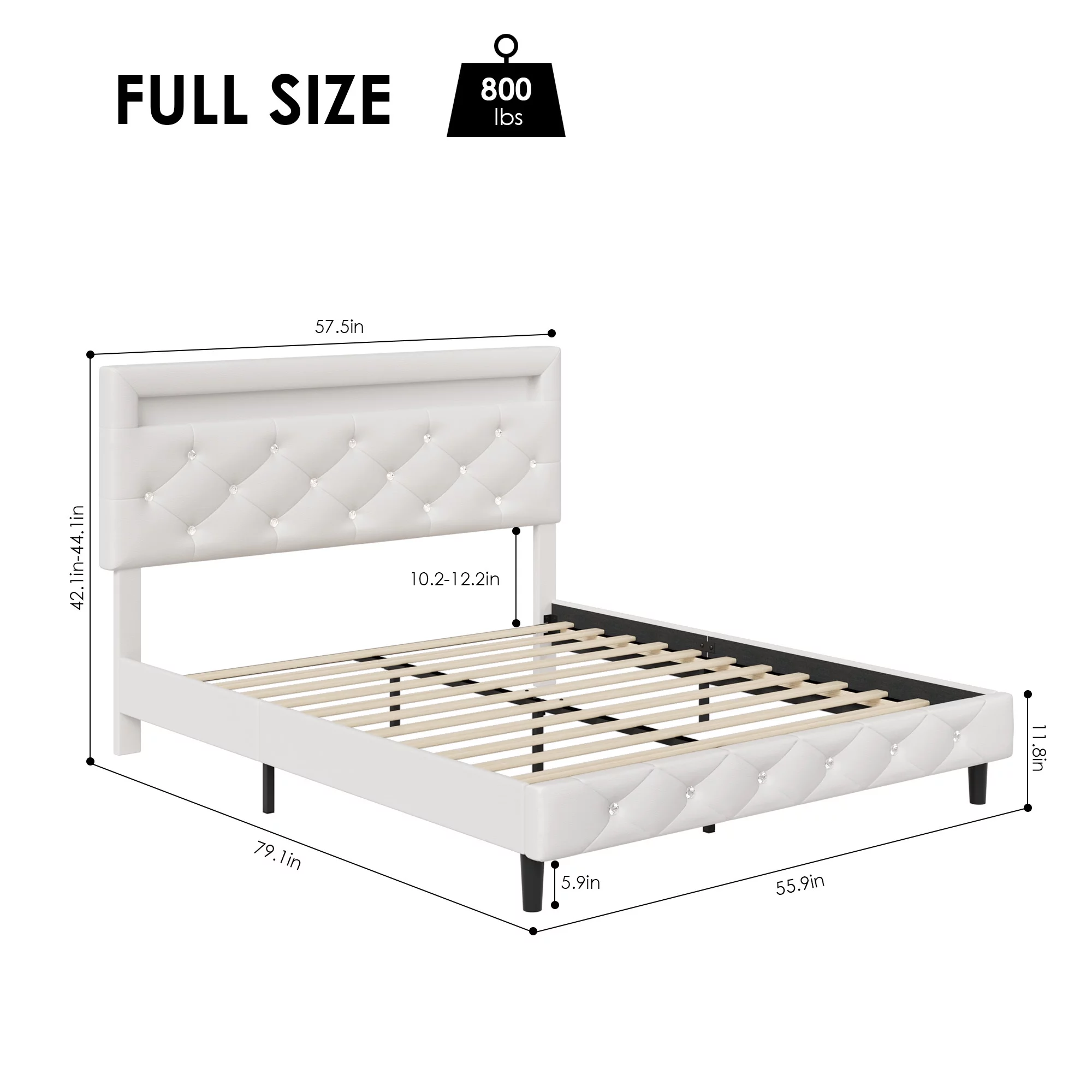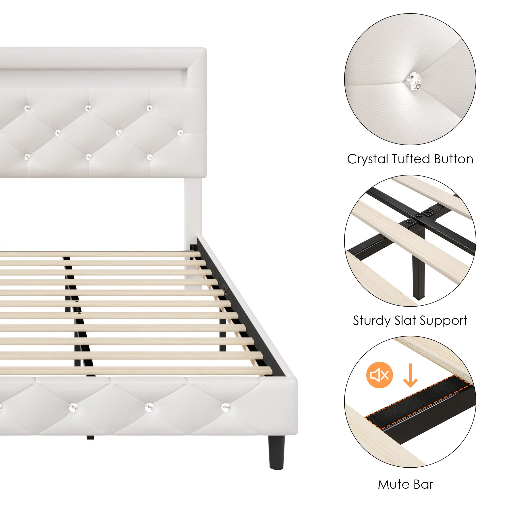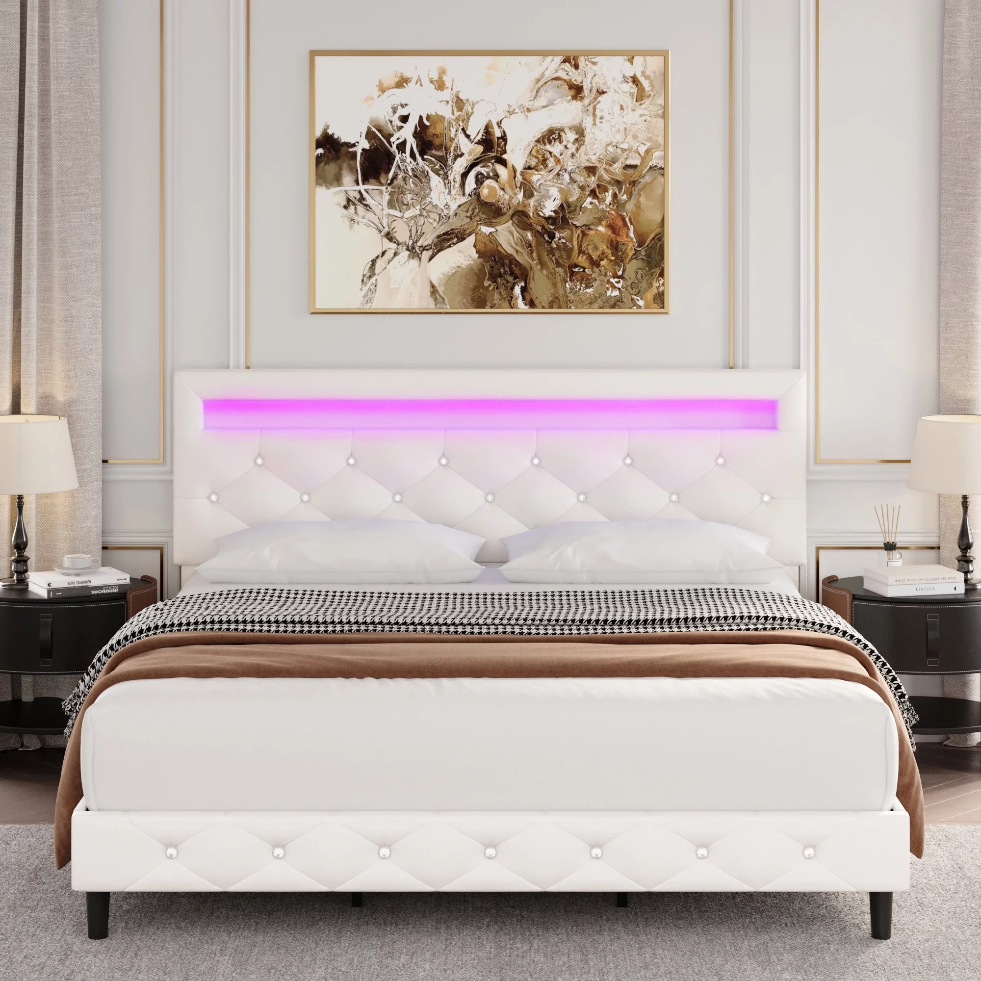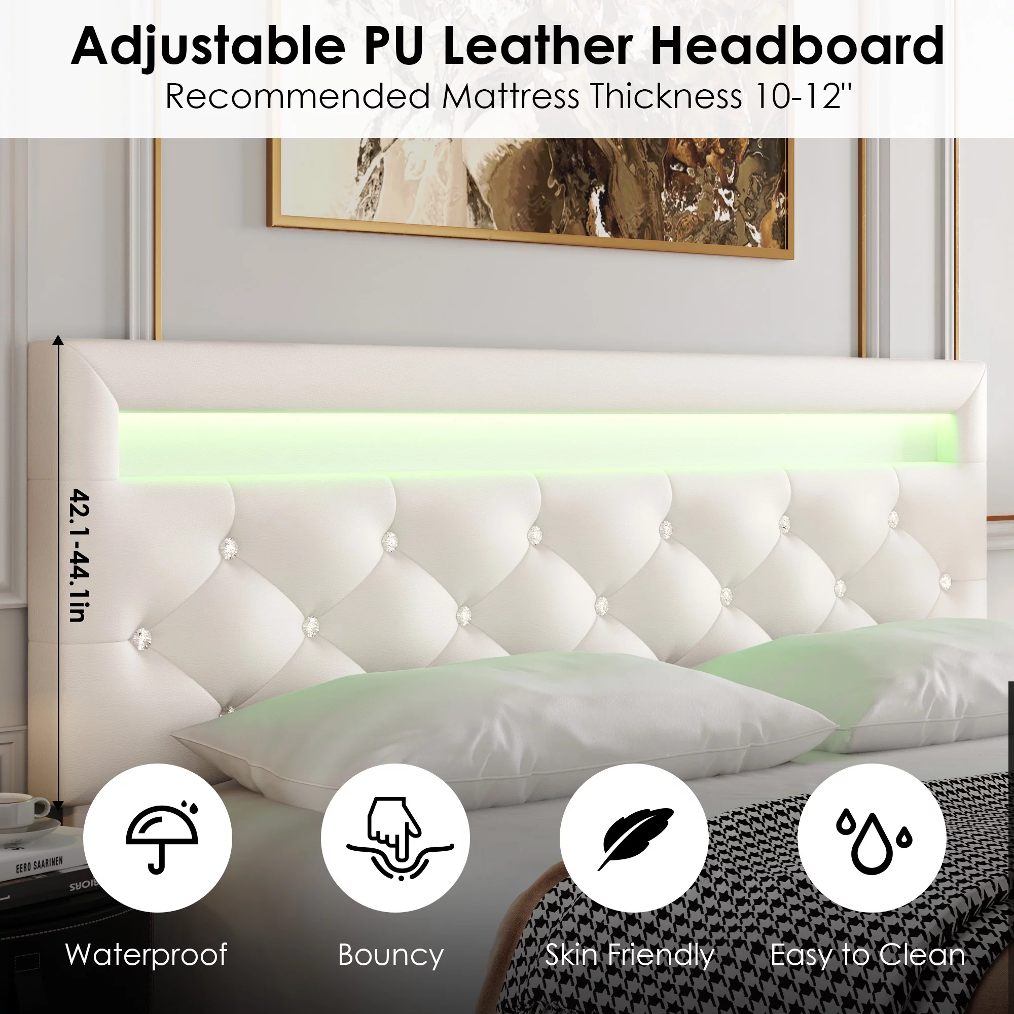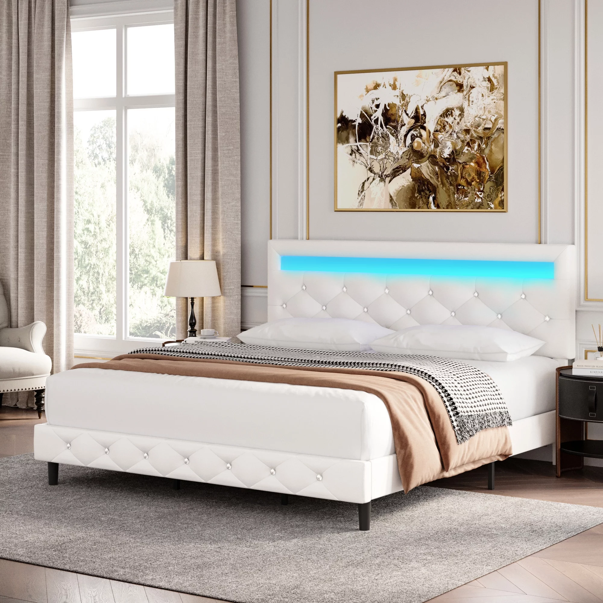 Homfa Queen Size LED Bed, PU Crystal Buckle Upholstered Platform Bed Frame with Adjustable Headboard, Black