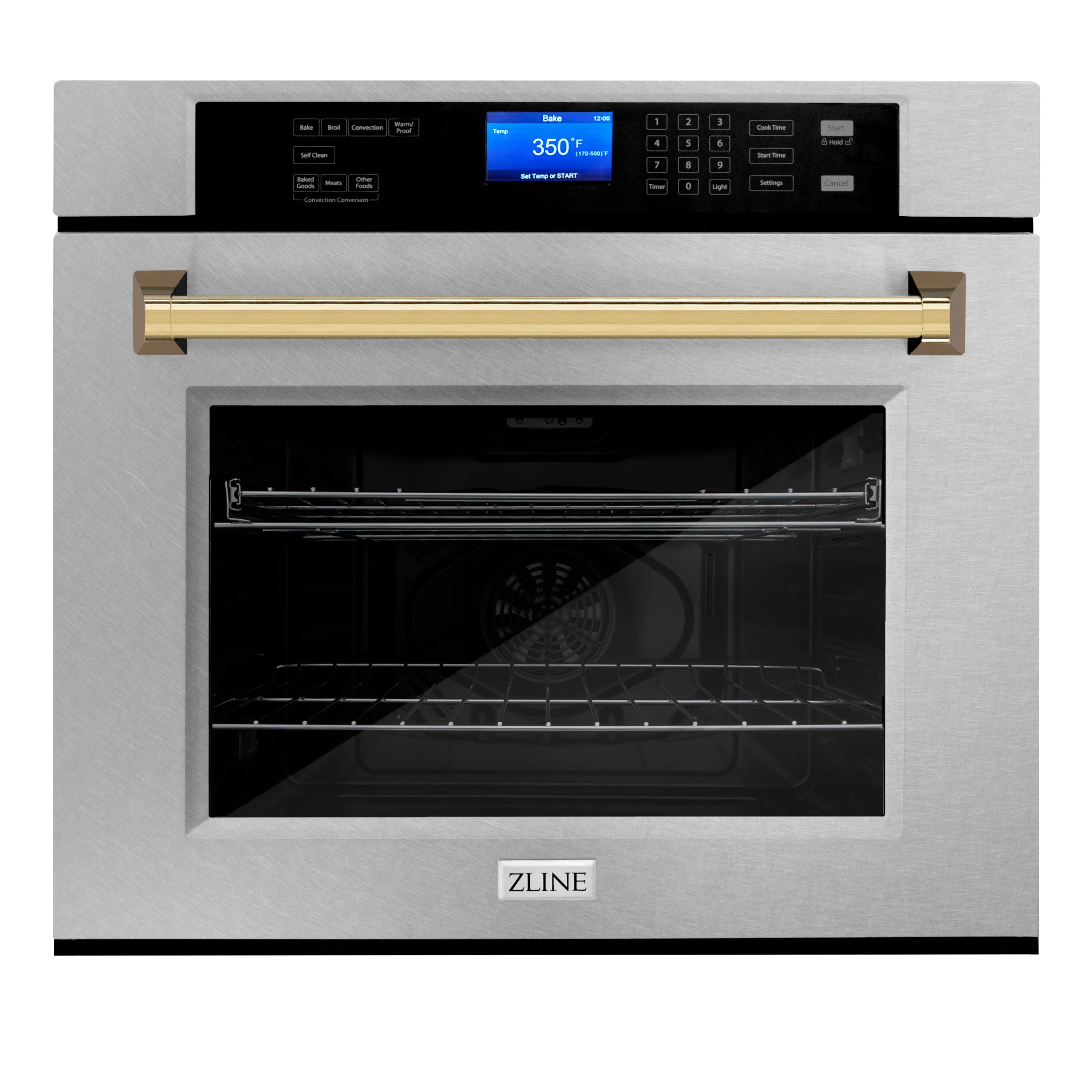 ZLINE 30 In. Autograph Edition Single Wall Oven with Self Clean and True Convection in DuraSnow® Stainless Steel and Gold, AWSSZ-30-G