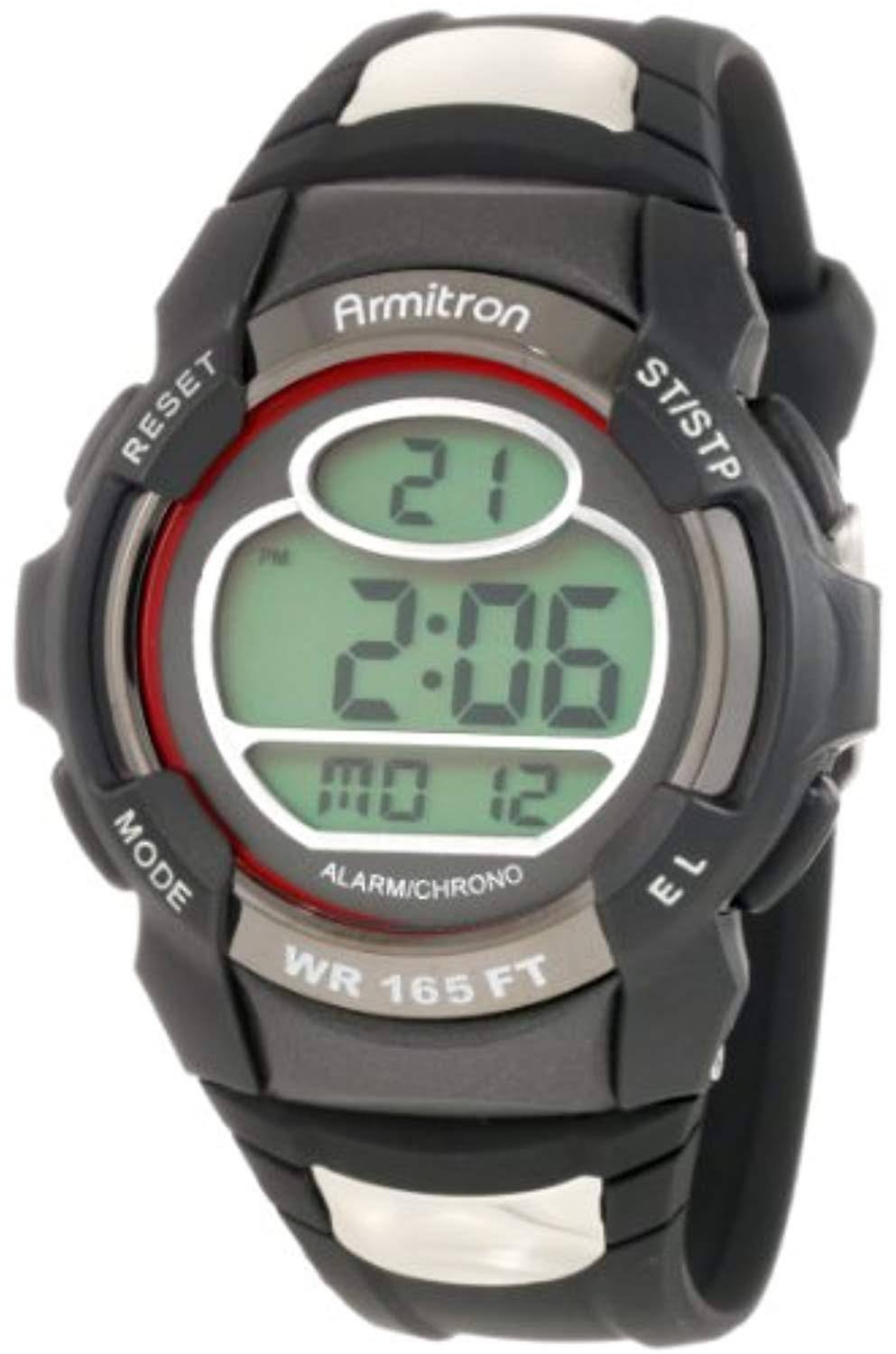 Armitron Sport Mens 408089red Chronograph Round Black and Red Digital - Megean