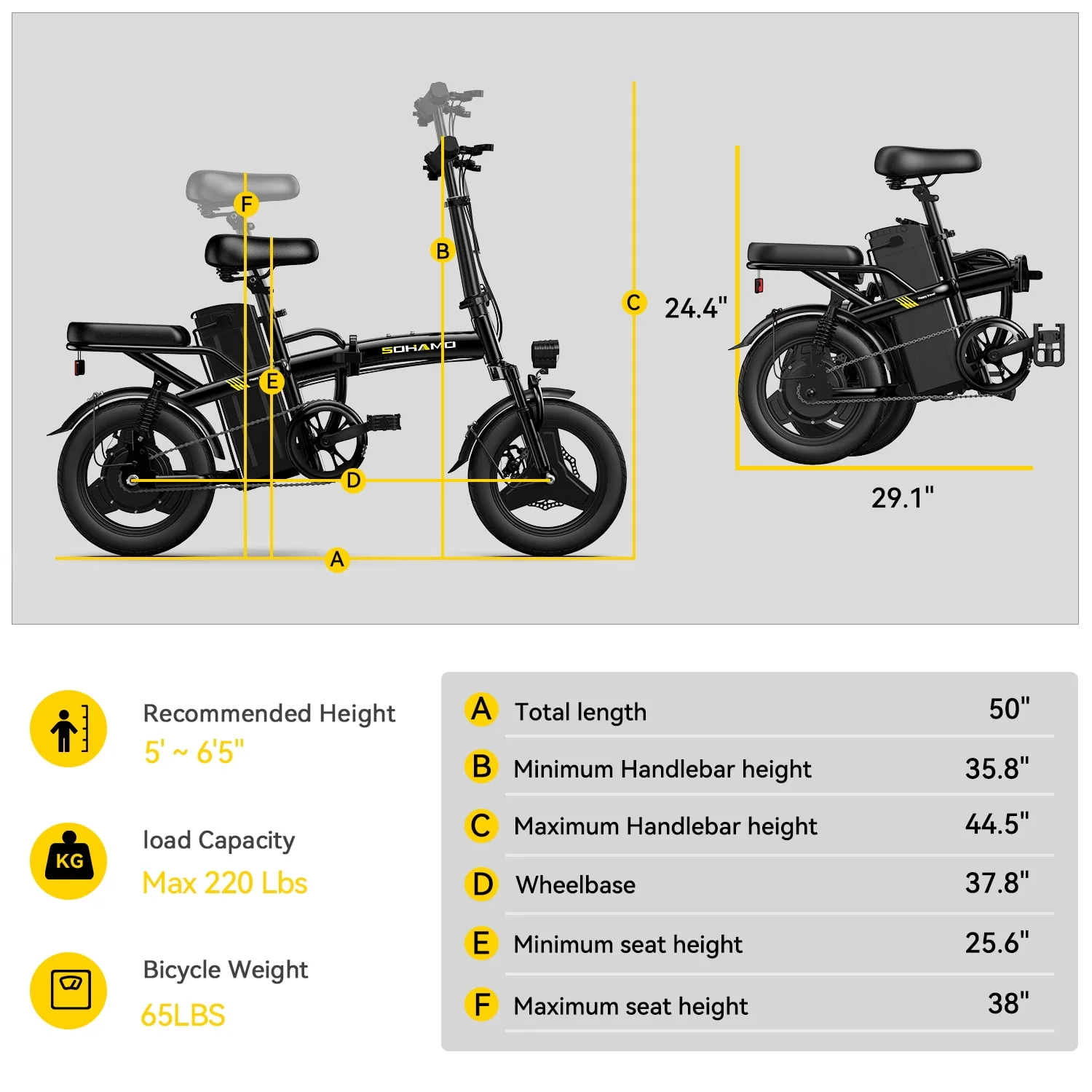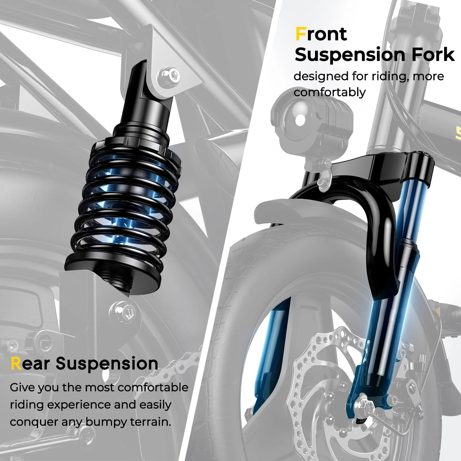 SOHAMO A2 Folding Electric Bike for Adults and Teens, 400W Motor Mini E-Bike 48V 13Ah Removable Battery 20 mph City Commuter Bike, Full Suspension