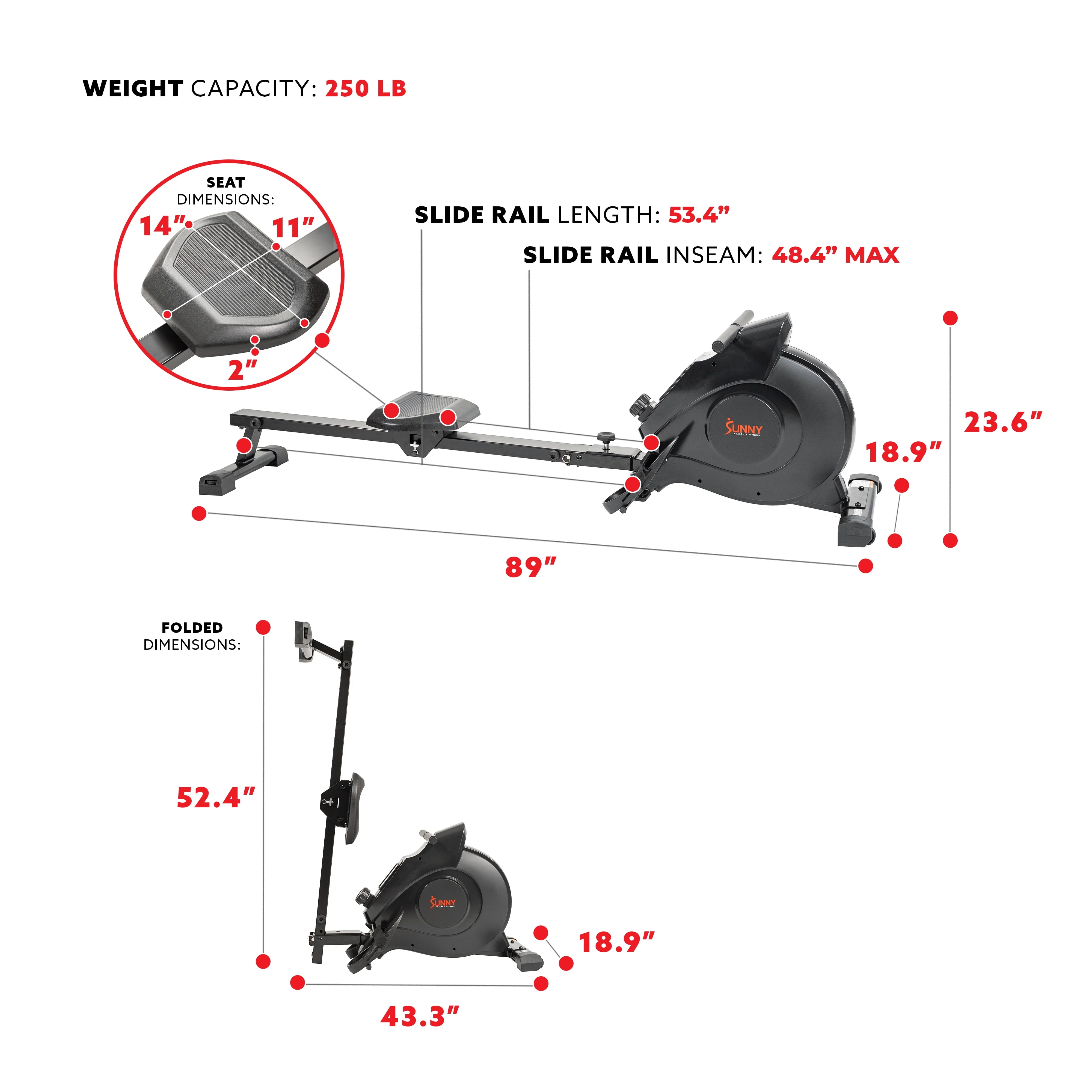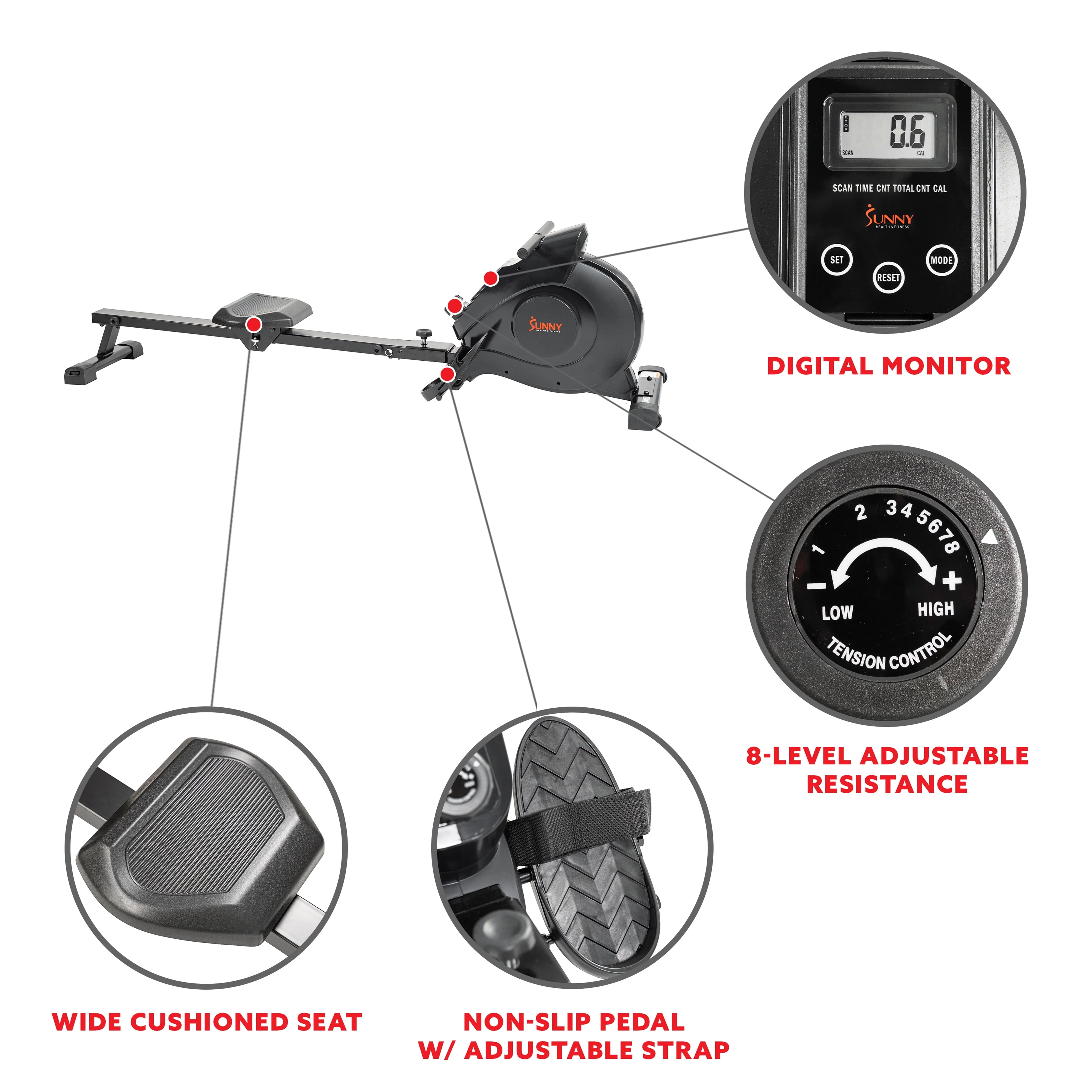 Sunny Health & Fitness SF-RW5515 Magnetic Rowing Machine Rower w/ LCD Monitor