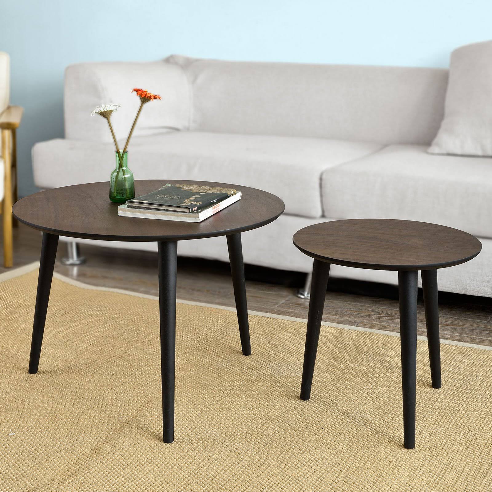 Haotian HHaotian FBT40-BR, Nesting Tables, Set of 2 Round Wooden - Black - Megean