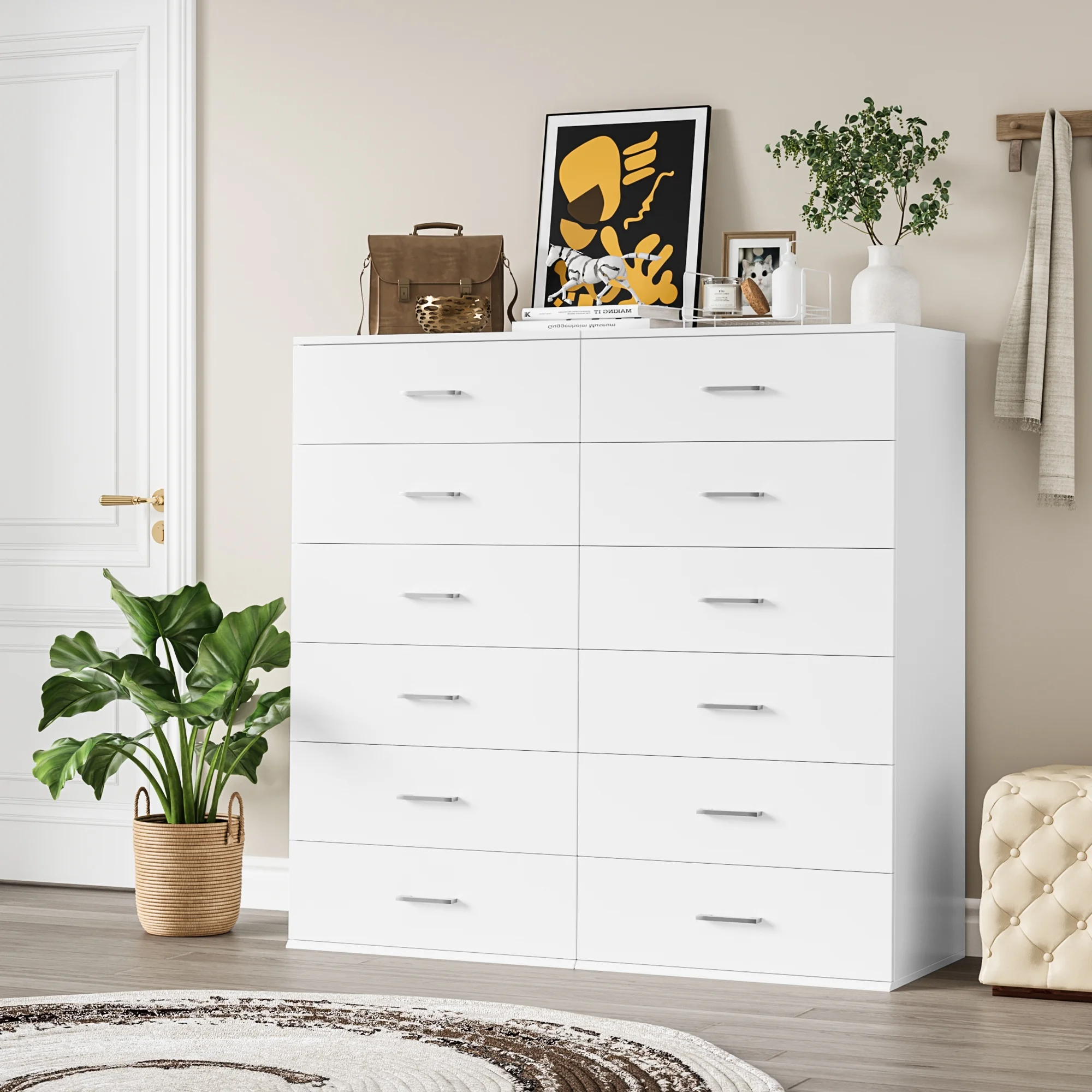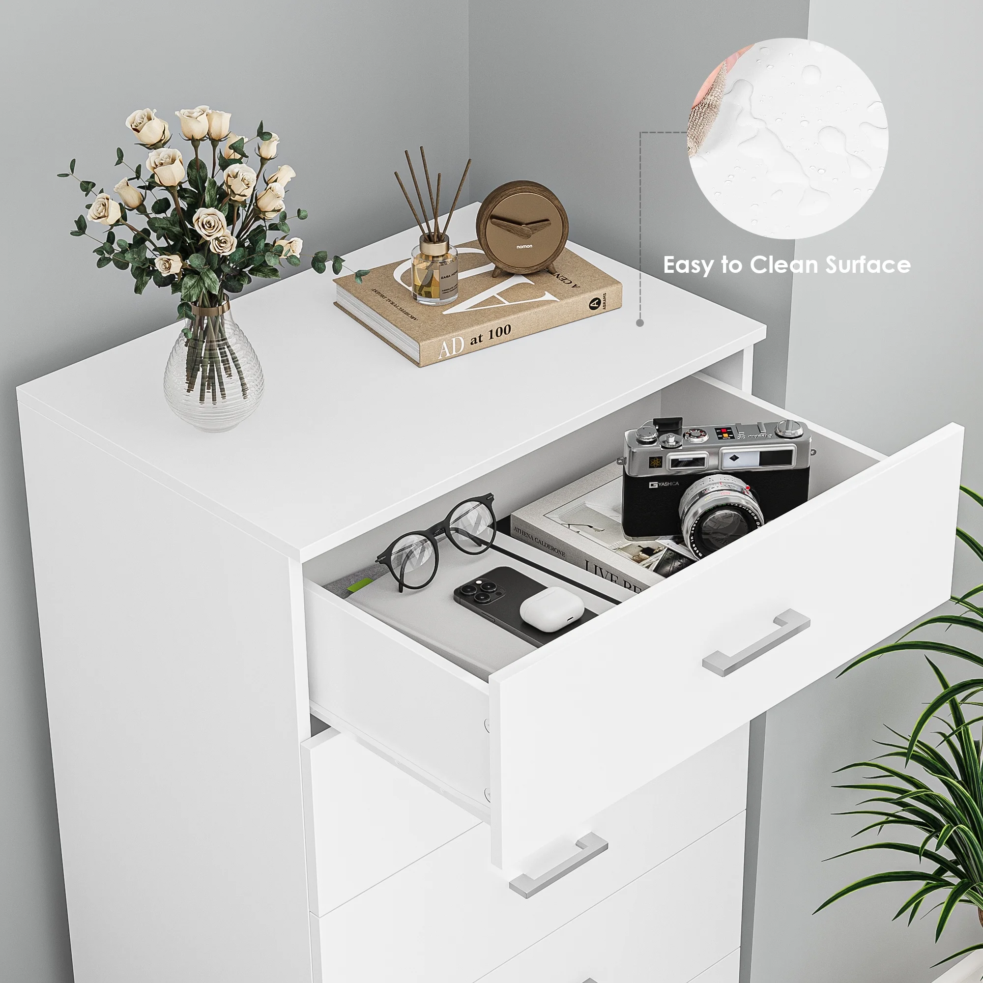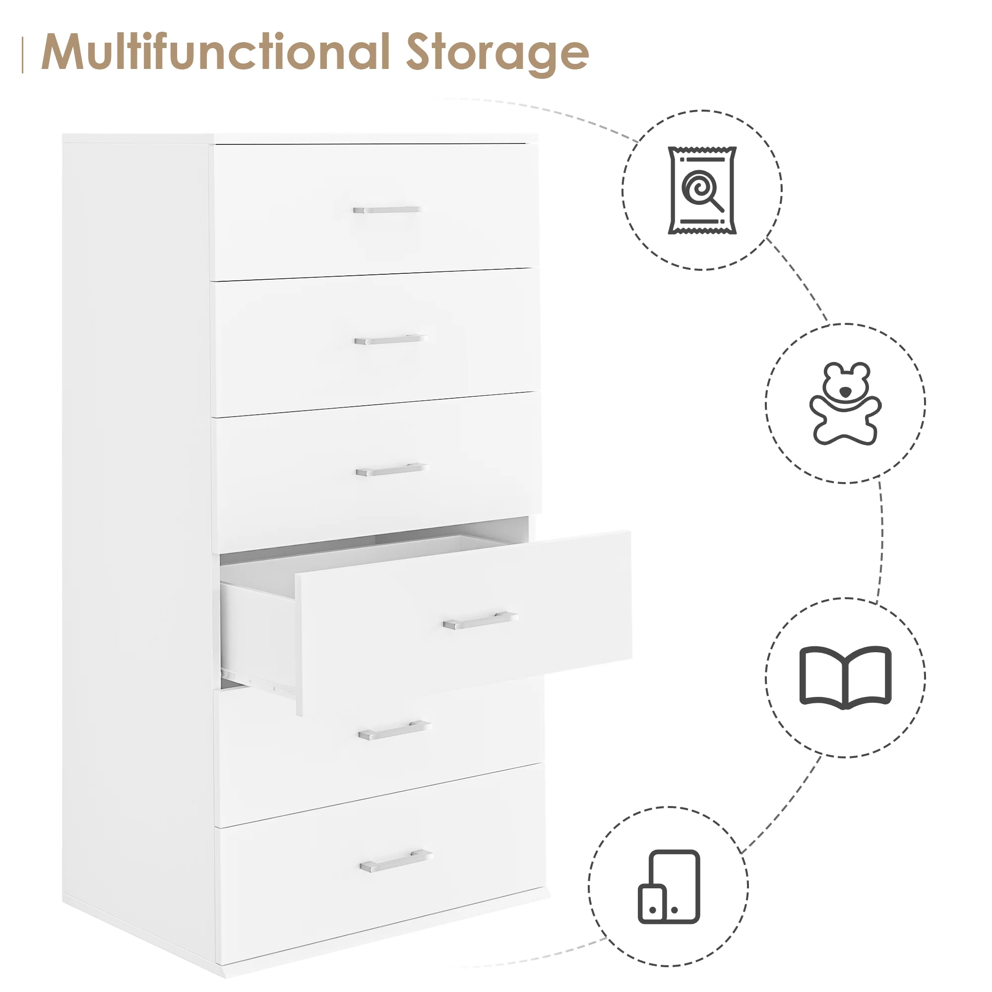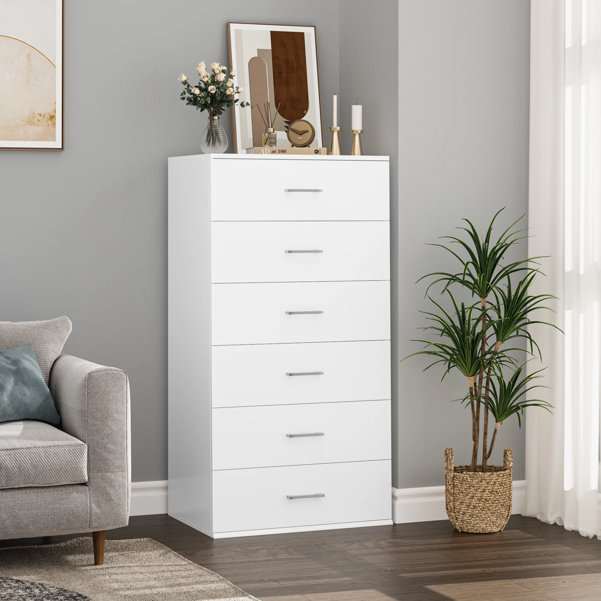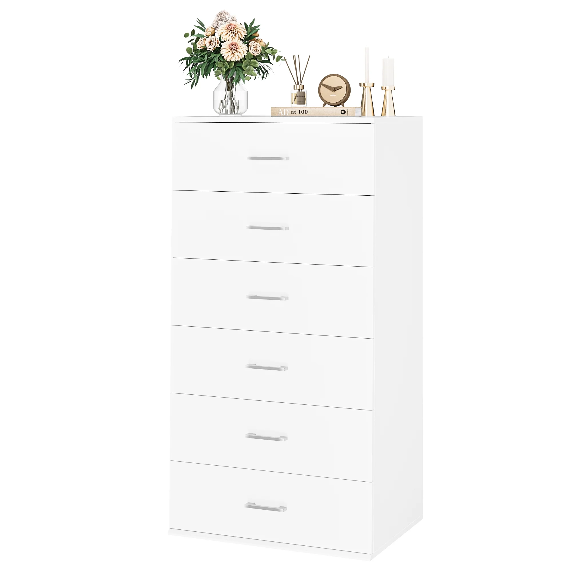 Homfa White Dresser with 6 Drawers, Vertical Chest of Drawers Wood Storage Cabinet for Bedroom Living Room